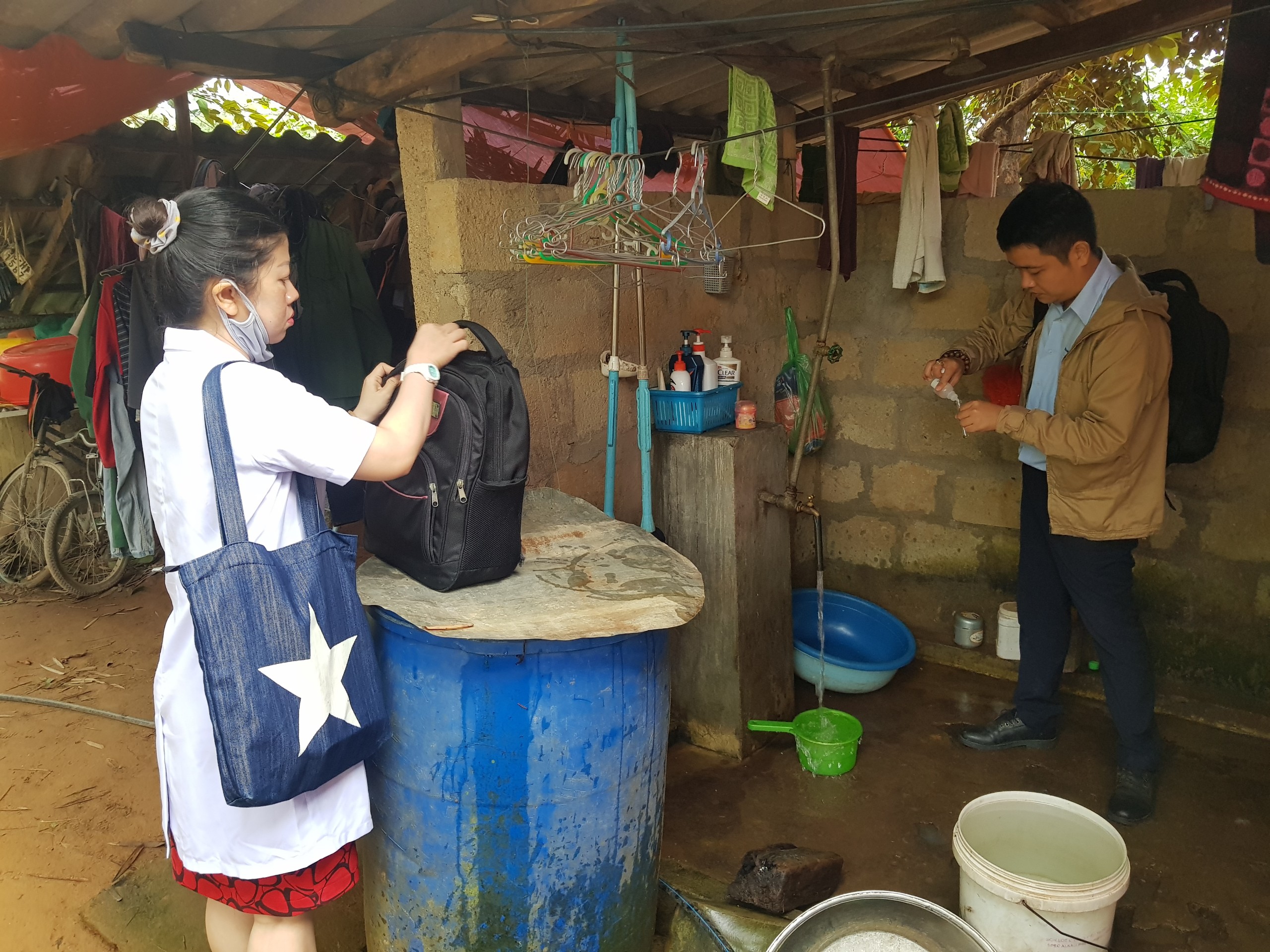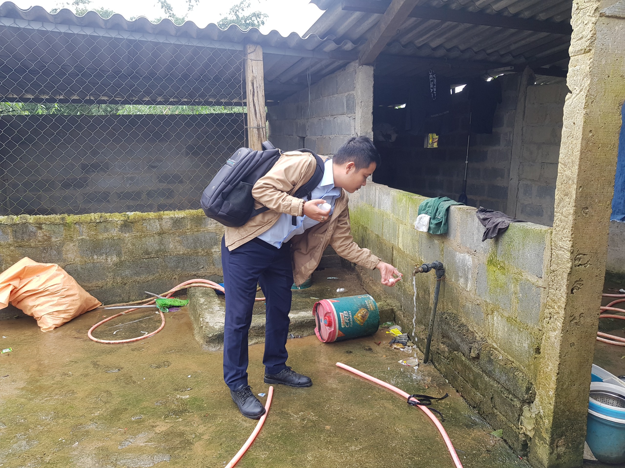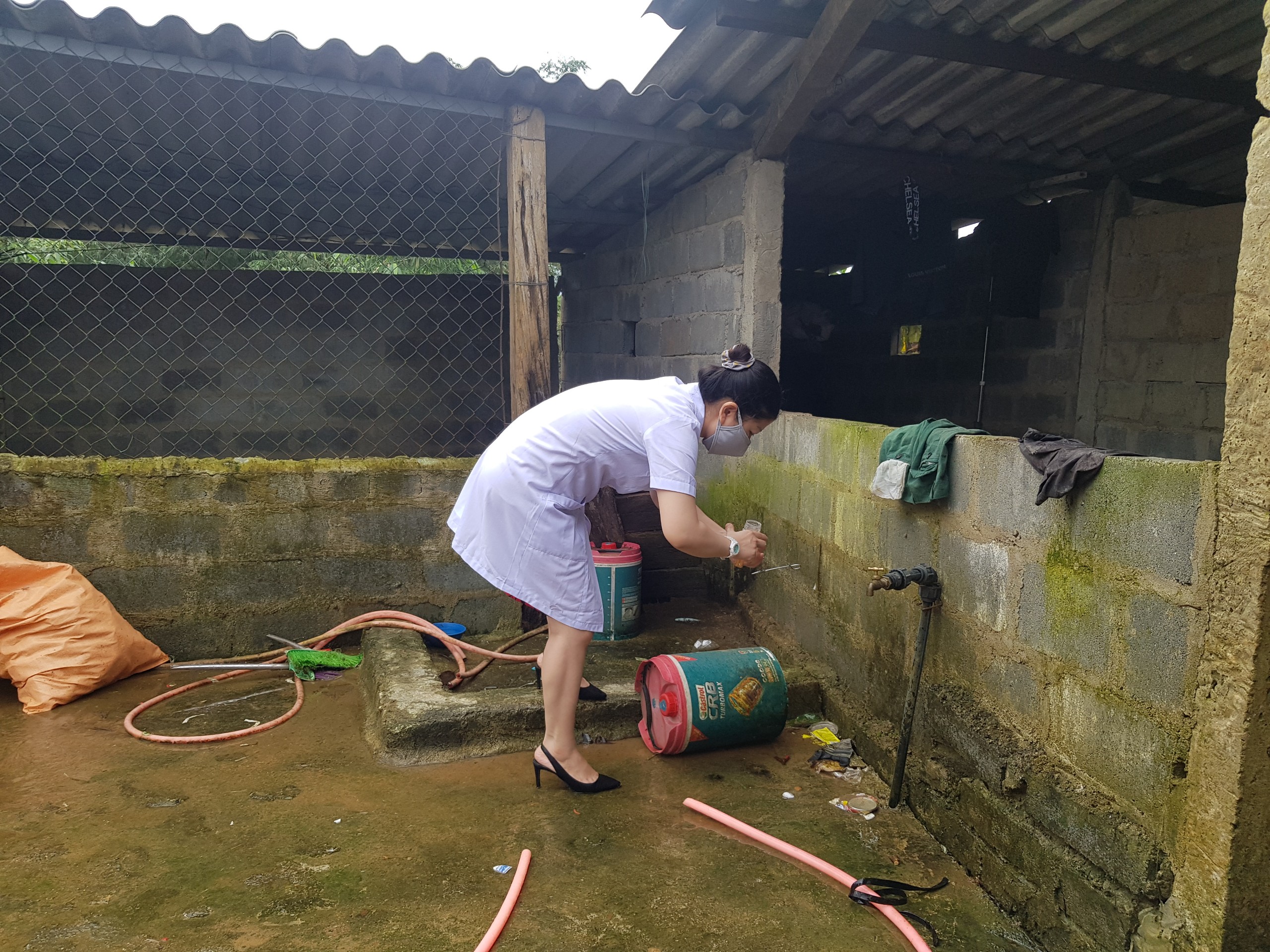 Cán bộ Khoa Xét nghiệm lấy mẫu nước tại hộ ông Nguyễn Xuân Q. xã Hồng Hạ, A Lưới