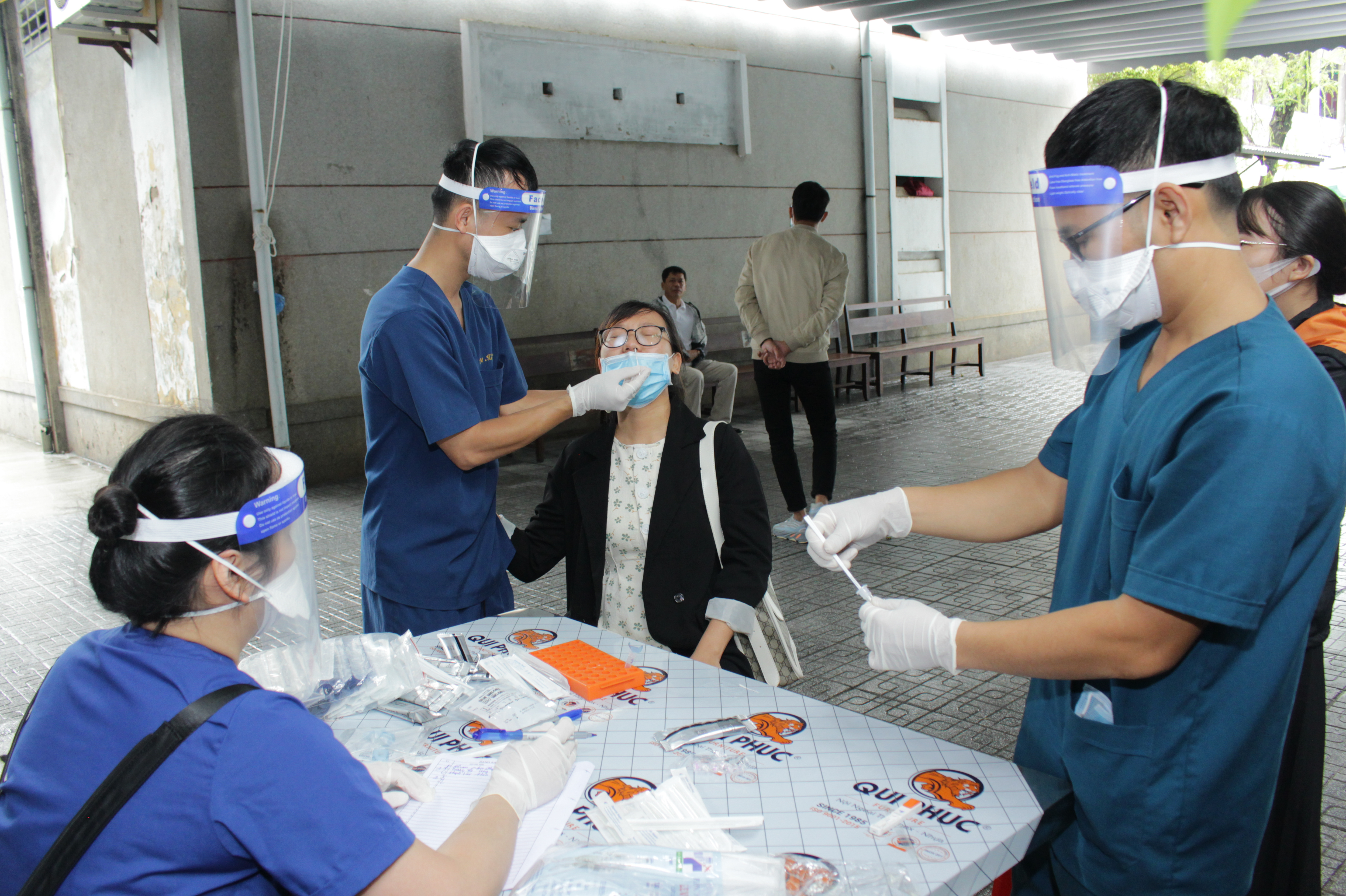 Trung tâm Kiểm soát bệnh tật lấy mẫu xét nghiệm test nhanh kháng nguyên cho cán bộ đơn vị.