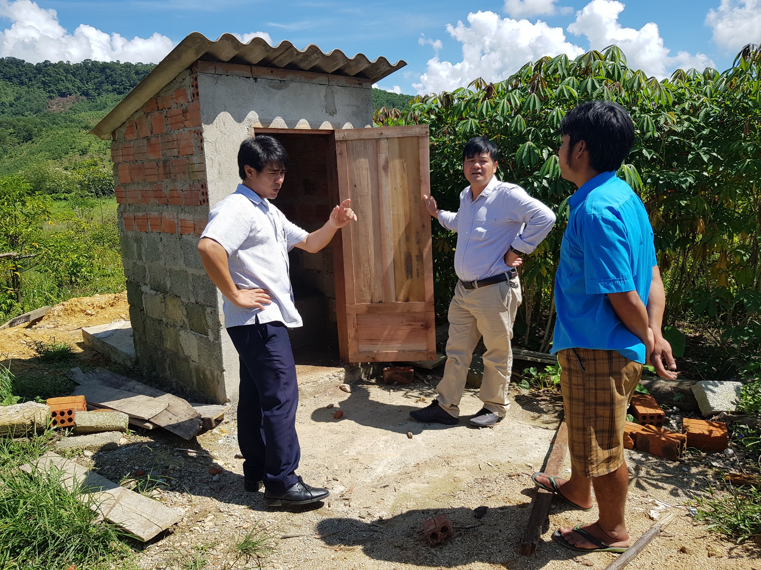 Trung tâm Kiểm soát bệnh tật nghiệm thu nhà tiêu hợp vệ sinh hộ gia đình tại 02 xã Đông Sơn và xã Hồng Bắc, huyện A Lưới