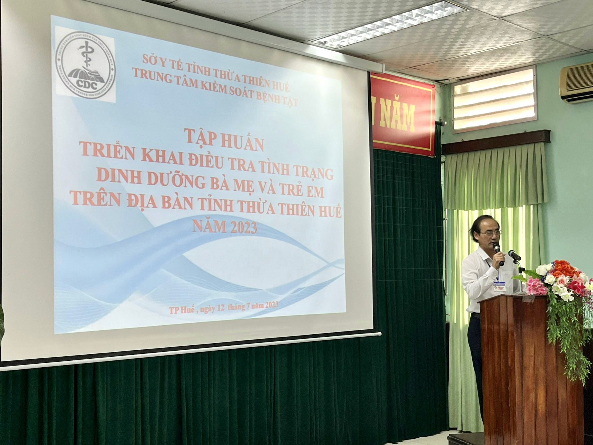 Sáng ngày 12 tháng 7 năm 2023, Trung tâm Kiểm soát bệnh tật tỉnh tiến hành tổ chức tập huấn cho 30 xã được chọn về các nội dung điều tra. Đến tham dự lớp tập huấn có đại diên ban lãnh đạo trung tâm Kiểm soát bệnh tật, các cán bộ thuộc khoa PCBKLN-DD và các cán bộ trực tiếp tham gia điều tra ( tỉnh, huyện, xã). Khai mạc lớp tập huấn, BS.CKII Hoàng Văn Thám đã nhấn mạnh về mục đích và tầm quan trọng của cuộc điều tra. Kết quả của cuộc điều tra này sẽ cung cấp những dữ liệu quan trọng để cập nhật thông tin tình hình dinh dưỡng, góp phần đưa ra những chính sách dinh dưỡng phù hợp trong tình hình mới hiện nay.