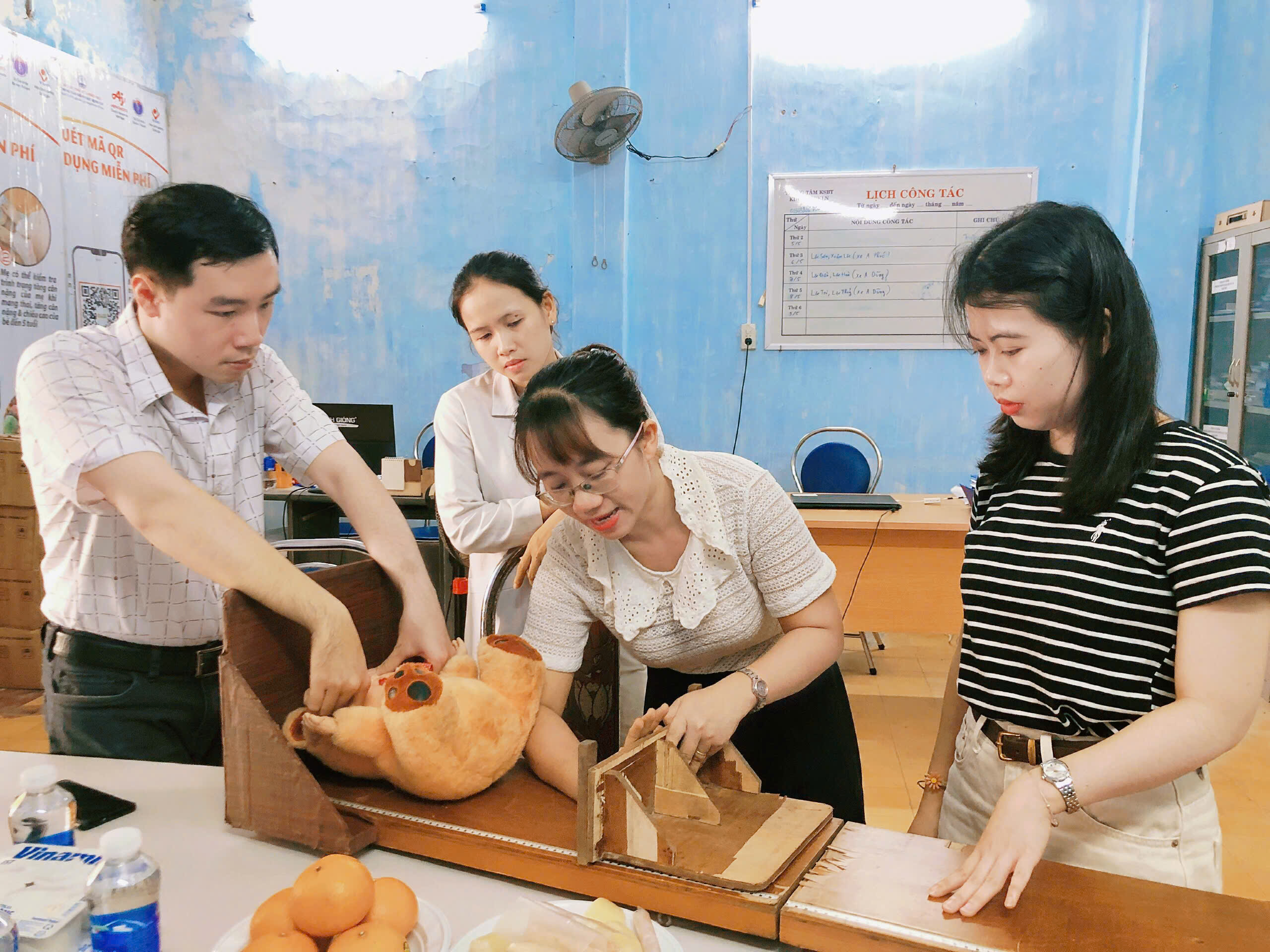 Cán bộ khoa hướng dẫn kỹ thuật đo nằm cho trẻ dưới 24 tháng tuổi