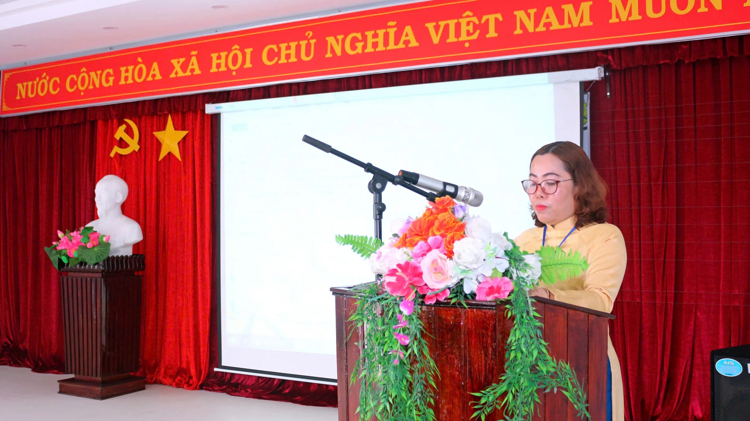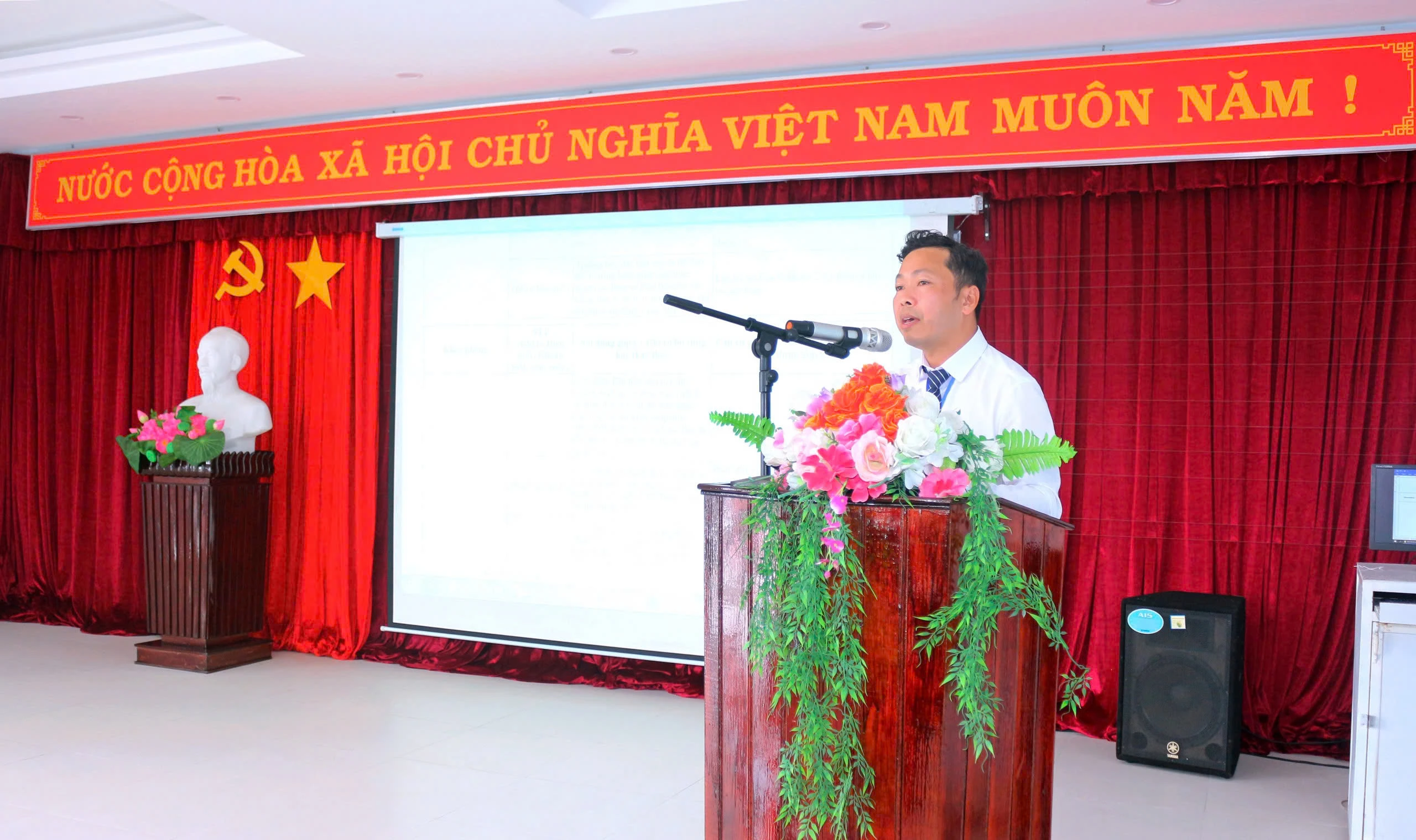 Đại diện các khoa, phòng chuyên môn trình bày báo cáo tại hội nghị.