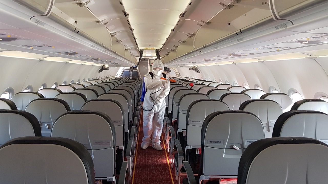Hình ảnh Phun khử trùng máy bay