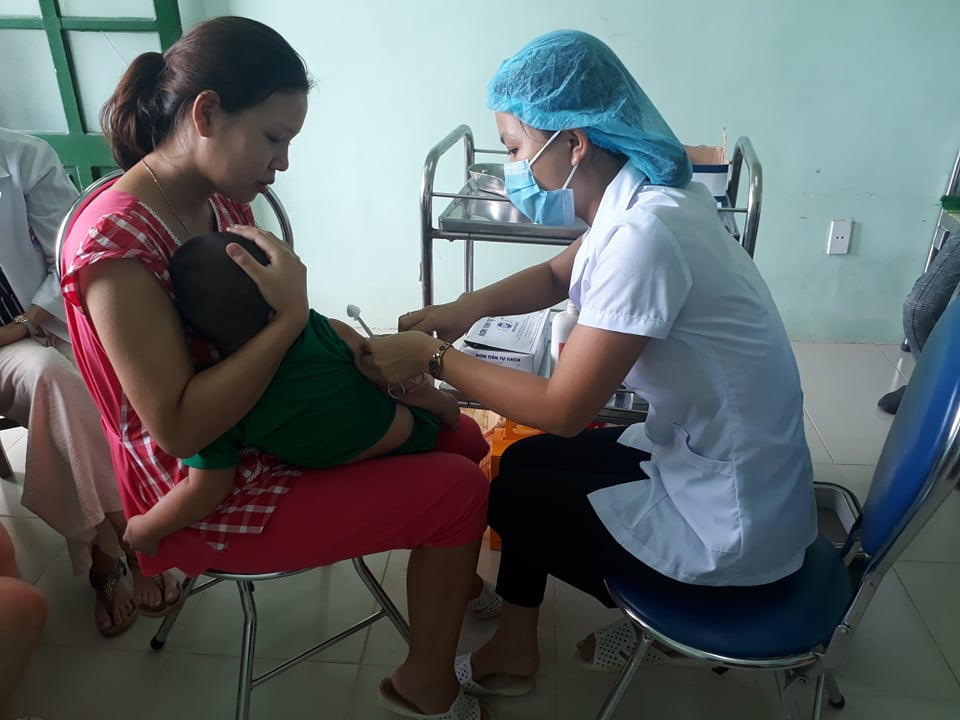 Tiêm chủng cho trẻ tại TYT xã Bình Thành
