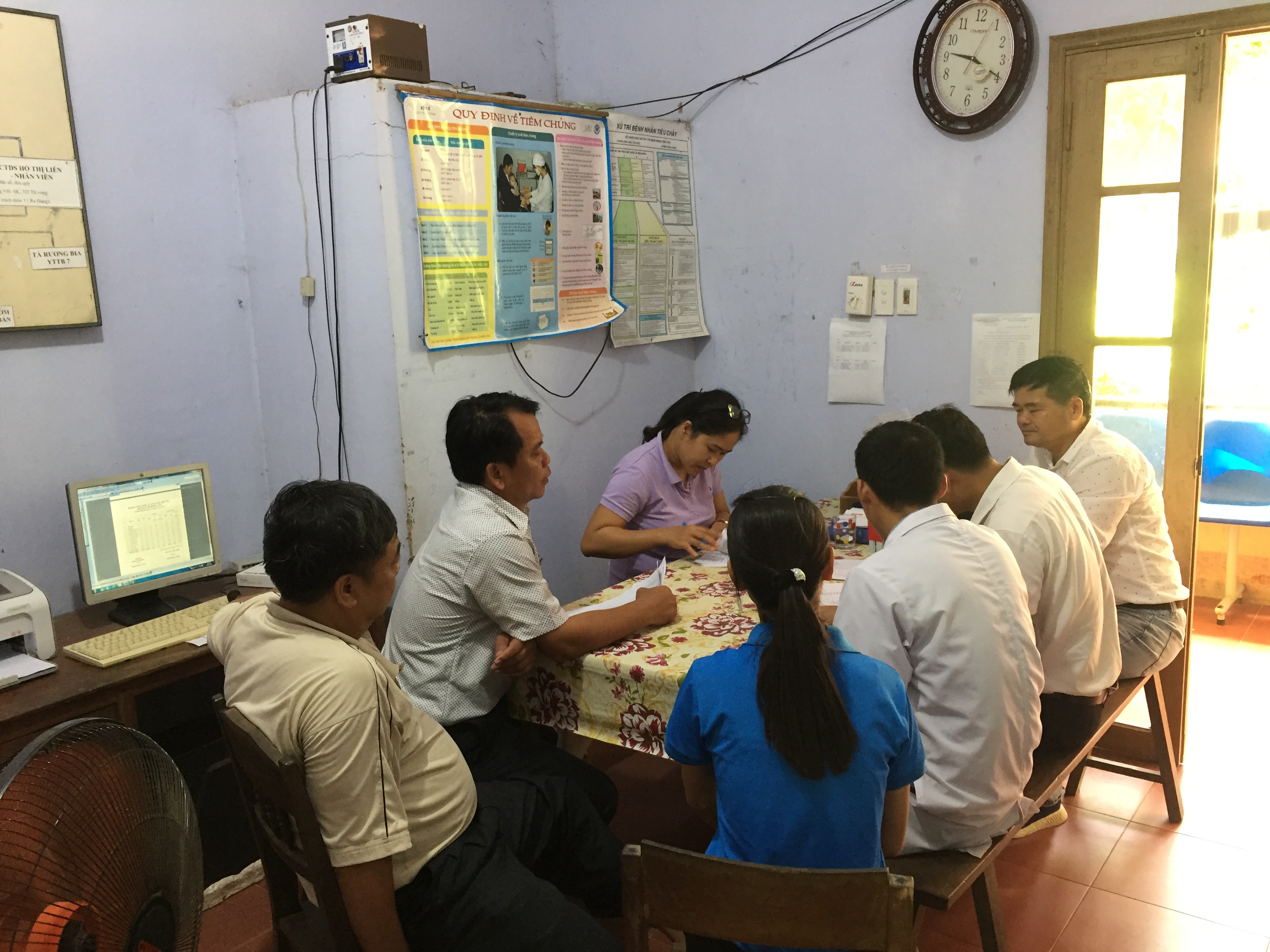 Khoa SKMT-YTTH - Trung tâm KSBT tỉnh làm việc cùng UBND xã và trạm y tế xã Hương Hữu