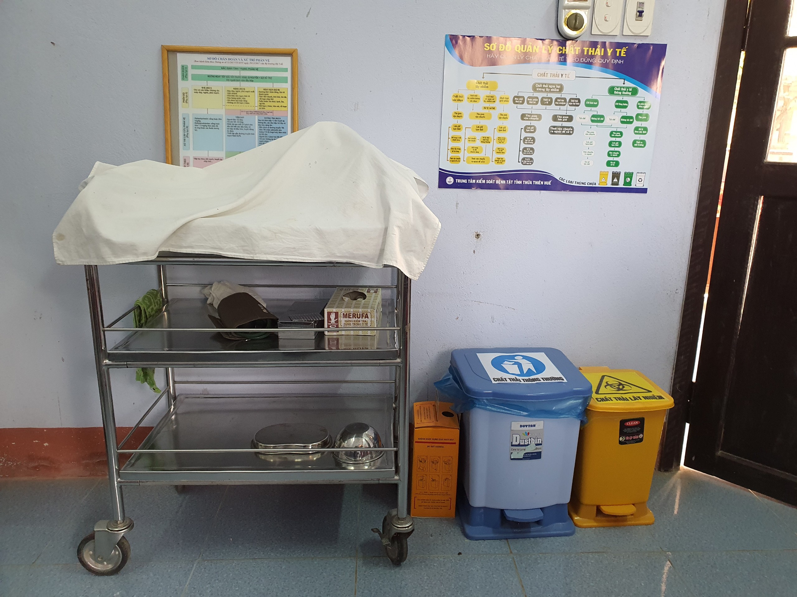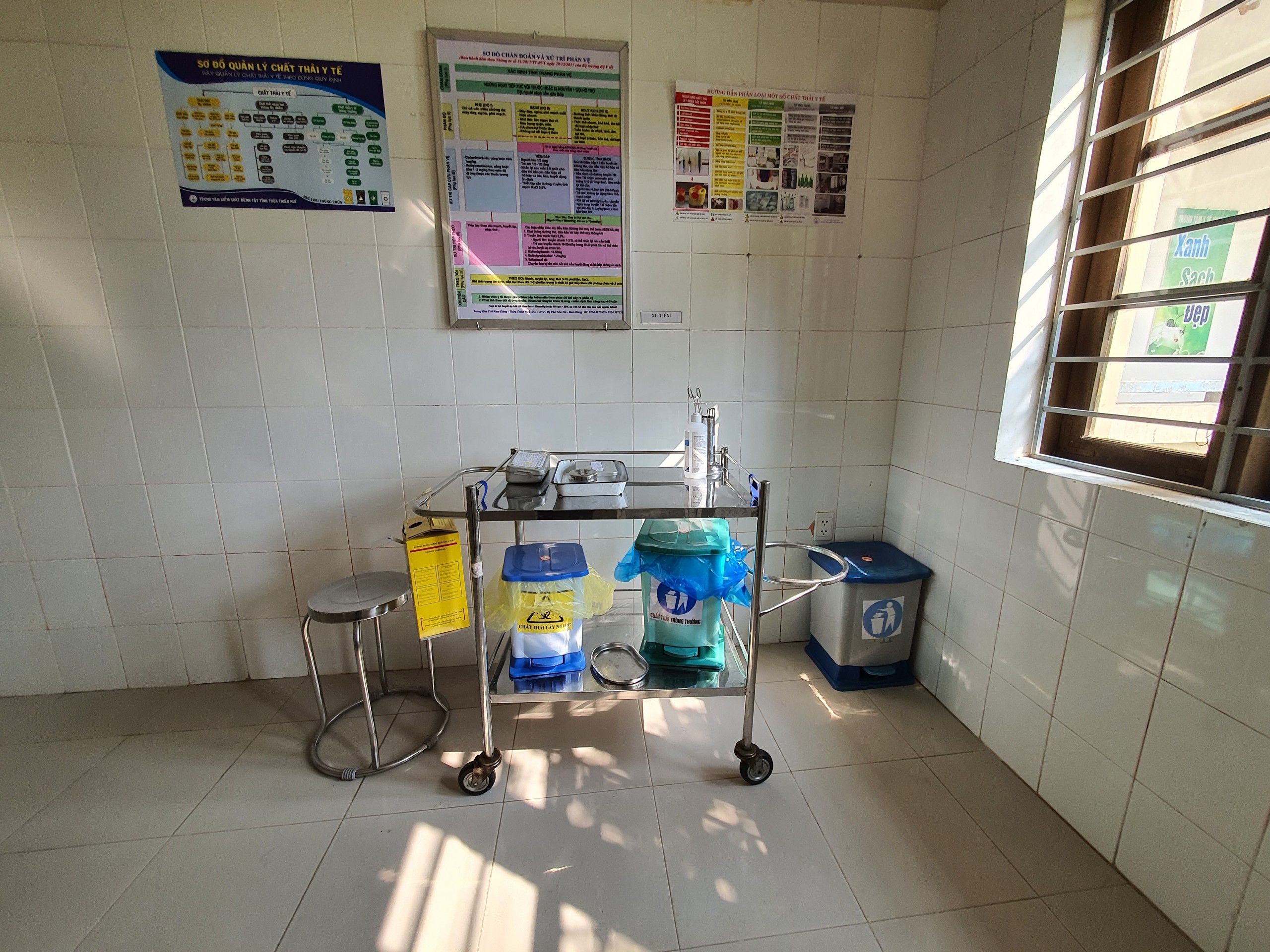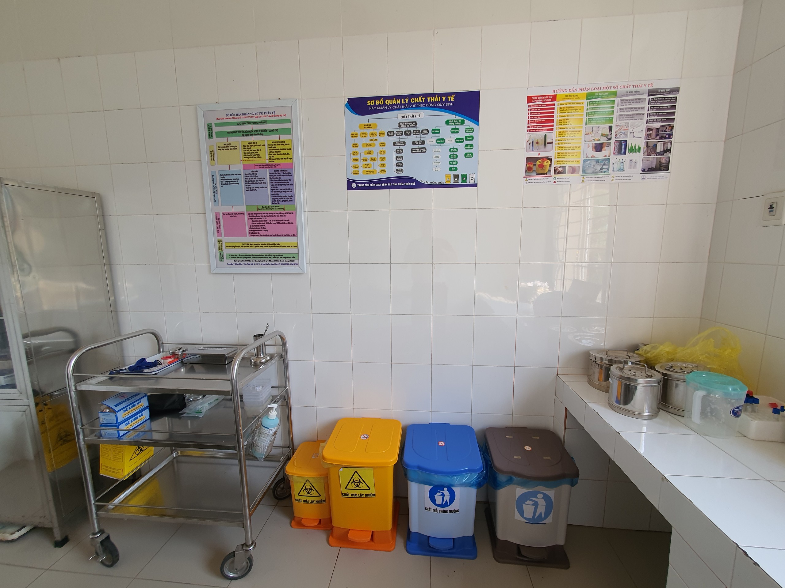 Khu vực lưu giữ chất thải y tế tại Phòng cấp cứu, TTYT Nam Đông