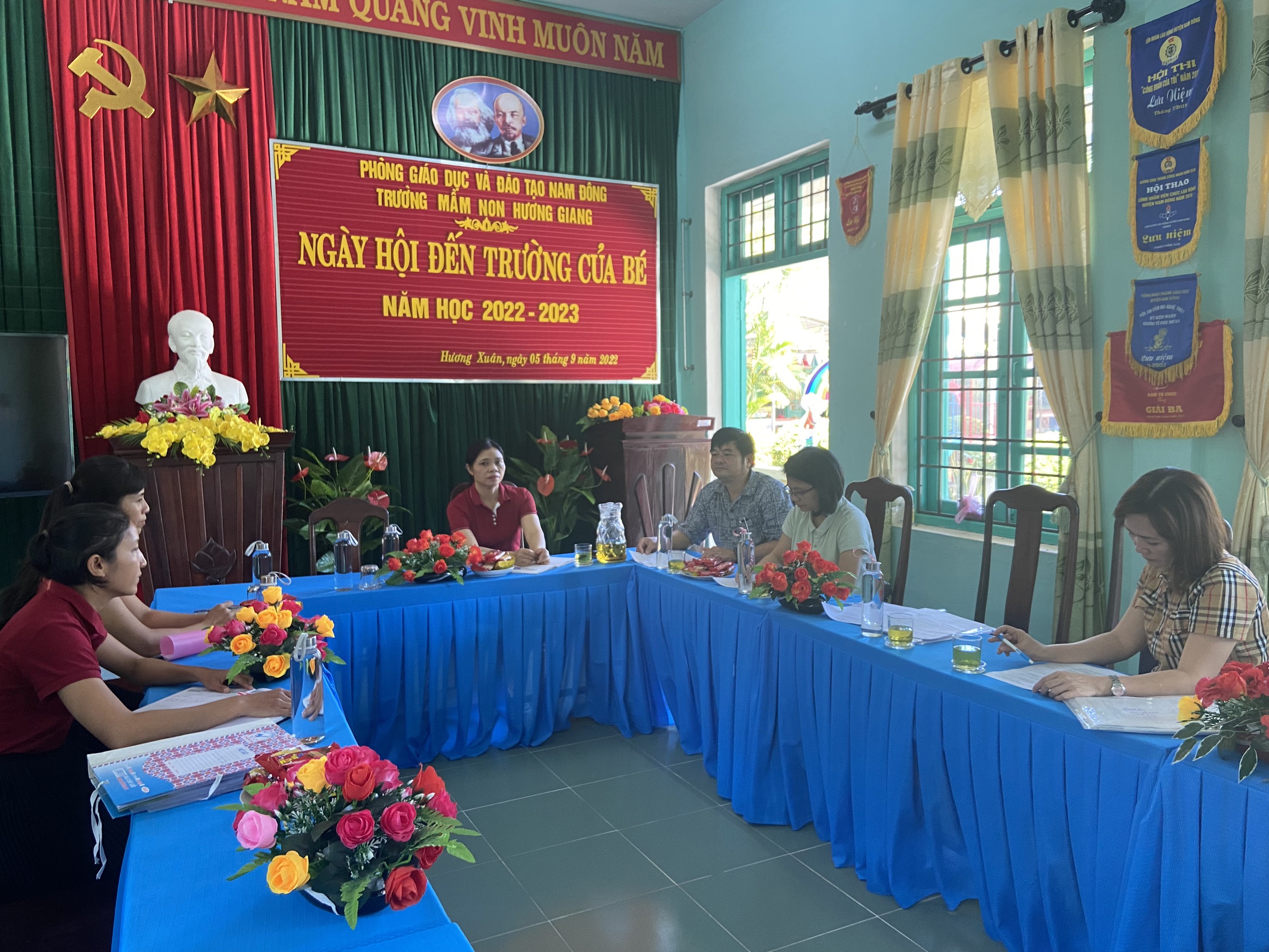 Đoàn làm việc tại trường Mầm non Hương Giang