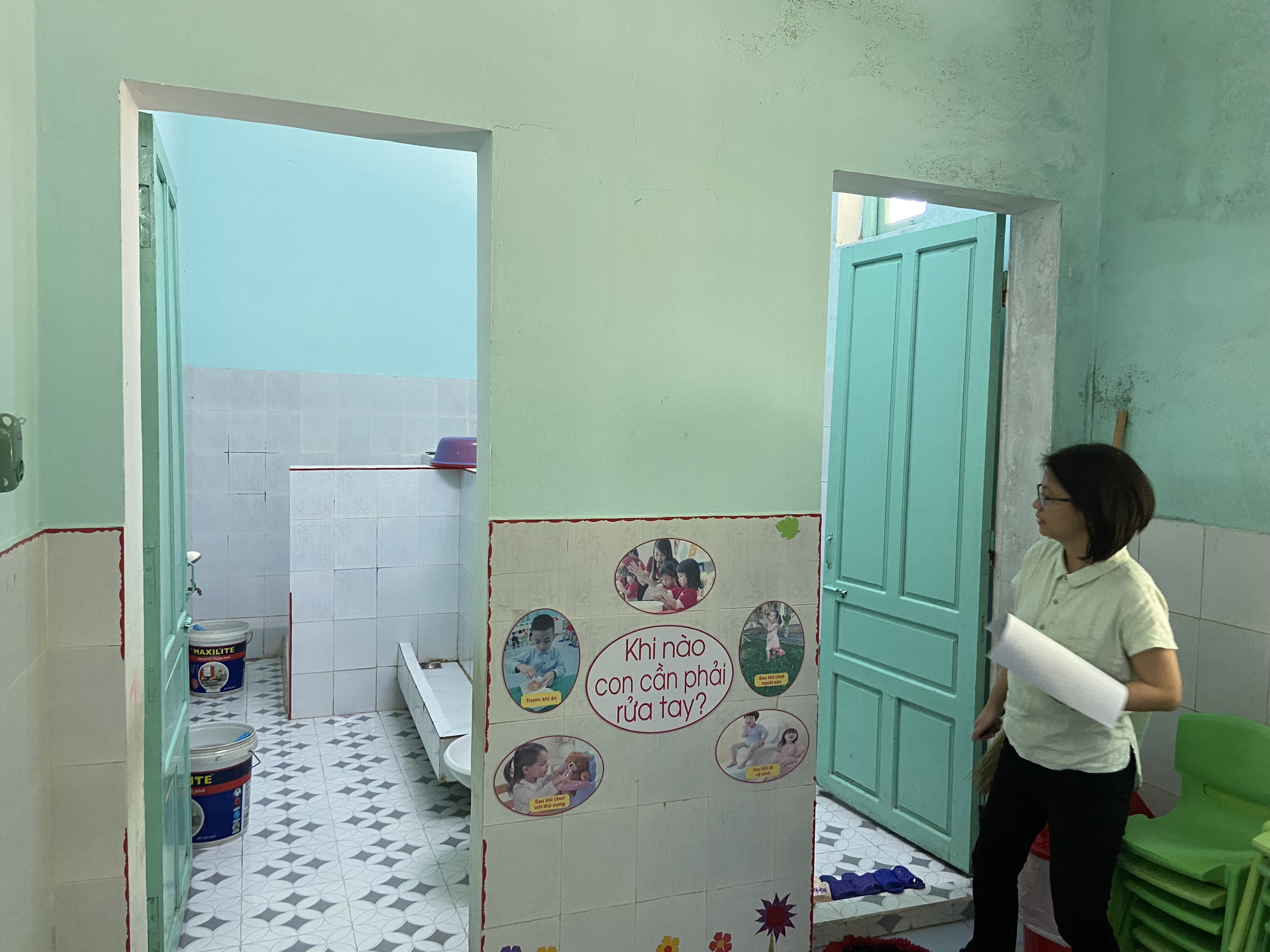 Trung tâm kiểm soát bệnh tật tỉnh kiểm tra công tác y tế trường học tại trường Mầm non Hương Giang huyện Nam Đông.