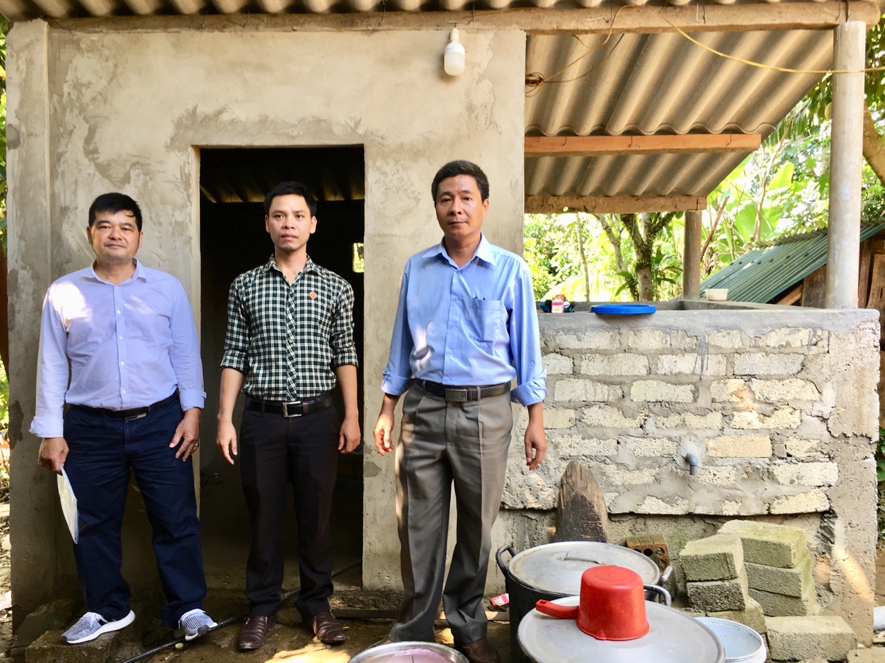 Giám sát xây dựng nhà tiêu tại hộ gia đình ông Lê Văn Ta Luy - thôn Lê Lộc 2 xã Hồng Bắc