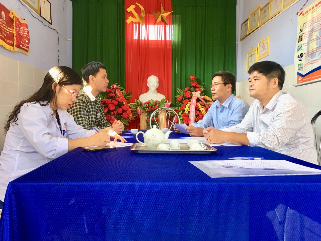 BS. CKI. Hoàng Văn Đức - Giám đốc TTKSBT làm việc với UBND và Trạm y tế xã Hương Lâm