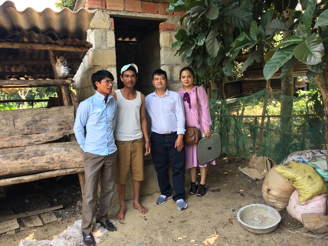 Giám sát xây dựng nhà tiêu tại hộ gia đình bà Lê Thị Bay - thôn Liên Hiệp xã Hương Lâm