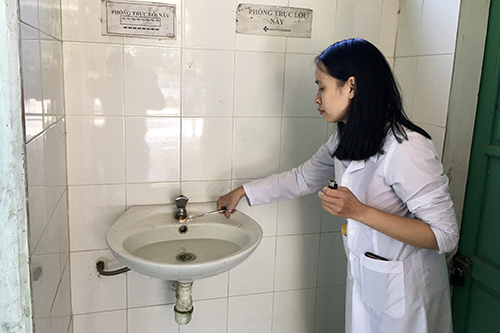 Cán bộ Trung tâm KSBT và TTYT huyện A Lưới lấy mẫu nước tại TYT xã Hồng Trung, huyện A Lưới.