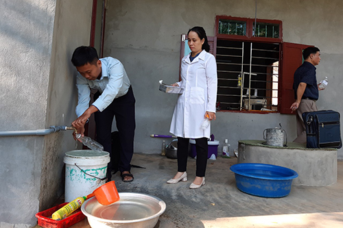 Qua kiểm tra Đoàn đã lấy 2 mẫu nước, các mẫu nước hiện đang được phân tích tại Labo xét nghiệm của Trung tâm Kiểm soát bệnh tật tỉnh.