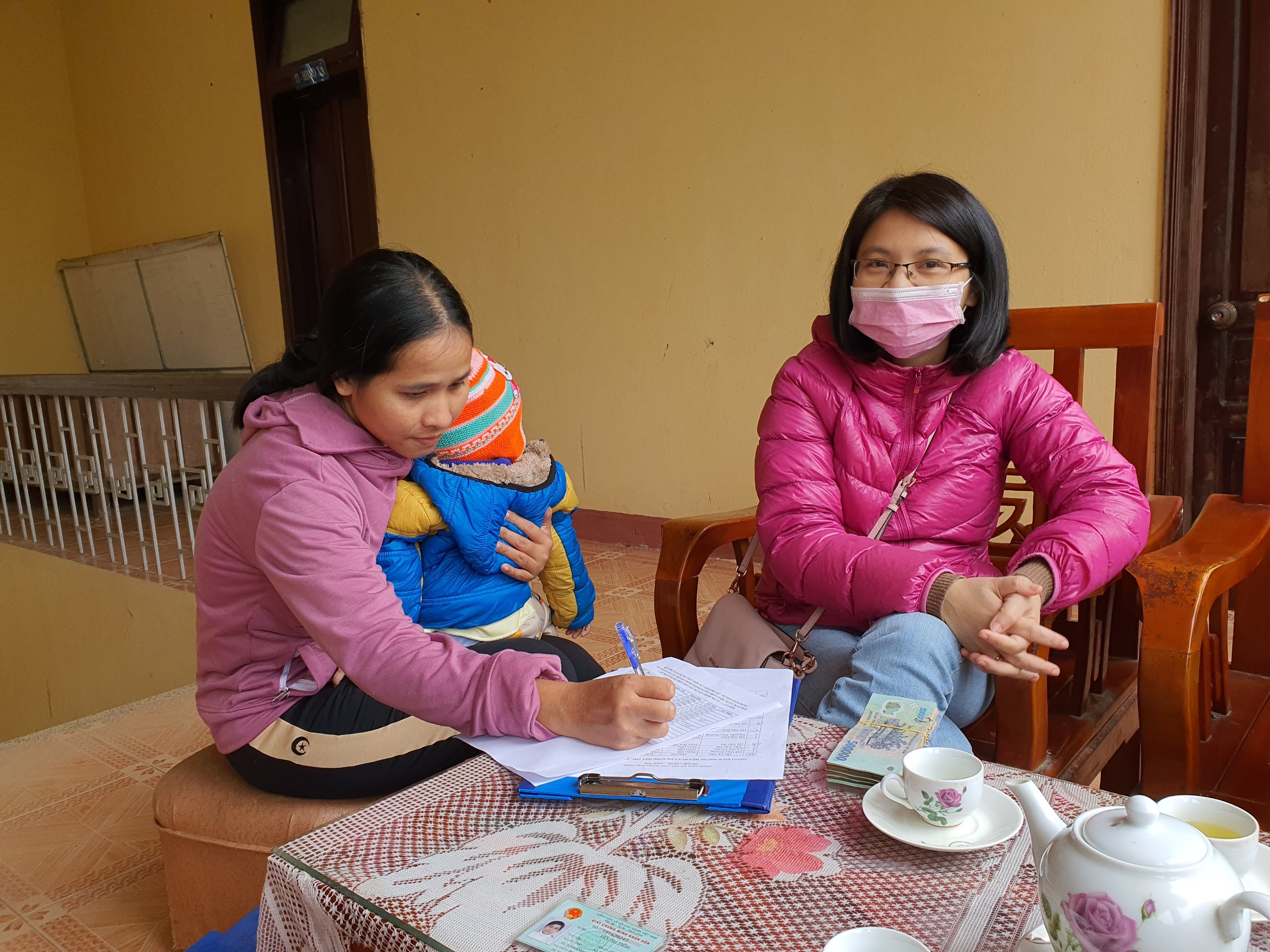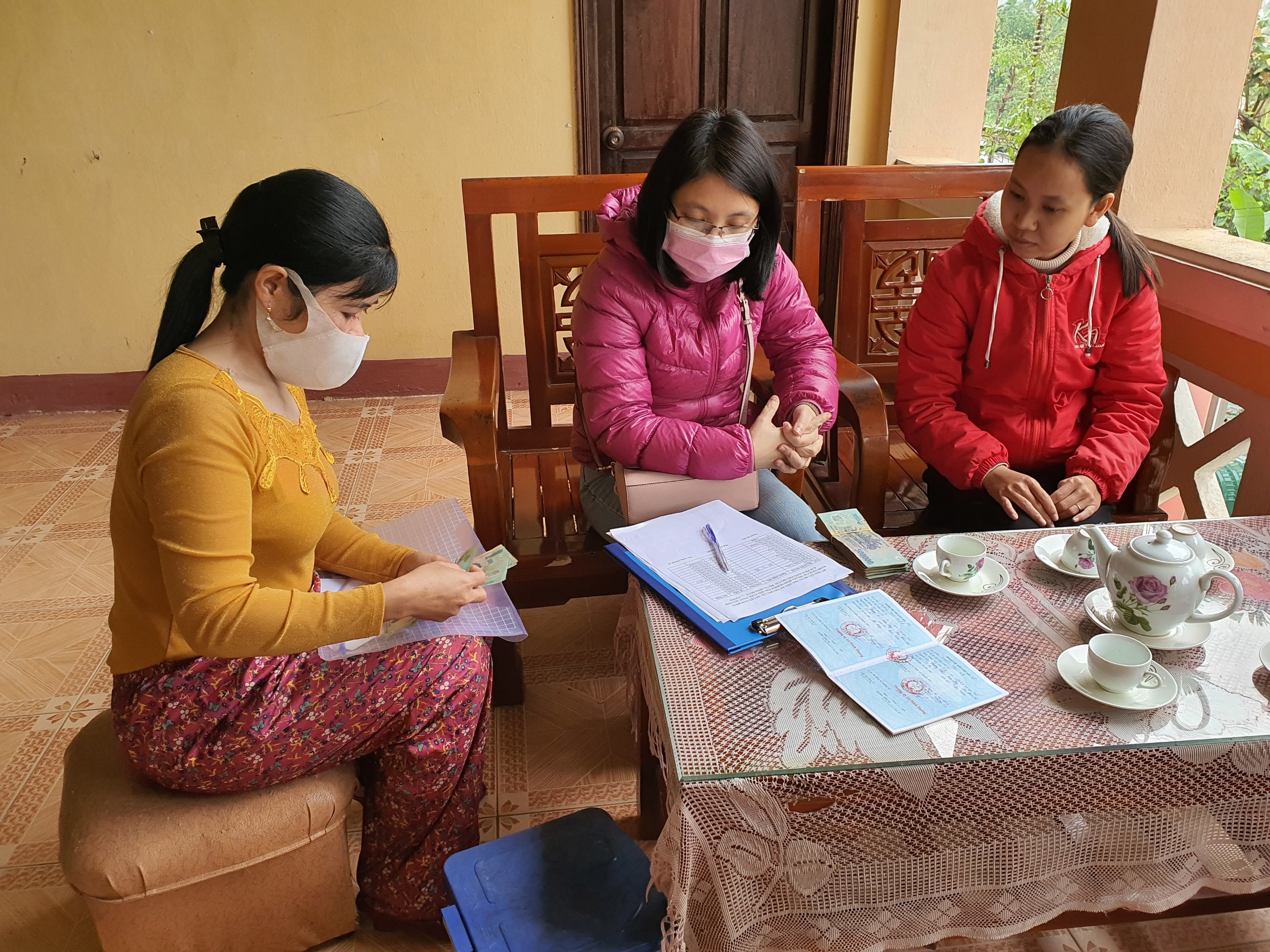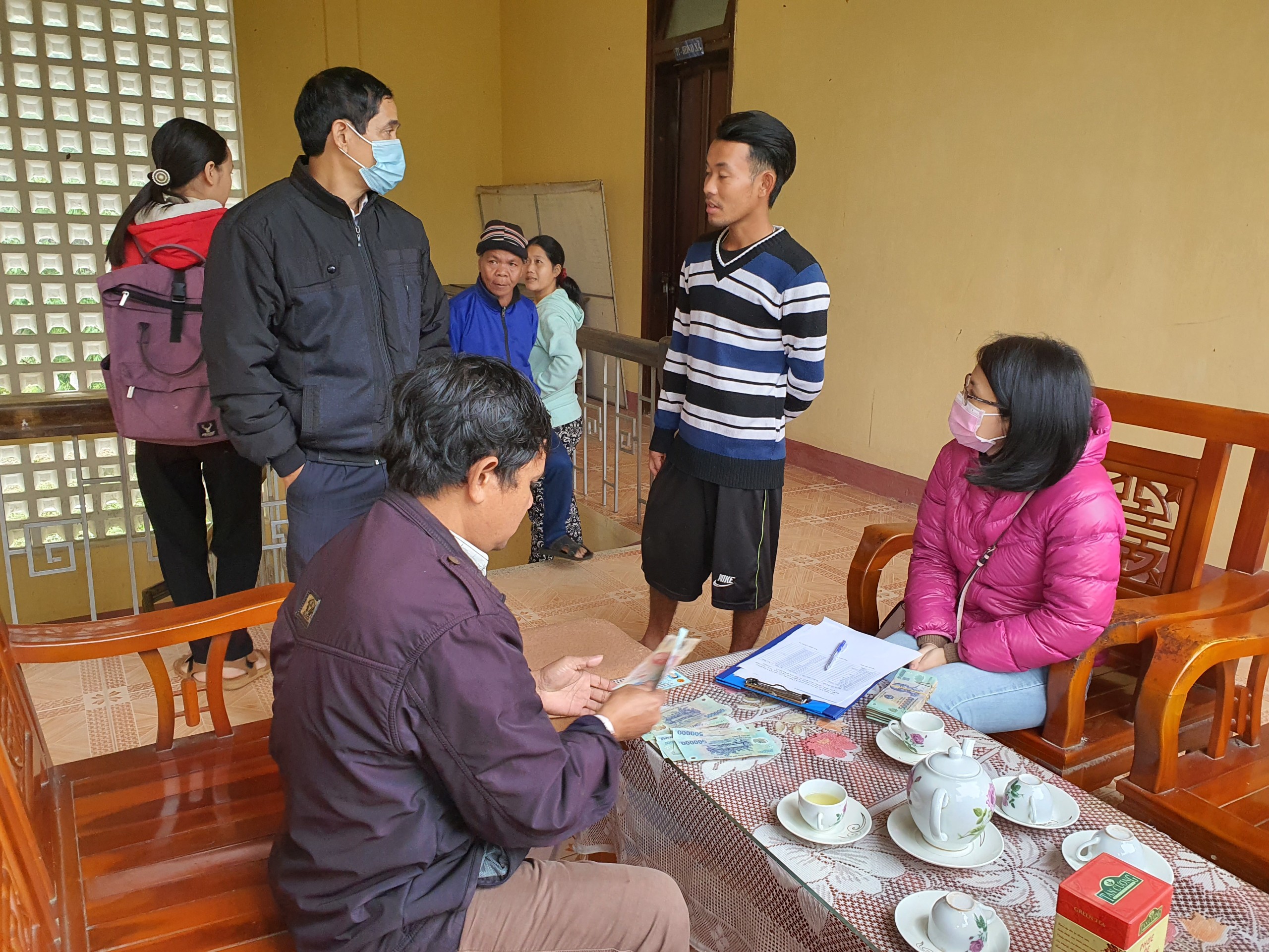 Đoàn chi trả kinh phí cho các hộ gia đinh tại xã Hương Hữu