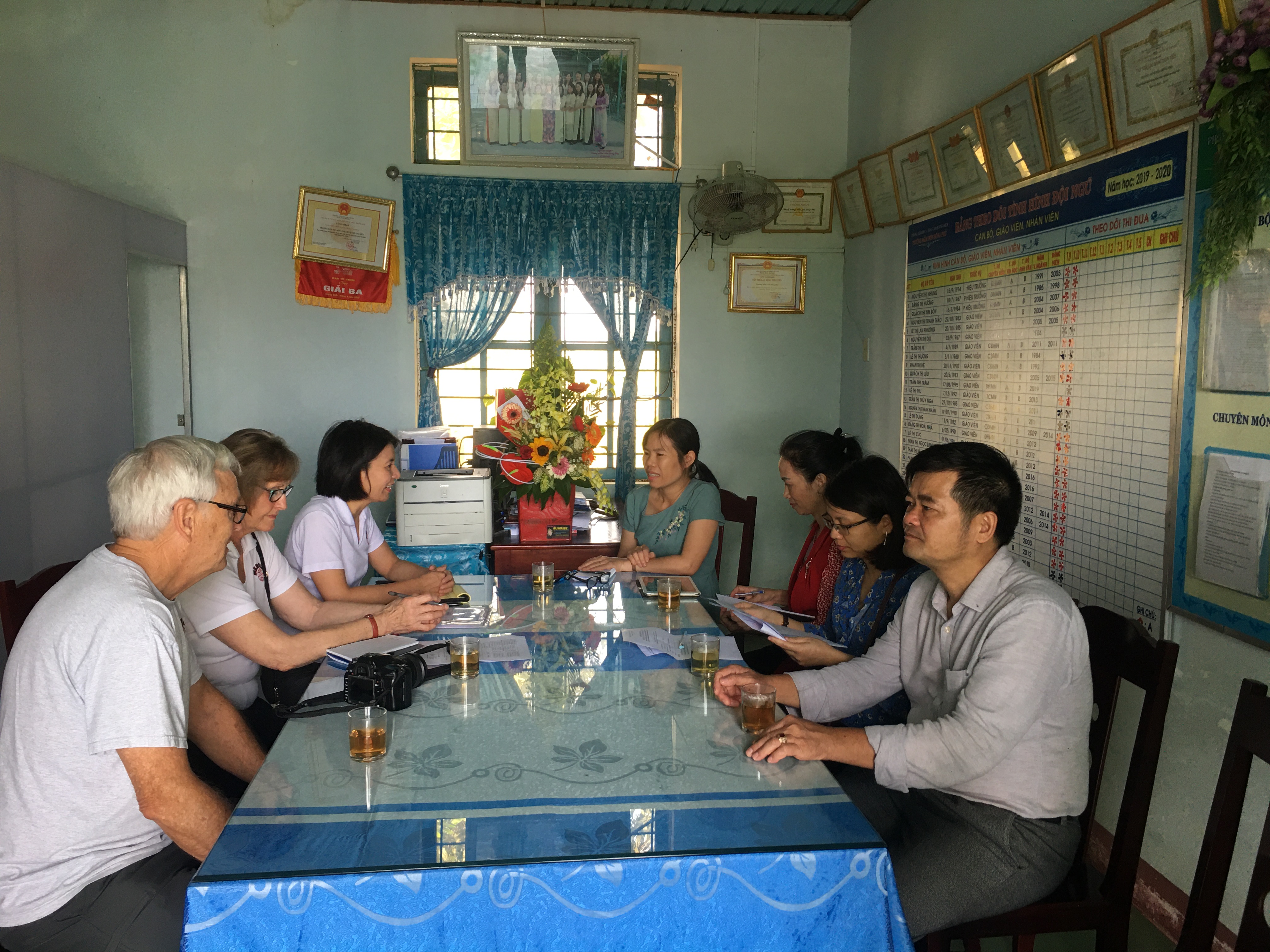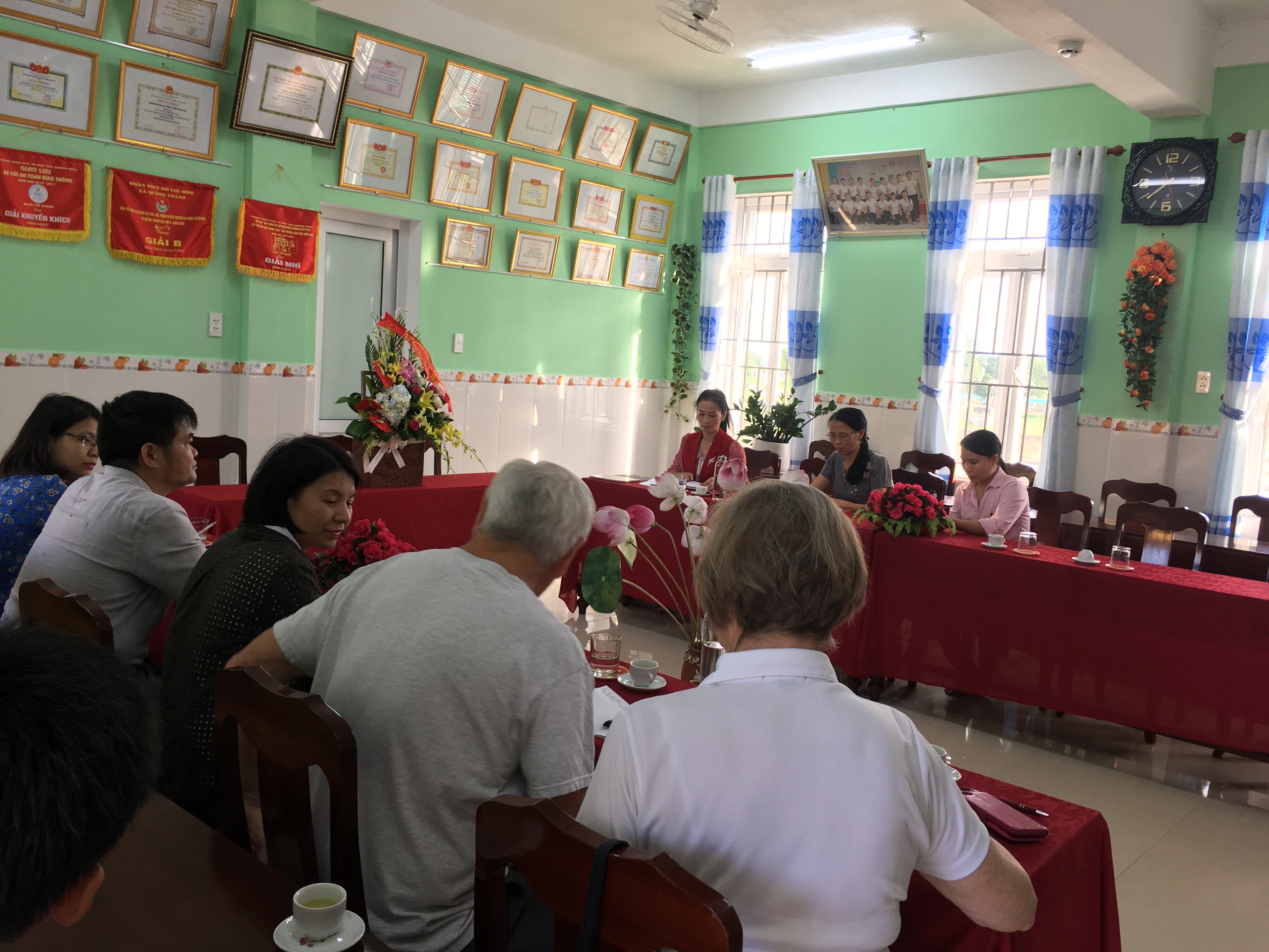 Tại buổi làm việc đoàn đã tìm hiểu tình hình cung cấp nước sạch, vệ sinh môi trường, dịch bệnh và các trường hợp tai nạn thương tích gặp phải trong nhà trường cũng như các nhu cầu thực tế của cơ sở; Đánh giá kết quả cải thiện cung cấp nước sạch, vệ sinh môi trường, hướng dẫn sử dụng và bảo quản máy lọc nước tinh khiết LifeStraw.
