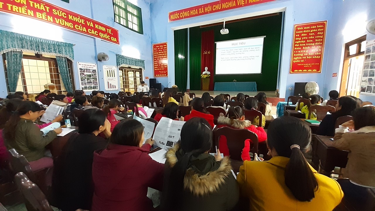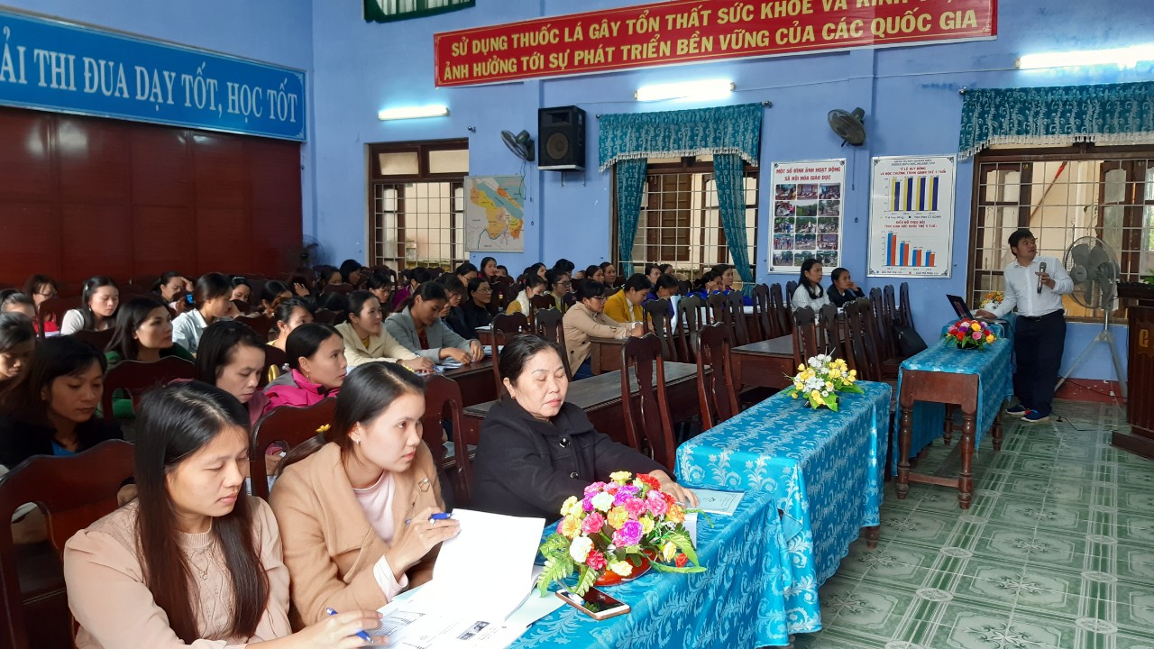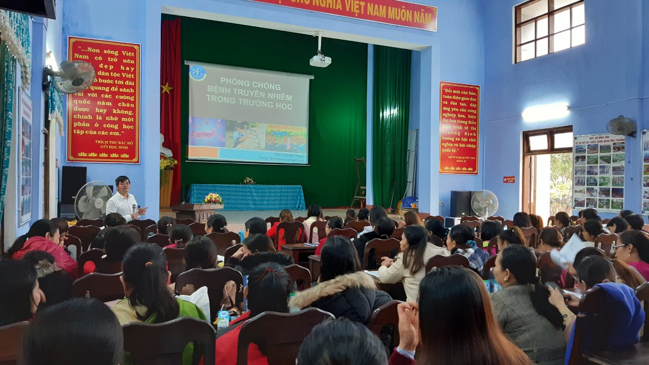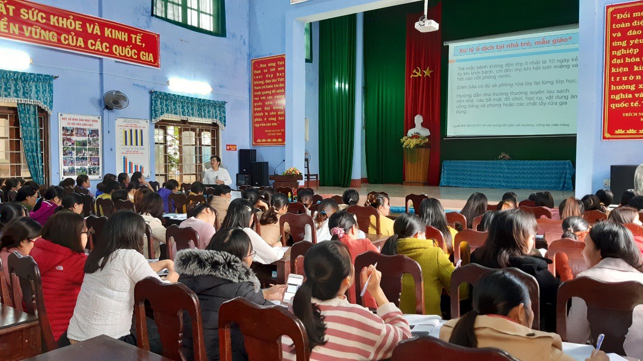 Ngày 14/12/2019, tại Phòng Giáo dục và Đào tạo huyện Quảng Điền, Trung tâm Kiểm soát bệnh tật Tỉnh tổ chức các lớp tập huấn cho cán bộ y tế trường học, Ban giám hiệu và toàn bộ giáo viên của 06 trường Mầm non trên địa bàn huyện tham gia dự án.