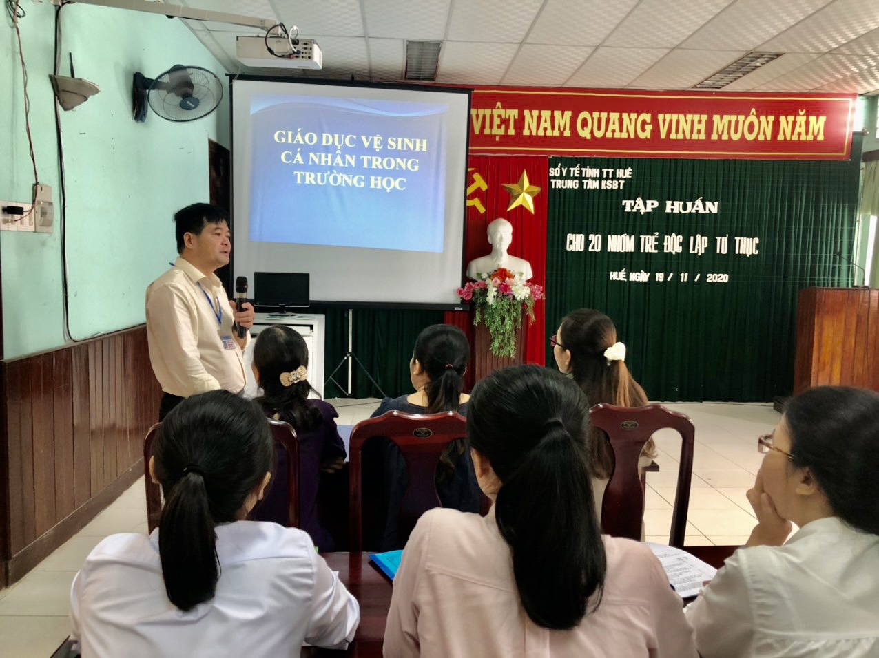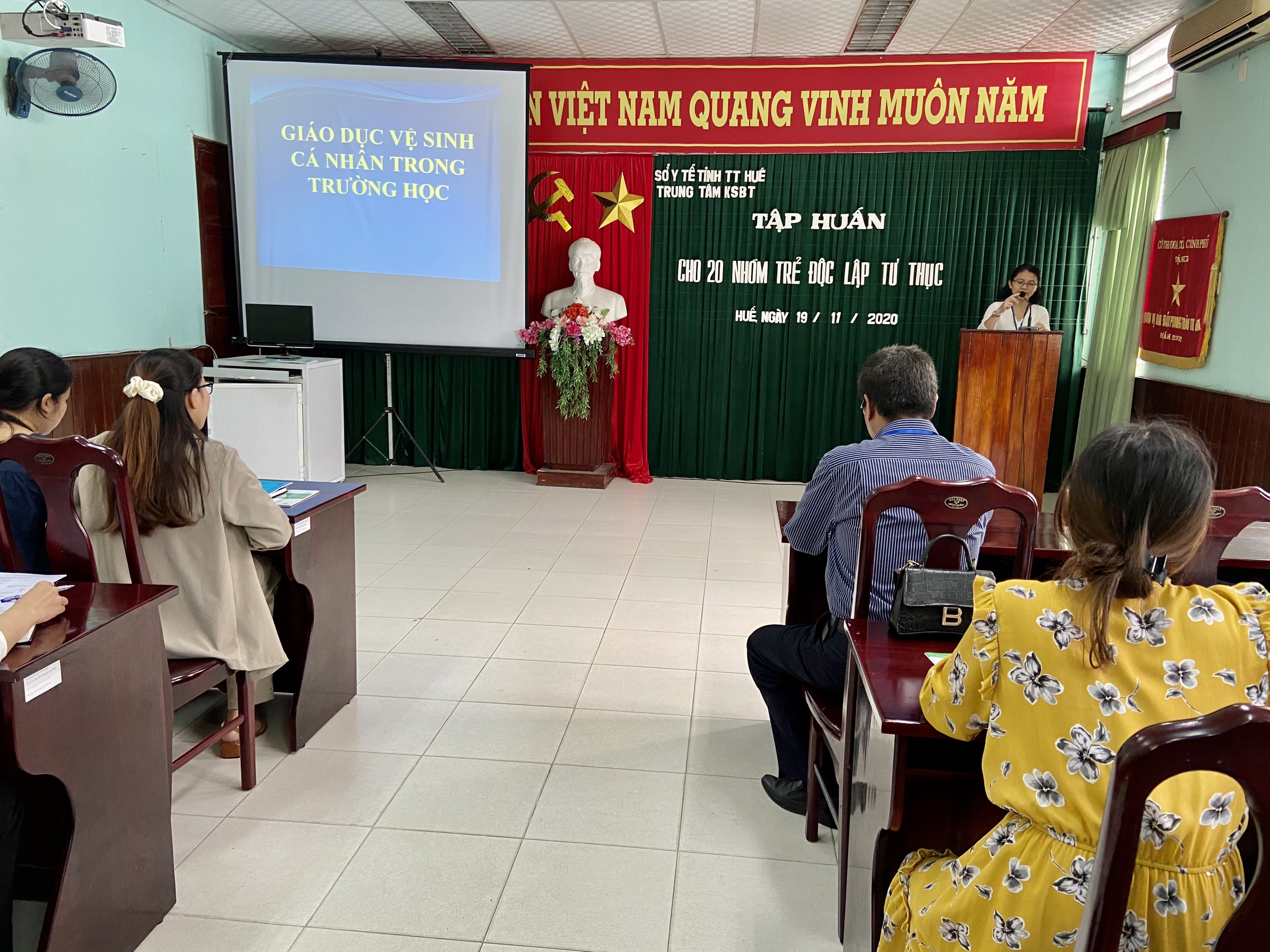 Ngày 19/11/2020, tại Hội trường Trung tâm Kiểm soát bệnh tật tỉnh đã tổ chức tập huấn công tác y tế trường học, phòng chống dịch bệnh cho 20 chủ cơ sở/giáo viên tại các nhóm trẻ, lớp mẫu giáo độc lập tư thục có con em công nhân khu công nghiệp trên địa bàn tỉnh.