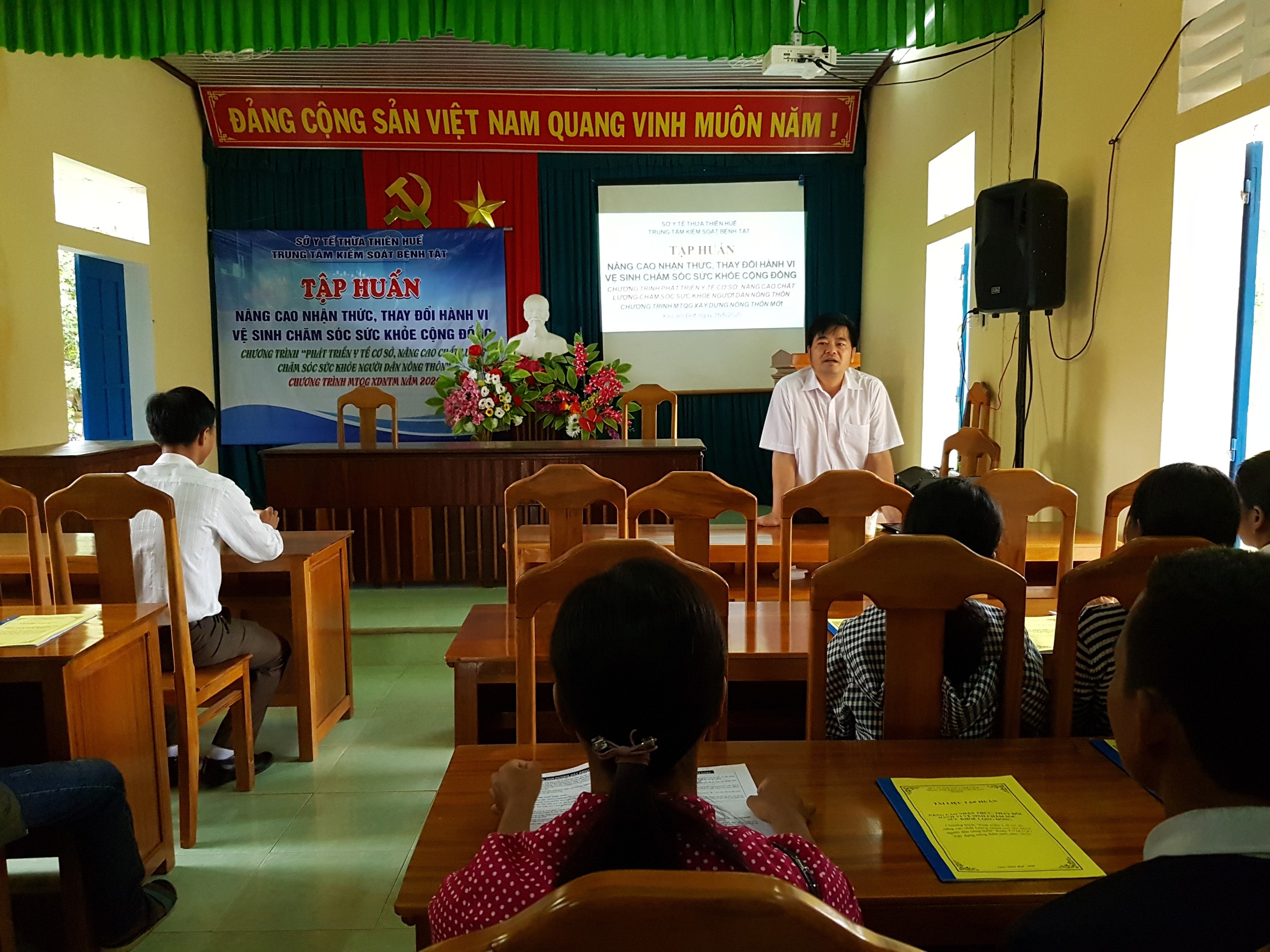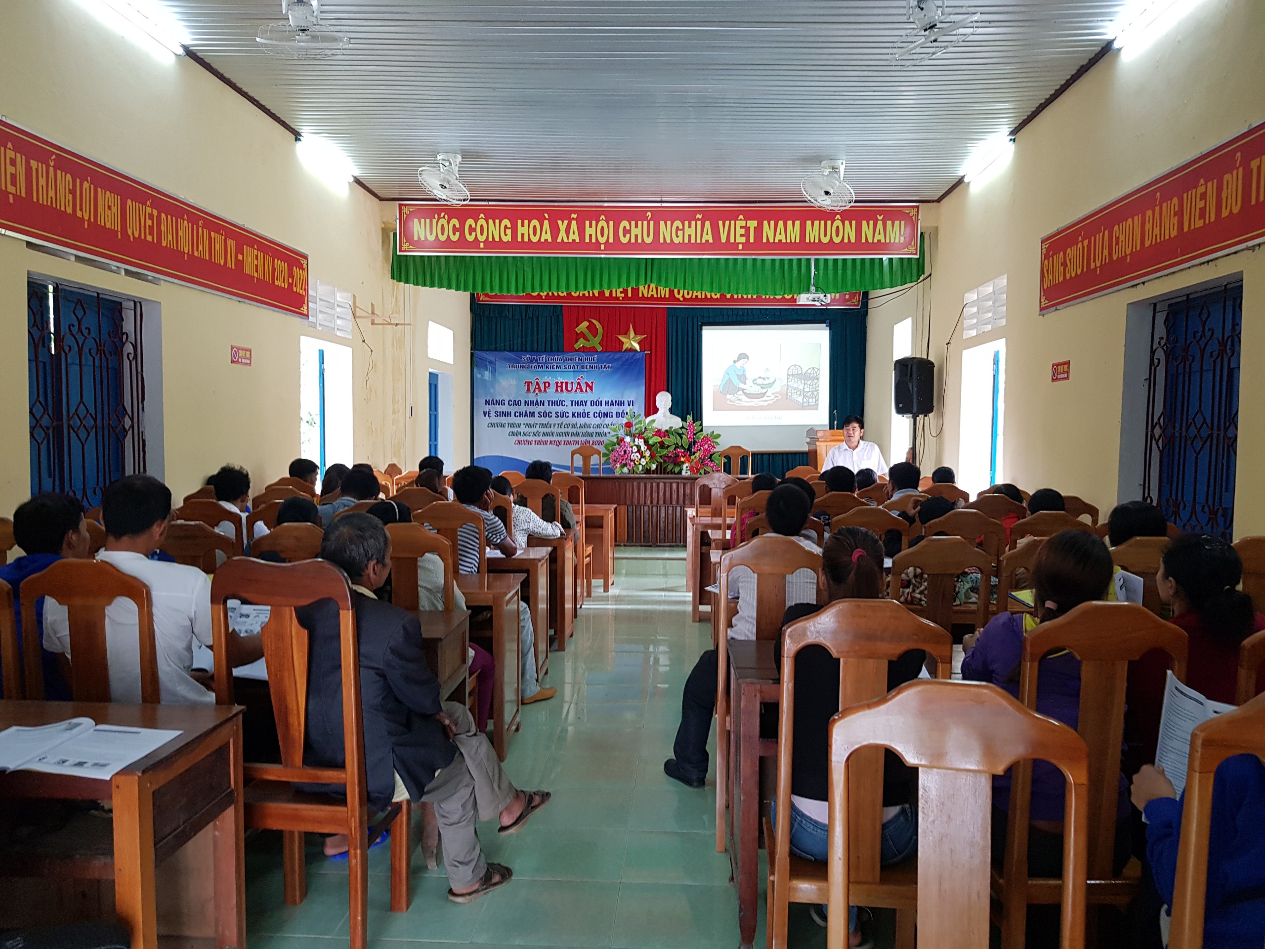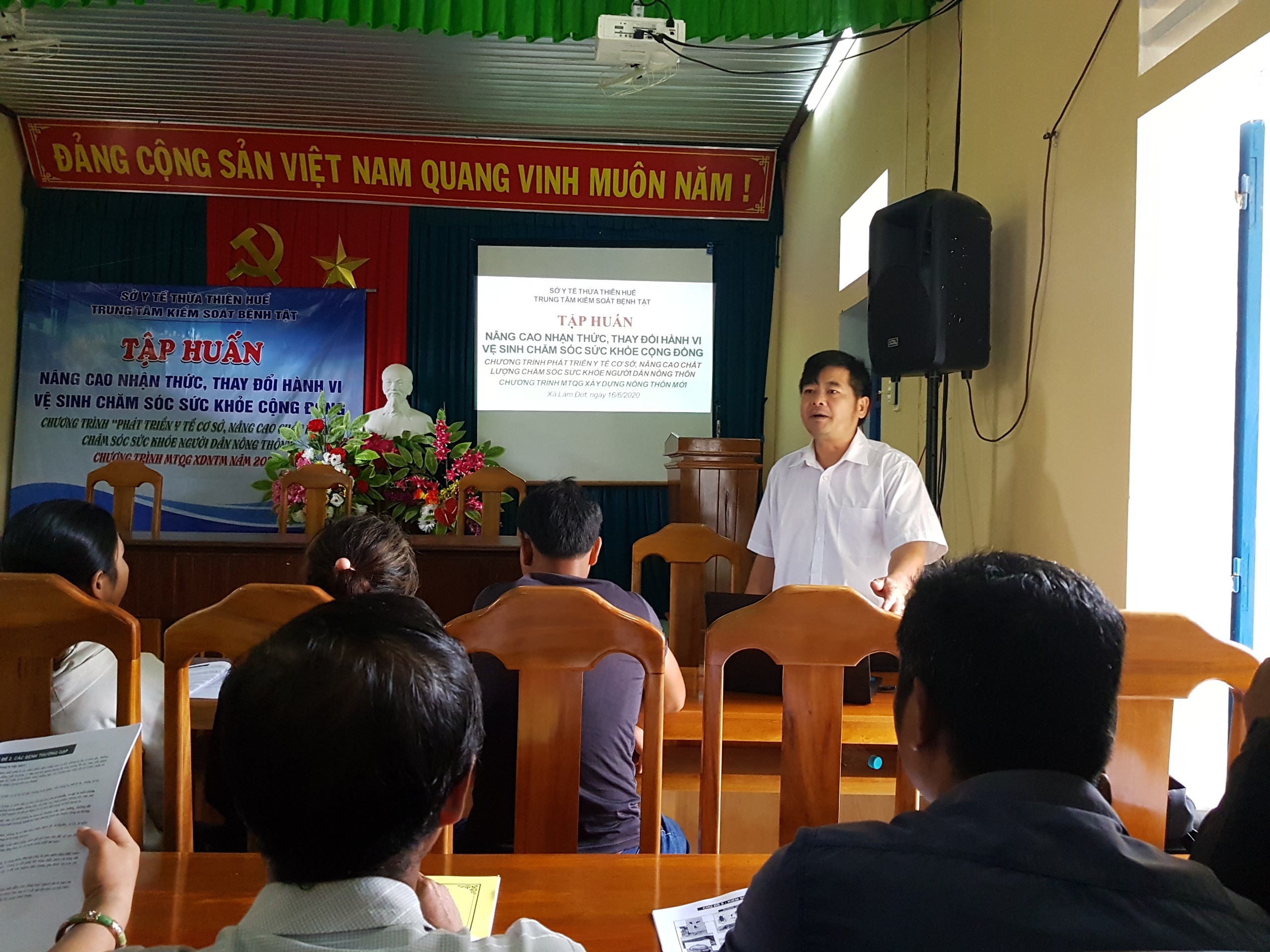 Ngày 16/6/2020 Trung tâm Kiểm soát bệnh tật tỉnh tổ chức tập huấn nâng cao nhận thức, thay đổi hành vi vệ sinh chăm sóc sức khỏe cộng đồng cho người dân tại xã Lâm Đớt, huyện A Lưới.
