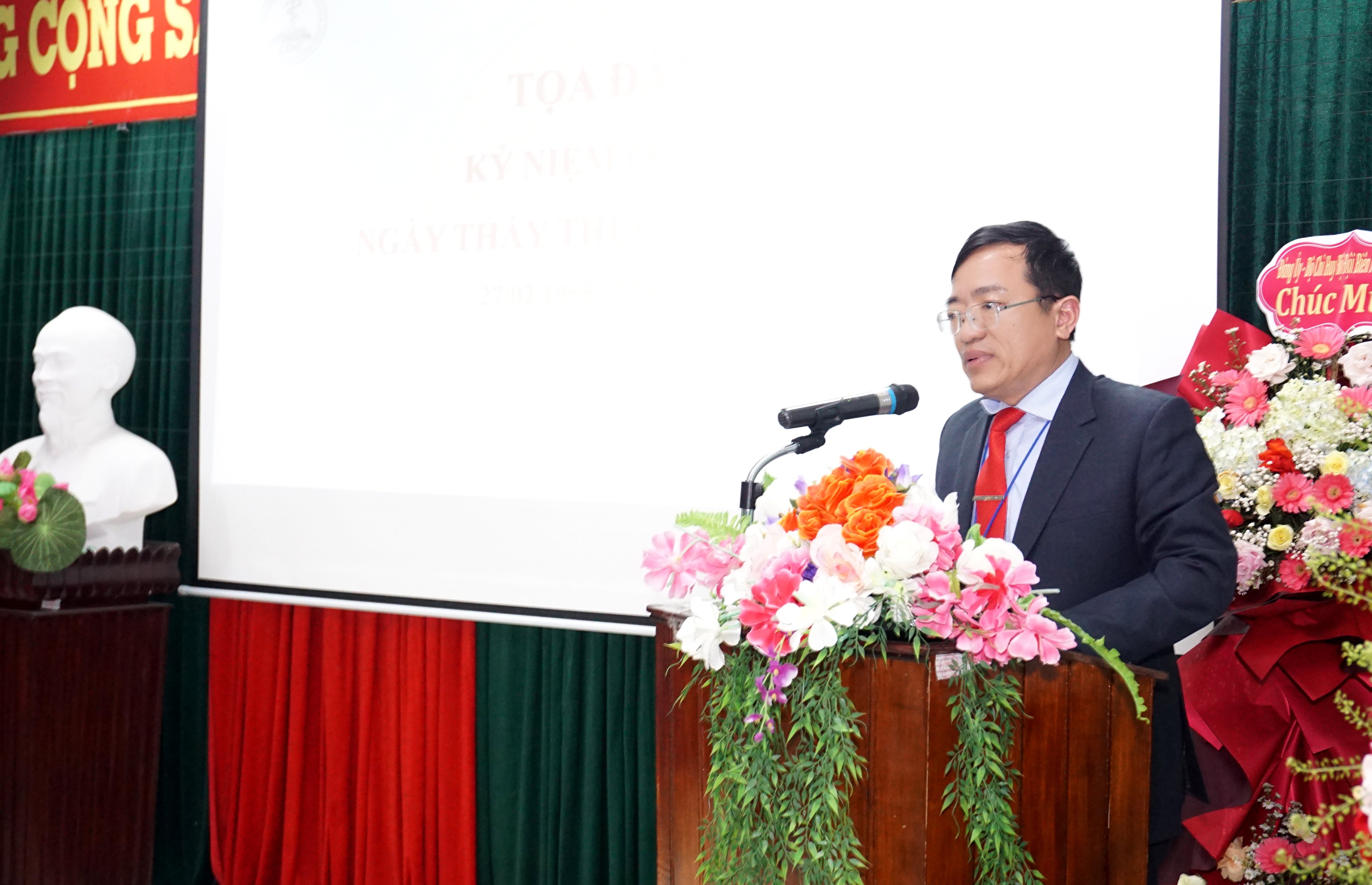 Phát biểu chỉ đạo, ThS.BSCKII Hoàng Trọng Qúy – Phó Giám đốc Sở Y tế tỉnh đánh giá cao những cống hiến, đóng góp mà đơn vị đã đạt được trong sự nghiệp chăm sóc sức khỏe nhân dân thời gian vừa qua, đặc biệt là sau đại dịch Covid 19. Tại buổi lễ đồng chí khẳng định cán bộ y tế dự phòng không hề đơn độc mà đang được sự quan tâm, ghi nhận của toàn xã hội, hy vọng các anh em sẽ tiếp tục tận tâm làm việc. Đồng chí cũng bày tỏ sự vui mừng khi TTKSBT đã có lớp kế thừa hùng hậu, đầy sức trẻ và nhiệt huyết đồng thời có lời khen ngợi trong công tác tổ chức lễ chào mừng Ngày Thầy thuốc Việt Nam.