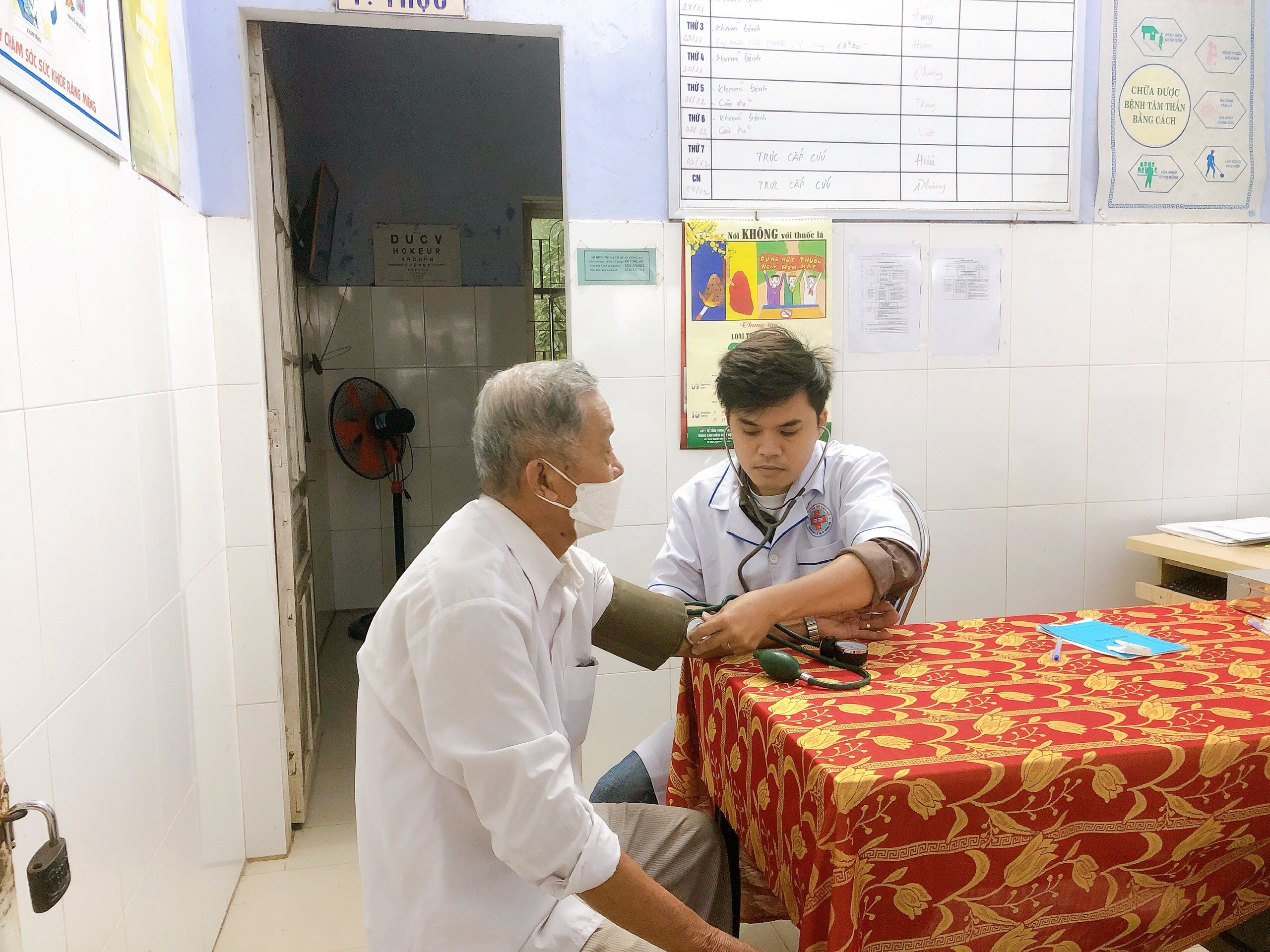 Cán bộ TYT Hương Xuân khám và tư vấn về bệnh tăng huyết áp