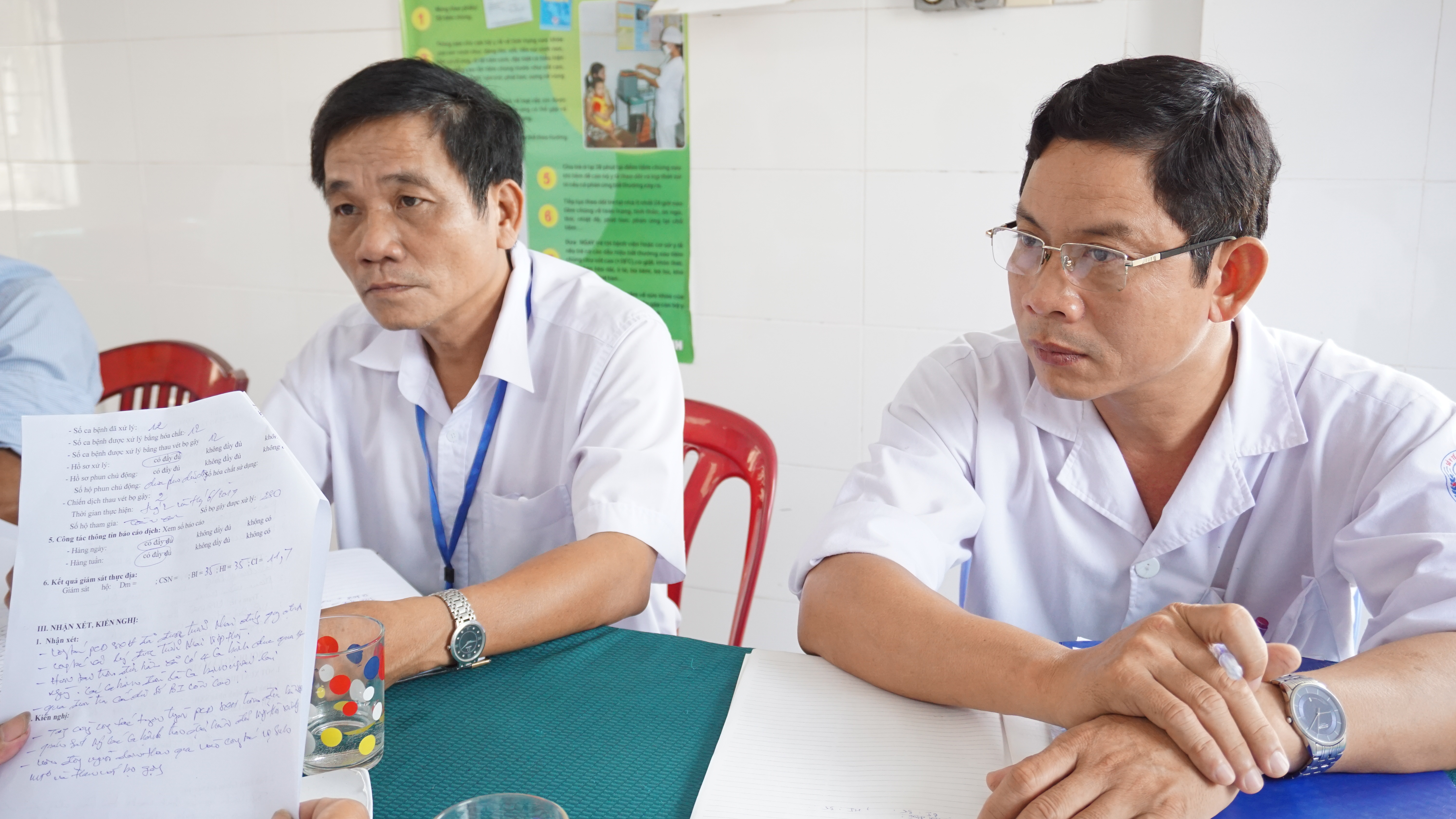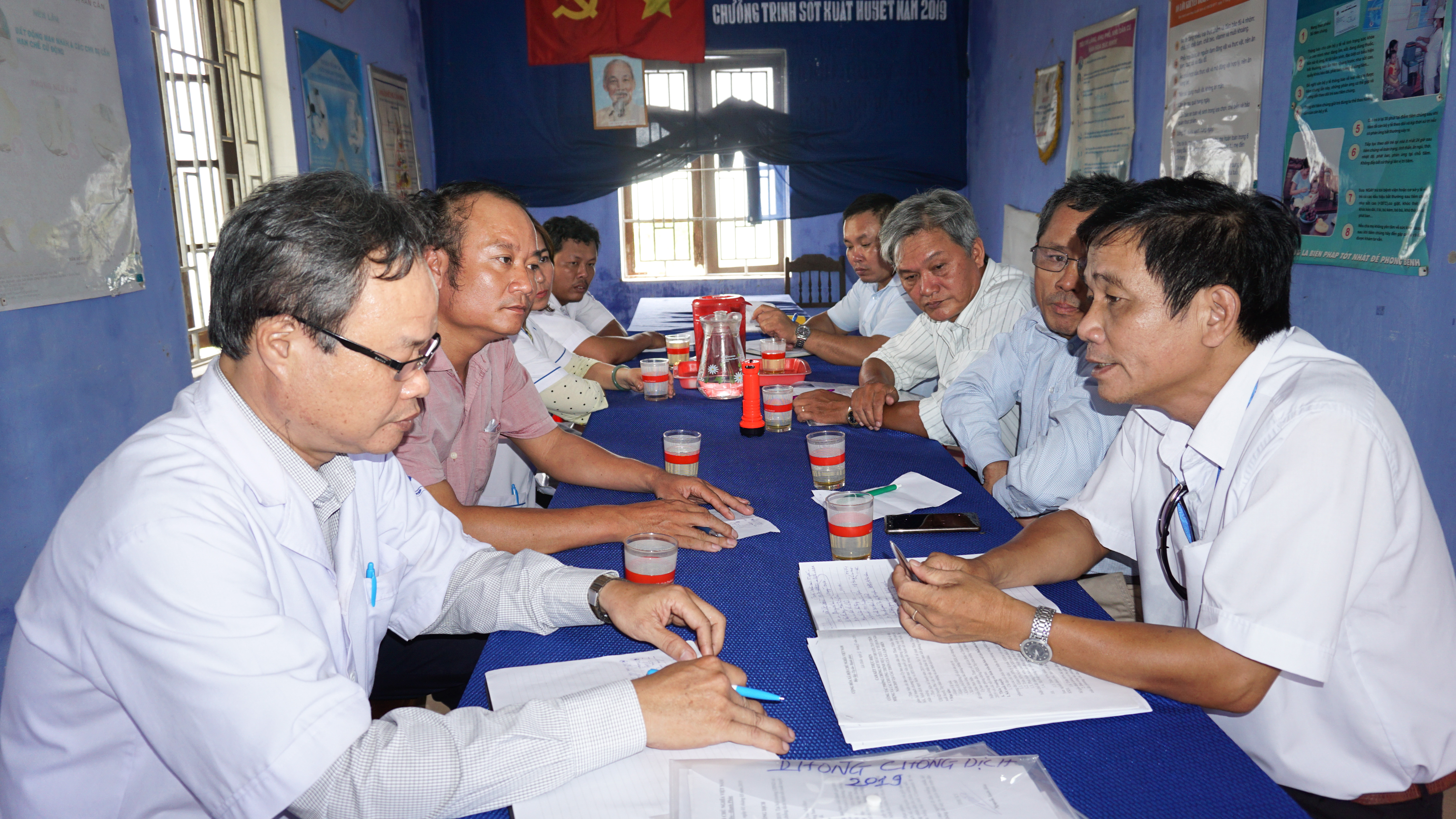 Đoàn đã làm việc với Trung tâm Y tế các huyện và đề nghị Lãnh đạo Trung tâm Y tế khẩn trương tham mưu cho lãnh đạo UBND huyện tổ chức hội nghị phòng chống dịch, chỉ đạo các Trạm y tế chủ động truyền thông cho các bậc cha mẹ làm ăn tại tại Lào về cách phòng chống sốt xuất huyết, cử cán bộ huyện phối hợp với Trạm Y tế đánh giá chỉ số BI, nắm được các kiểu hình vật chứa từng địa phương để chủ động thau vét bọ gậy. Thống kê và đánh giá lại chất lượng các máy phun, tồn hóa chất để chủ động trong phun xử lý và phun chủ động. Đặc biệt chú ý báo cáo các ca bệnh kịp thời, kể cả hệ thống y tế tư nhân.