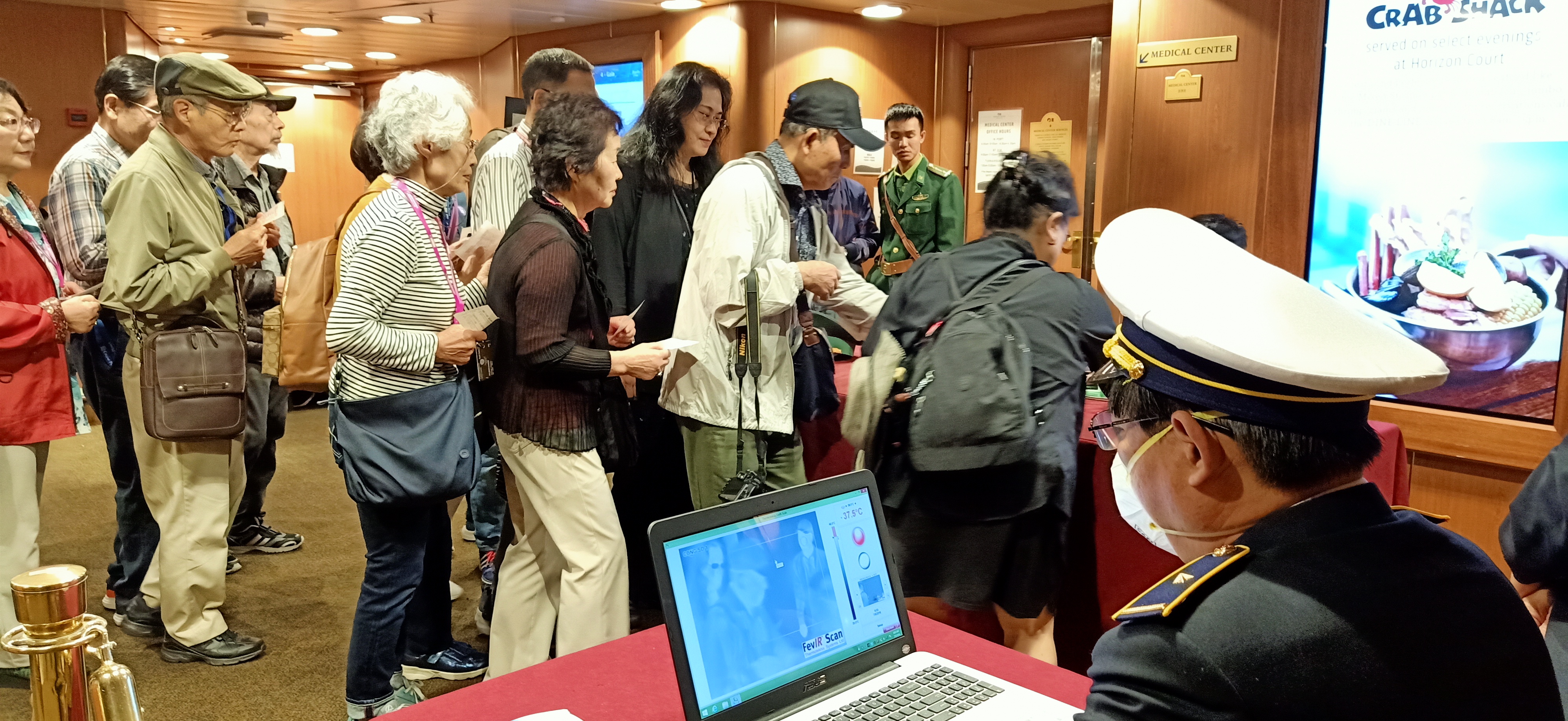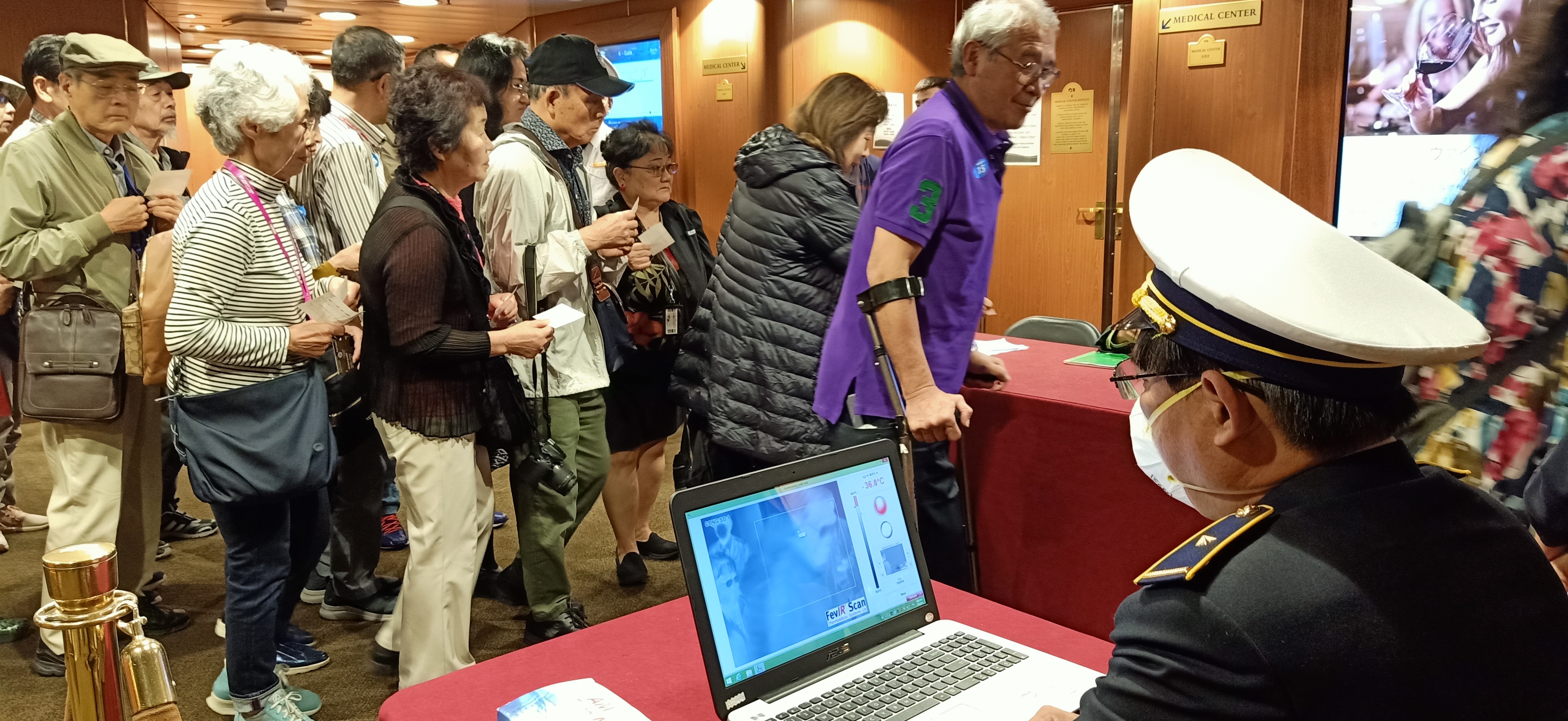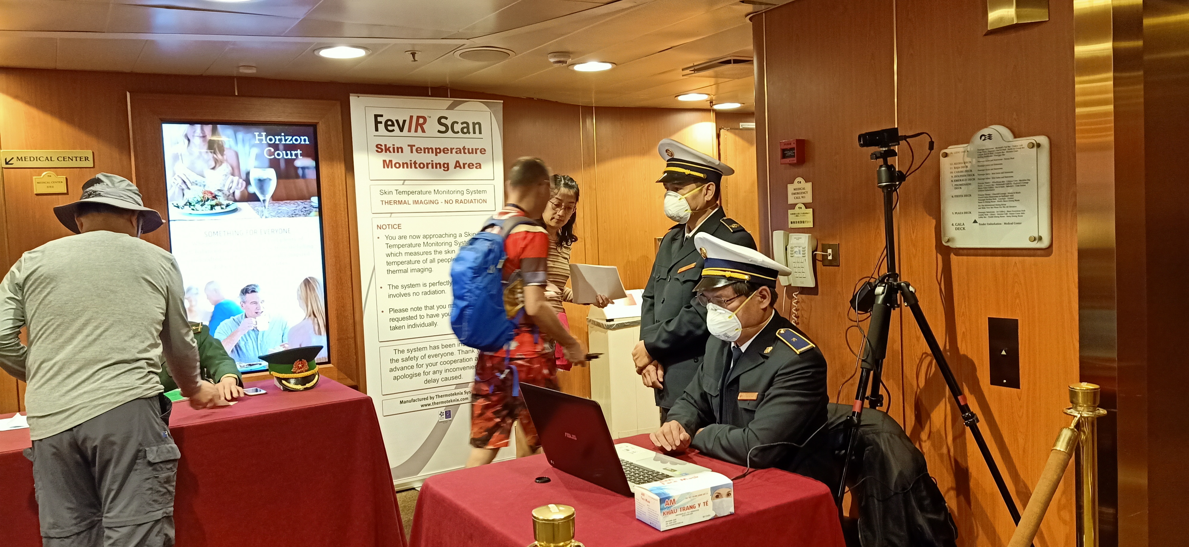 Khu vực đo thân nhiệt tại tàu du lịch DIAMOND PRINCESS