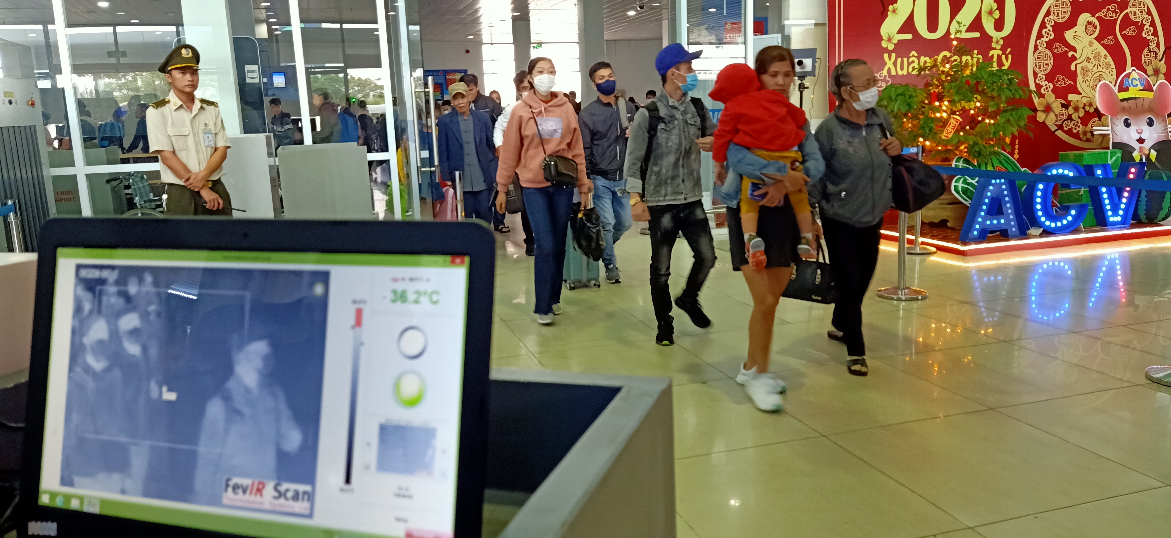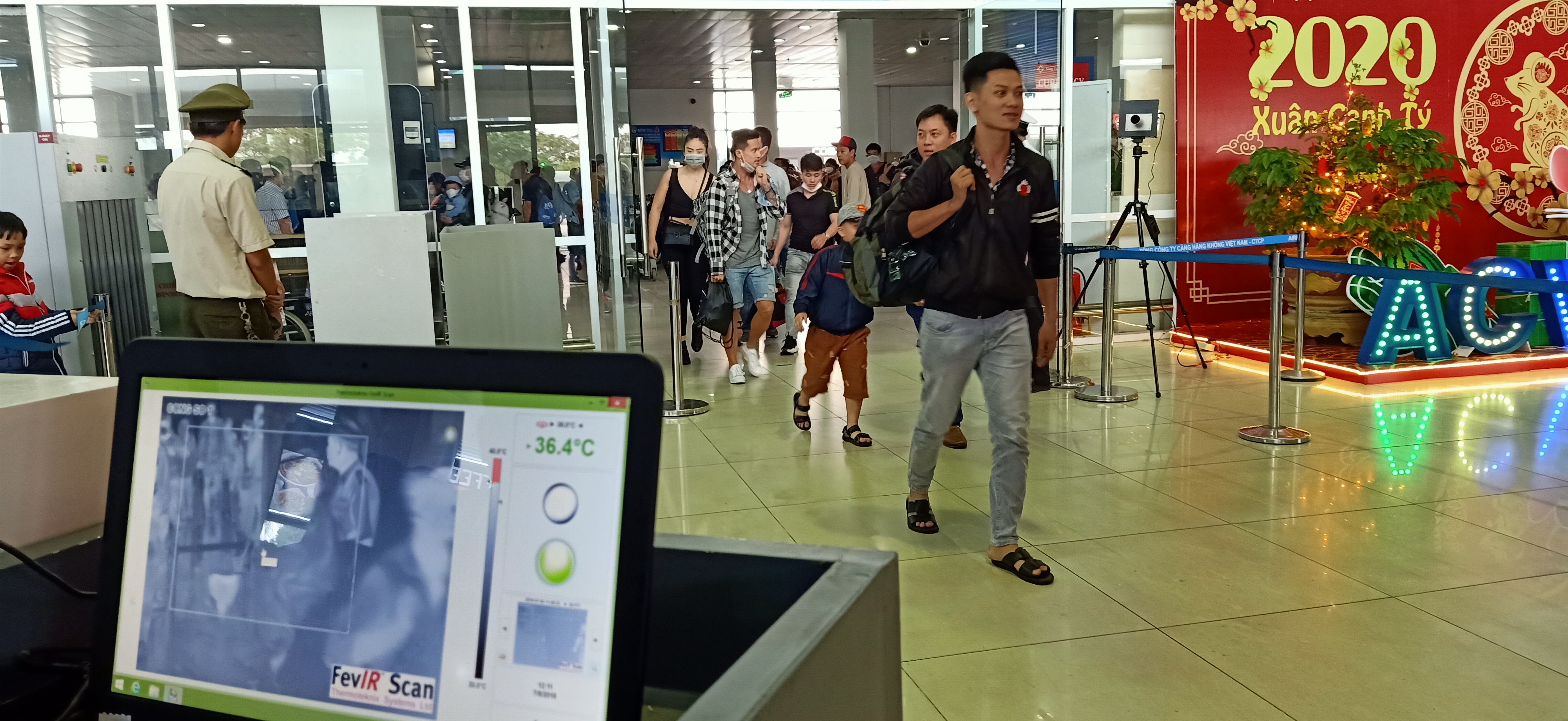 Khu vực đo thân nhiệt tại Sân bay Phú Bài