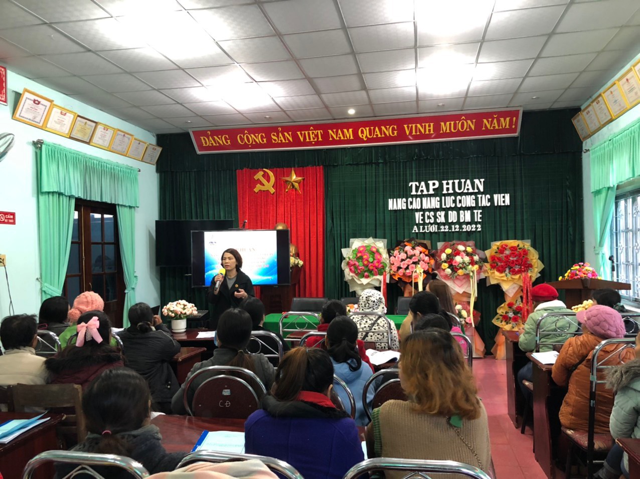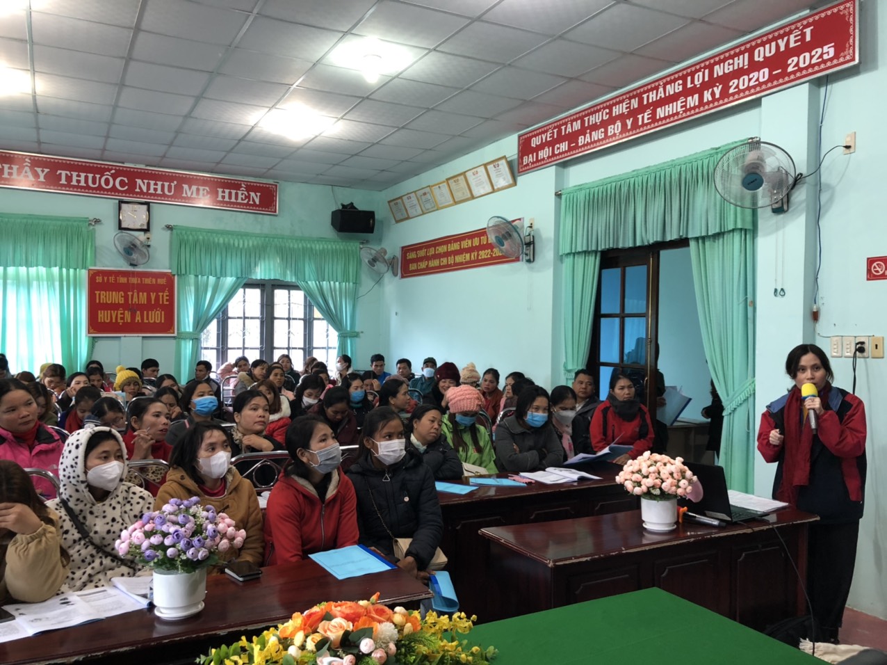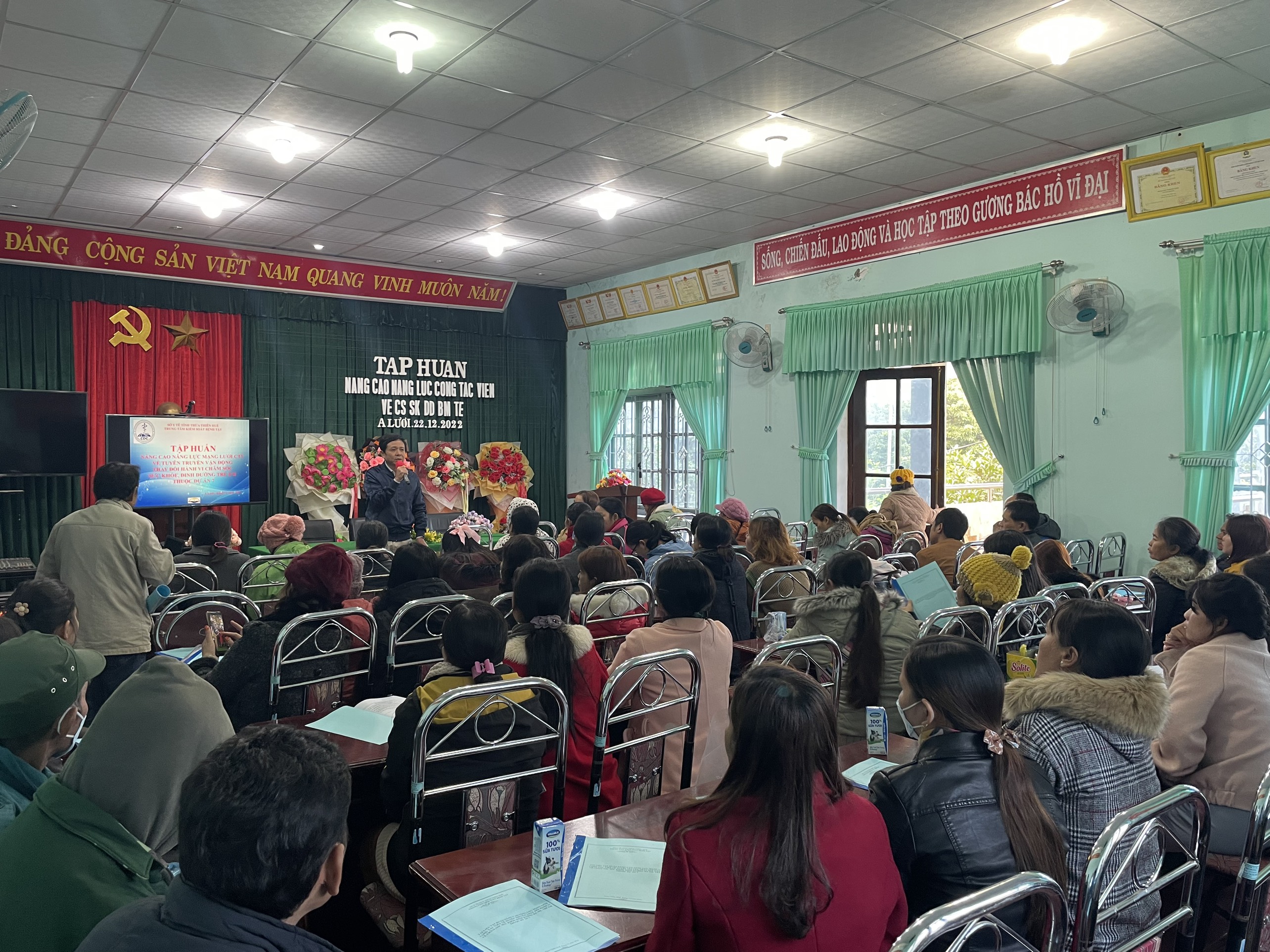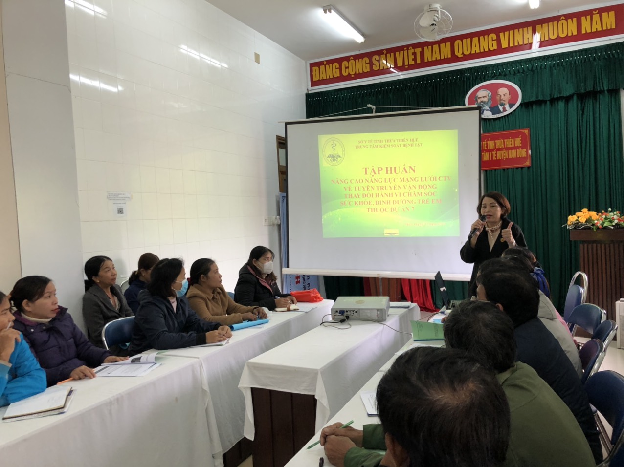 Từ ngày 21-23 tháng 12 năm 2022, Trung tâm Kiểm soát bệnh tật tỉnh Thừa Thiên Huế đã tổ chức các lớp tập huấn nâng cao năng lực mạng lưới cộng tác viên về tuyên truyền vận động, truyền thông thay đổi hành vi về chăm sóc sức khỏe, dinh dưỡng bà mẹ trẻ em dành cho 24 xã thuộc bốn huyện Hương Trà. Phú Lộc, Nam Đông và A Lưới với các nội dung về chăm sóc dinh dưỡng trong 1.000 ngày đầu đời cho bà mẹ - trẻ nhỏ lồng ghép trong chăm sóc trước, trong và sau sinh nhằm nâng cao tầm vóc, thể lực người dân tộc thiểu số và hướng dẫn phần mềm xây dựng thực đơn cân bằng dinh dưỡng dành cho PNMT, bà mẹ cho con bú và trẻ em từ 7-60 tháng tuổi.