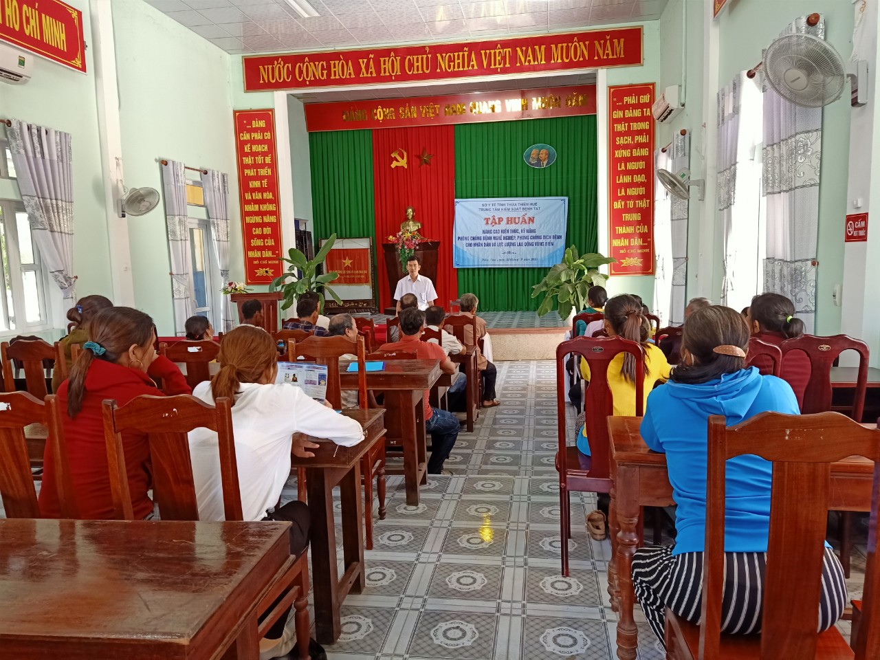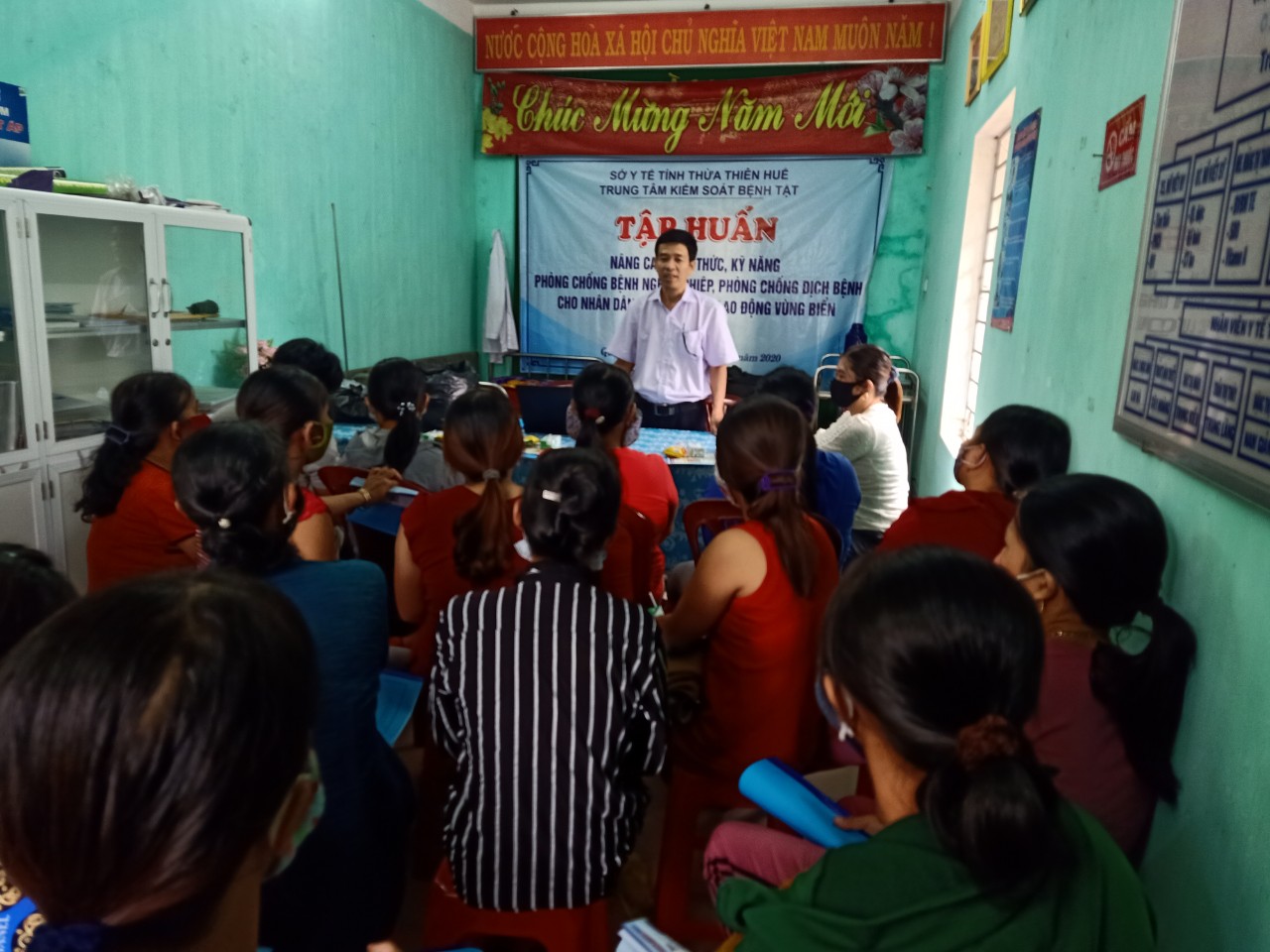 Từ ngày 22 tháng 9 đến ngày 02 tháng 10 năm 2020, phối hợp với các Trung tâm Y tế huyện Quảng Điền, Phong Điền, Phú Lộc, Phú Vang và UBND xã Quảng Thái, Điền Hòa, Giang Hải, Phú Gia, Vinh An, Phú Thuận, Trung tâm kiểm soát Bệnh tật tỉnh tổ chức 06 lớp tập huấn nâng cao kiến thức, kỹ năng phòng chống bệnh nghề nghiệp, phòng chống dịch bệnh cho ngư dân trên địa bàn trong kế hoạch hoạt động của đề án y tế biển đảo năm 2020. Có hơn 400 ngư dân tham dự tập huấn.