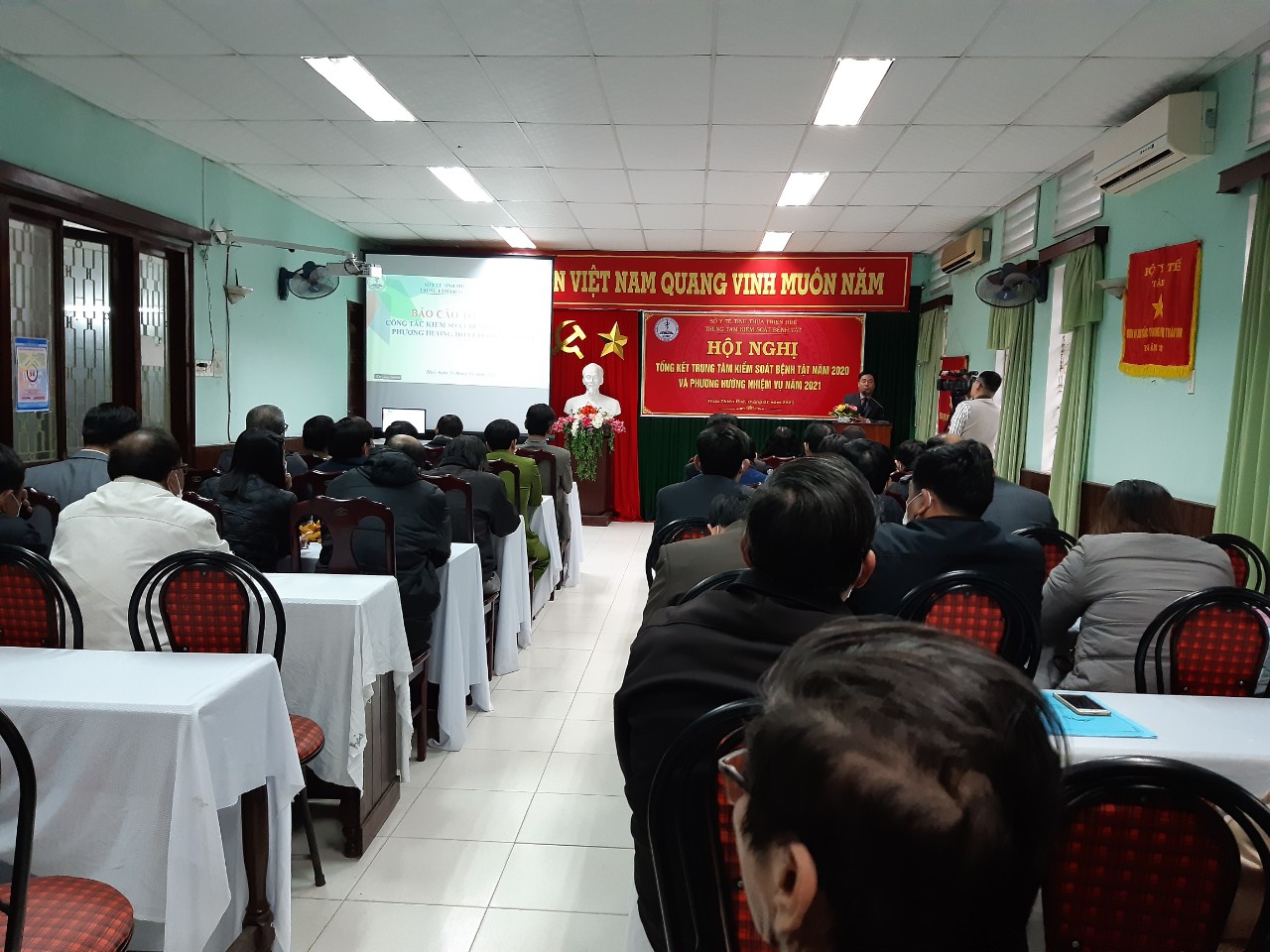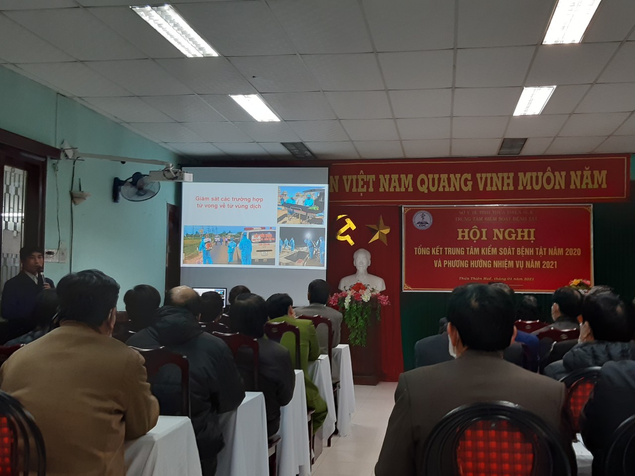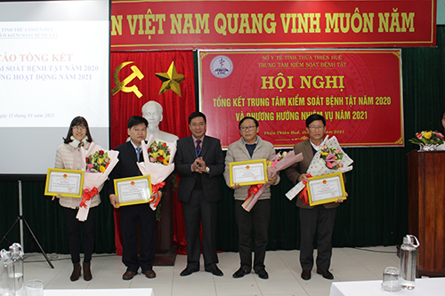 Chiều ngày 11- 01- 2021, Trung tâm Kiểm soát bệnh tật tỉnh tổ chức Hội nghị tổng kết năm 2020 và triển khai nhiệm vụ năm 2021. Đến tham dự Hội nghị có Ths.Bs Hoàng Hữu Nam - Phó Giám đốc Sở Y tế, đại diện phòng Nghiệp vụ Y - Sở Y tế, đại diện lãnh đạo Bệnh viện Trung Ương Huế, Trường Đại học Y-Dược Huế, các đơn vị trực thuộc, 9 Phòng Y tế, TTYT huyện, thị, thành phố và đại diện lãnh đạo các ban ngành, đoàn thể của tỉnh…