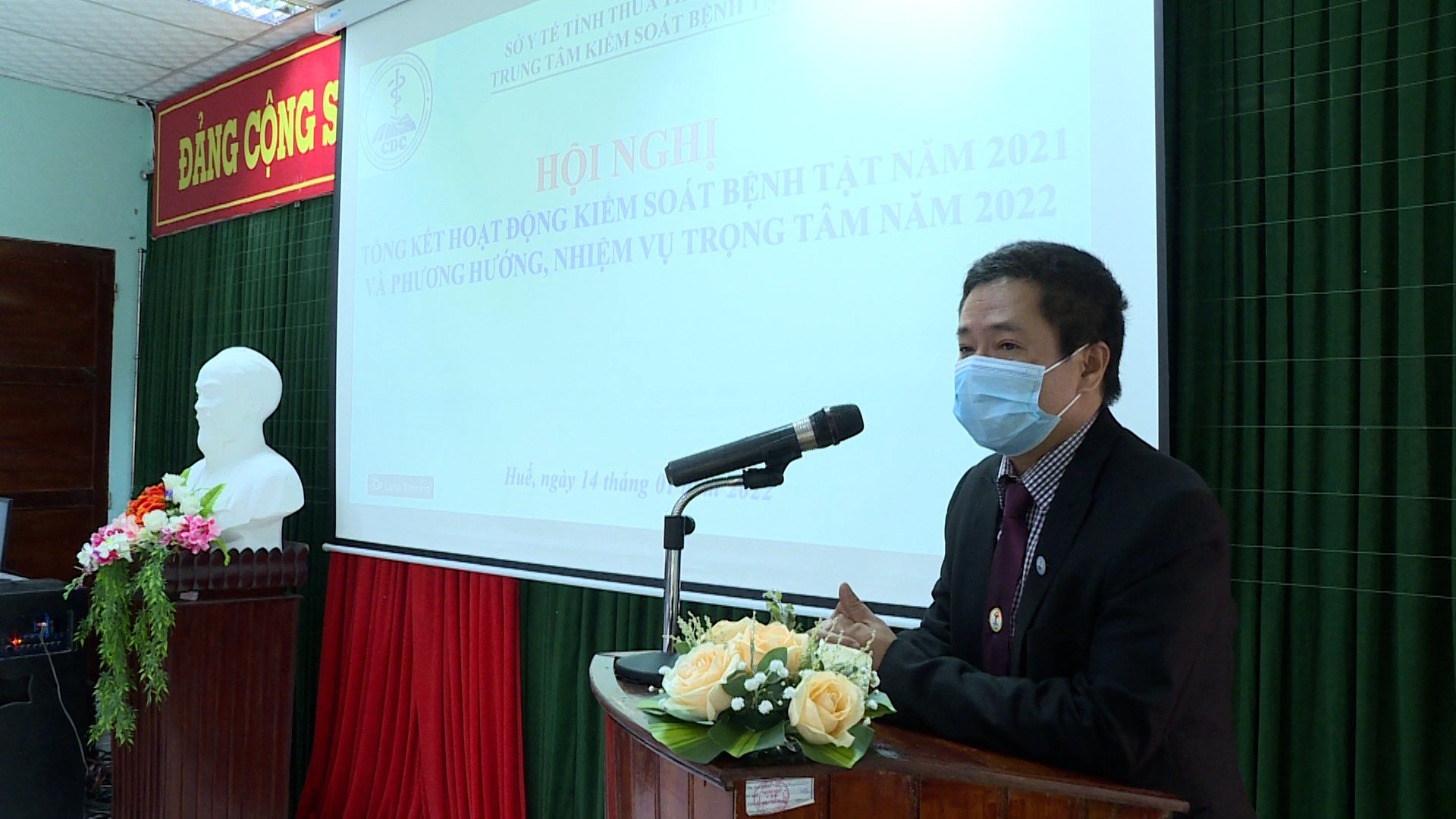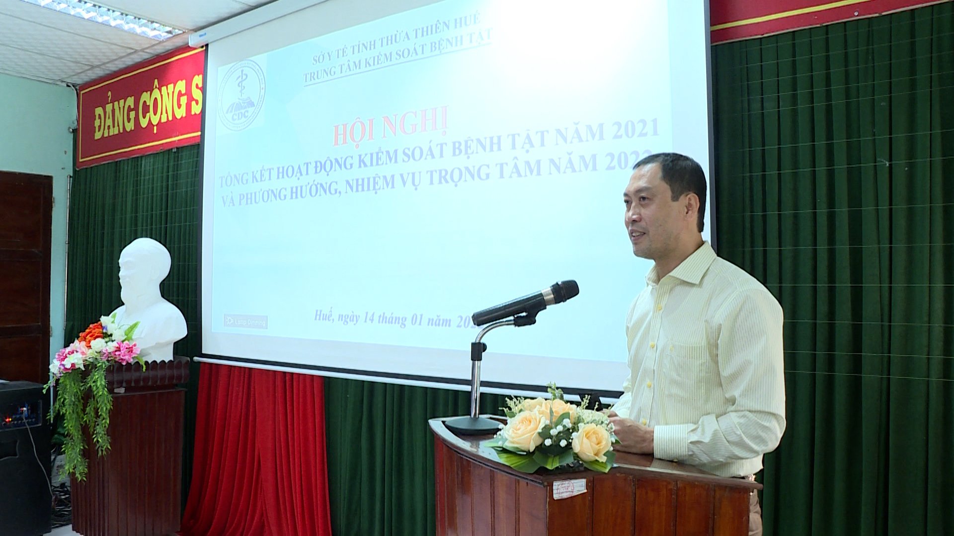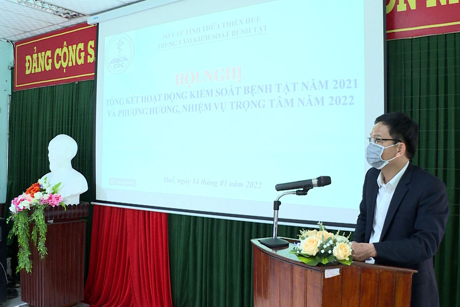 Chiều ngày 14- 01- 2022, Trung tâm Kiểm soát bệnh tật tỉnh tổ chức Hội nghị tổng kết năm 2021 và triển khai nhiệm vụ năm 2022. Tham dự Hội nghị có PGS.TS Trần Kiêm Hảo- Giám đốc Sở Y tế, Ths.BSCKII Hoàng Trọng Qúy- Phó Giám đốc Sở Y tế, đại diện lãnh đạo Bệnh viện Trung Ương Huế, lãnh đạo các phòng chức năng - Sở Y tế, các đơn vị liên quan và 9 TTYT huyện, thị, thành phố.