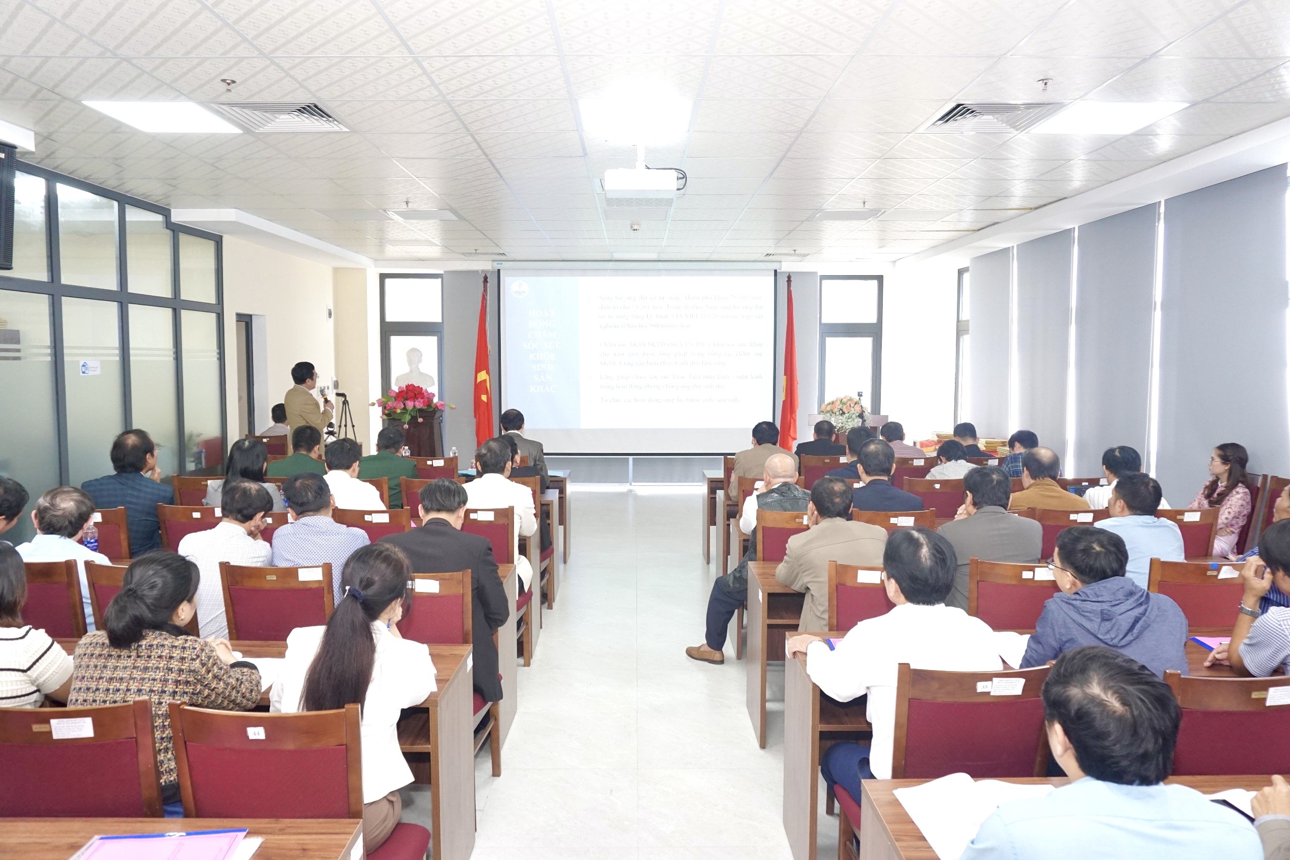 ThS. BSCKII Nguyễn Lê Tâm - Phó Giám đốc phụ trách Trung tâm KSBT báo cáo tại Hội nghị