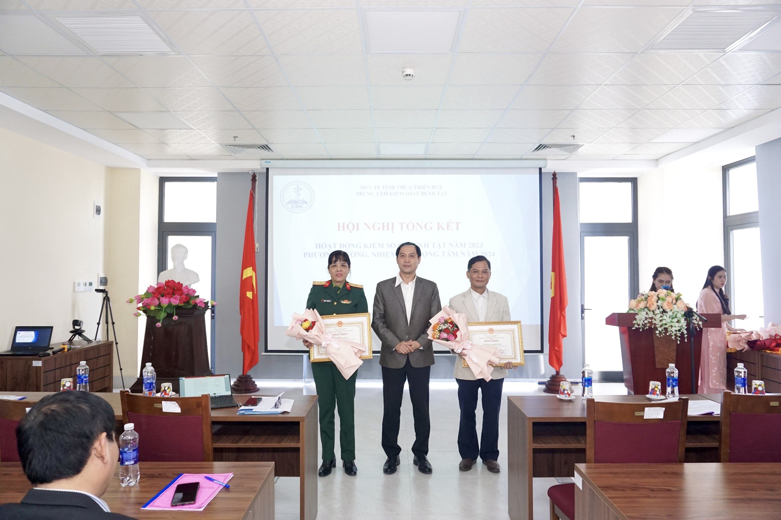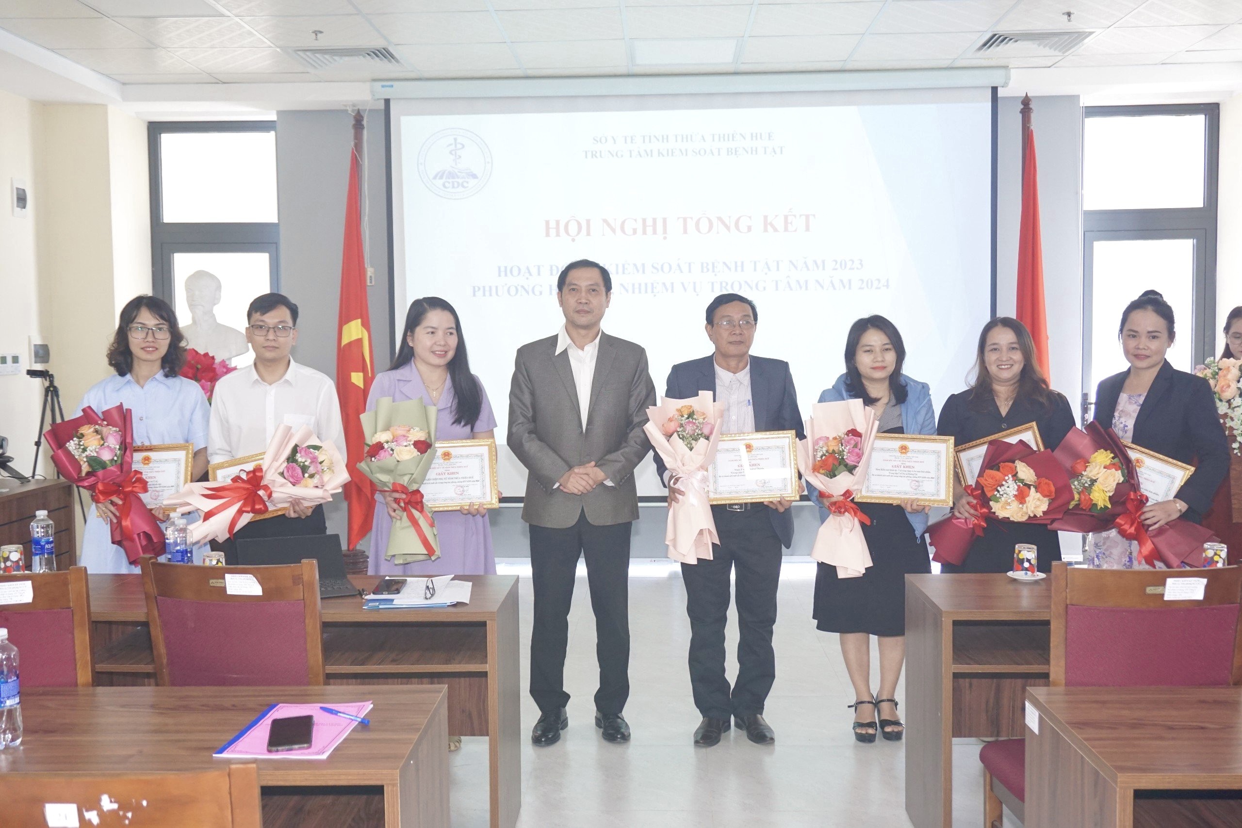 Chiều ngày10/01/2024, Trung tâm Kiểm soát bệnh tật tỉnh tổ chức Hội nghị tổng kết năm 2023 và triển khai nhiệm vụ năm 2024. Đến tham dự và chỉ đạo Hội nghị có PGS.TS.BS Trần Kiêm Hảo - Giám đốc Sở Y tế, đại diện các phòng chức năng - Sở Y tế, đại diện lãnh đạo Bệnh viện Trung Ương Huế, Trường Đại học Y-Dược Huế, các ban ngành, đoàn thể của tỉnh, đại diện các đơn vị trực thuộc Sở Y tế, Ban Giám đốc Trung tâm Kiểm soát bệnh tật tỉnh, đại diện các khoa phòng Trung tâm và 9 TTYT huyện, thị, thành phố.