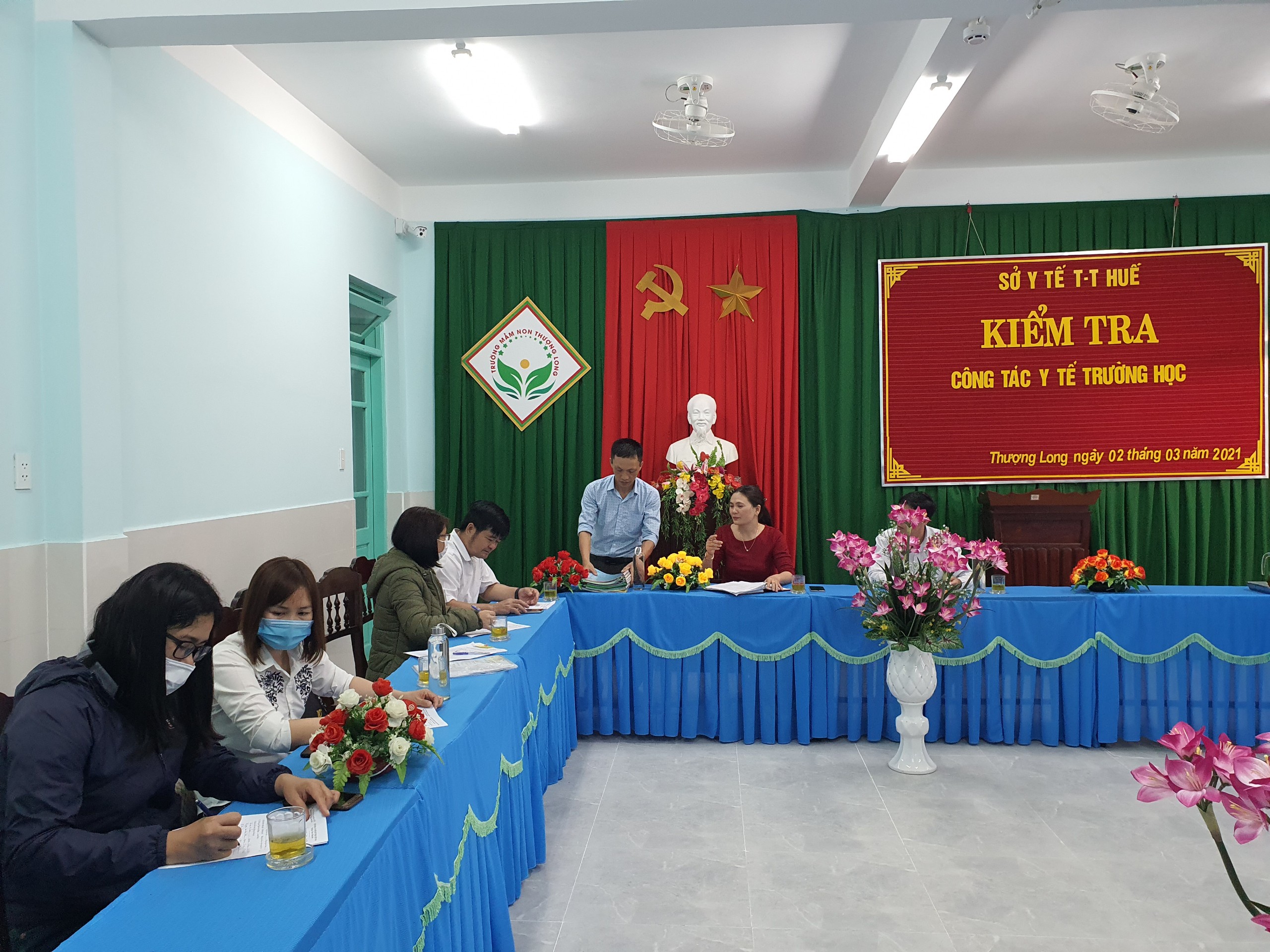 Ngày 02/3/2021, Trung tâm Kiểm soát bệnh tật Tỉnh phối hợp cùng với Trung tâm Y tế huyện, Phòng Giáo dục và Đào tạo huyện Nam Đông tổ chức kiểm tra vệ sinh trường học, công tác phòng chống bệnh tật học đường tại Trường tiểu học Thượng Long và Trường mầm non Thượng Long, huyện Nam Đông.<span style="background-image:initial;background-position:initial;background-size: initial; background-repeat:initial;background-attachment:initial;background-origin: initial; background-clip: initial">