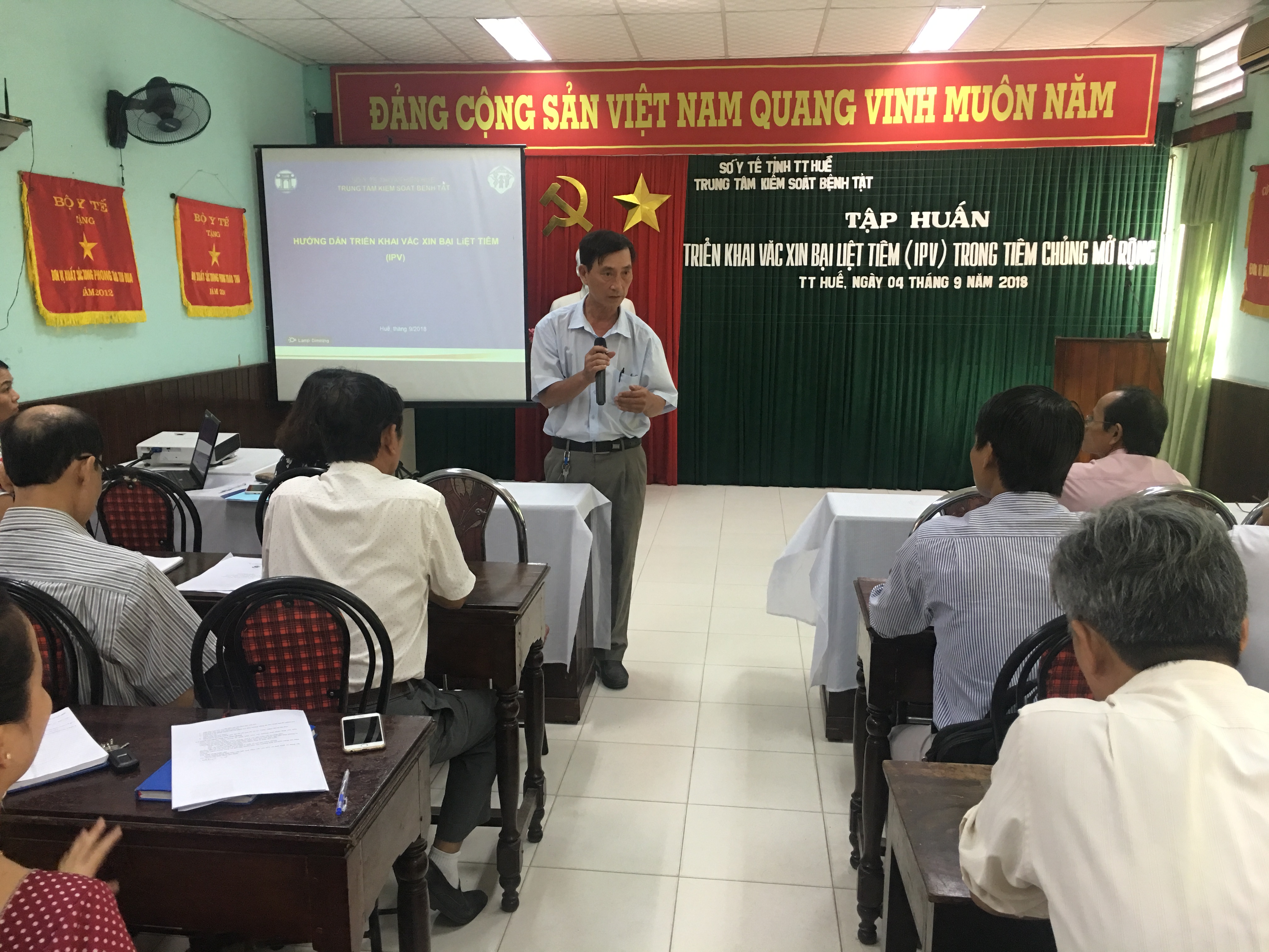 Tại lớp tập huấn, các cán bộ khoa Phòng chống bệnh truyền nhiễm - TTKSBT tỉnh đã trình bày hướng dẫn sử dụng vắc xin IPV trong TCMR, đồng thời đánh giá lại kết quả thực hiện TCMR 7 tháng đầu năm 2018, các nội dung đã thực hiện tốt cũng như các vấn đề khó khăn và tồn tại cần được khắc phục và kế hoạch hoạt động trong các tháng cuối năm 2018.