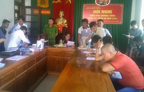 Các thành viên tham gia buổi truyền thông vận động tại công an phường An Đông
