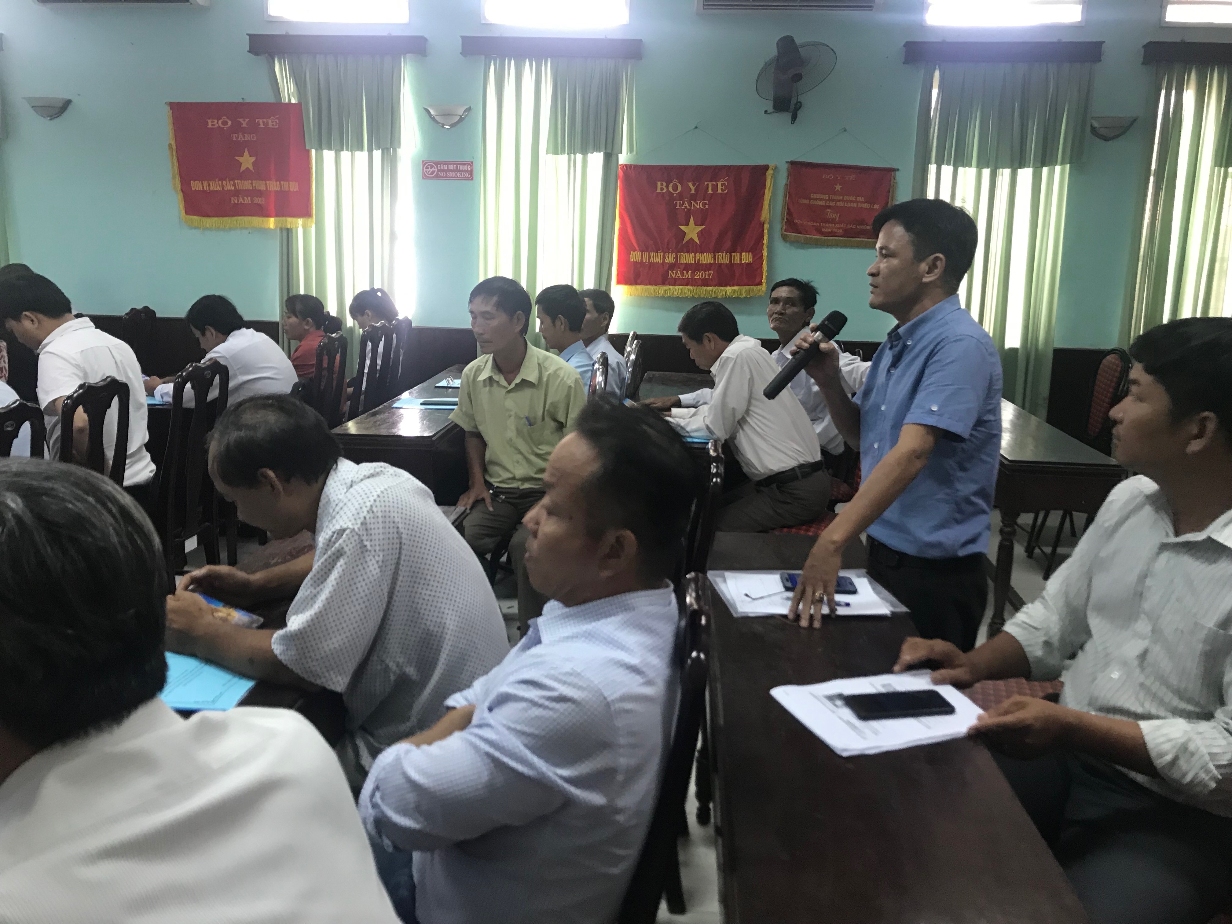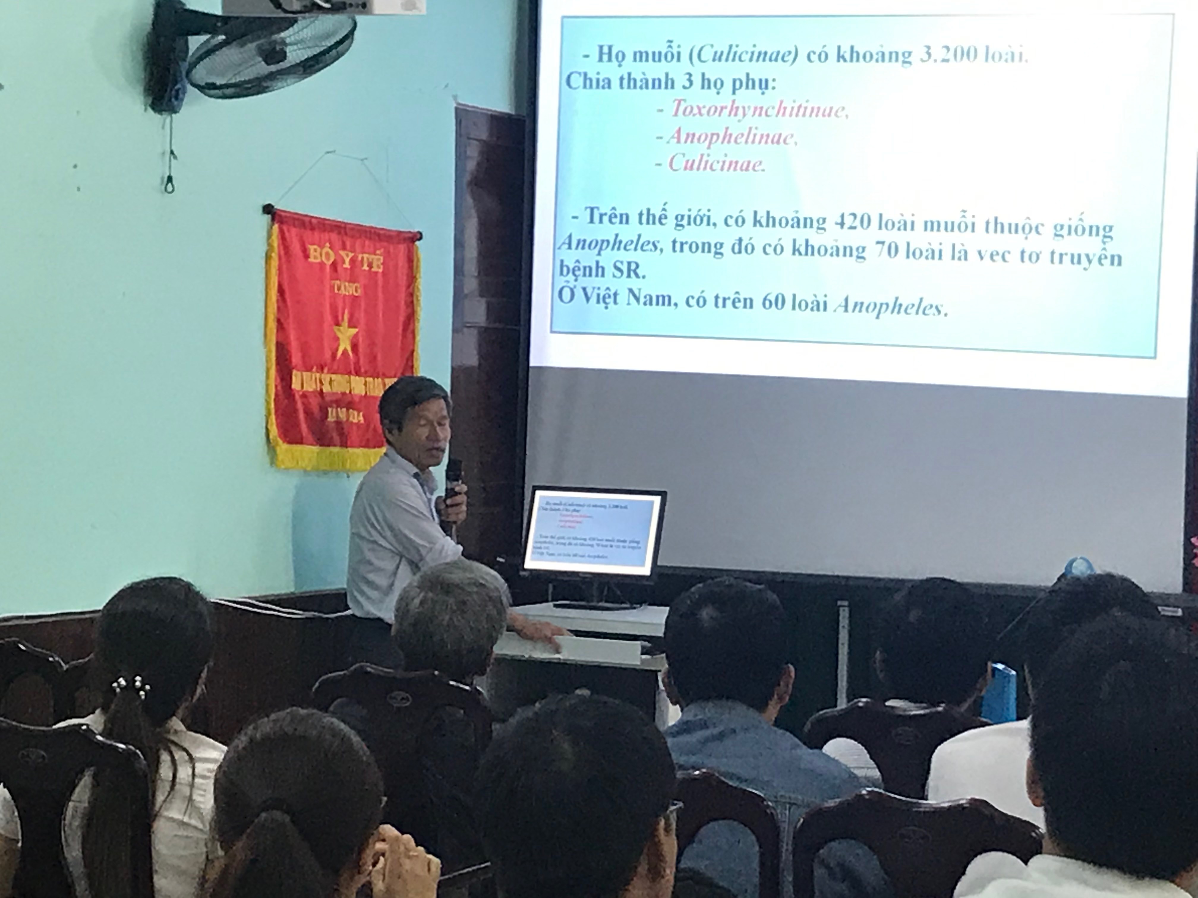 Sáng ngày 15/08/2018, tại hội trường Trung tâm Kiểm soát bệnh tật, khoa phòng, chống bệnh truyền nhiễm phối hợp với khoa ký sinh trùng- sốt rét tổ chức lớp tập huấn kỹ thuật phun, tẩm hóa chất, phương pháp điều tra, giám sát, phân loại muỗi sốt xuất huyết.
