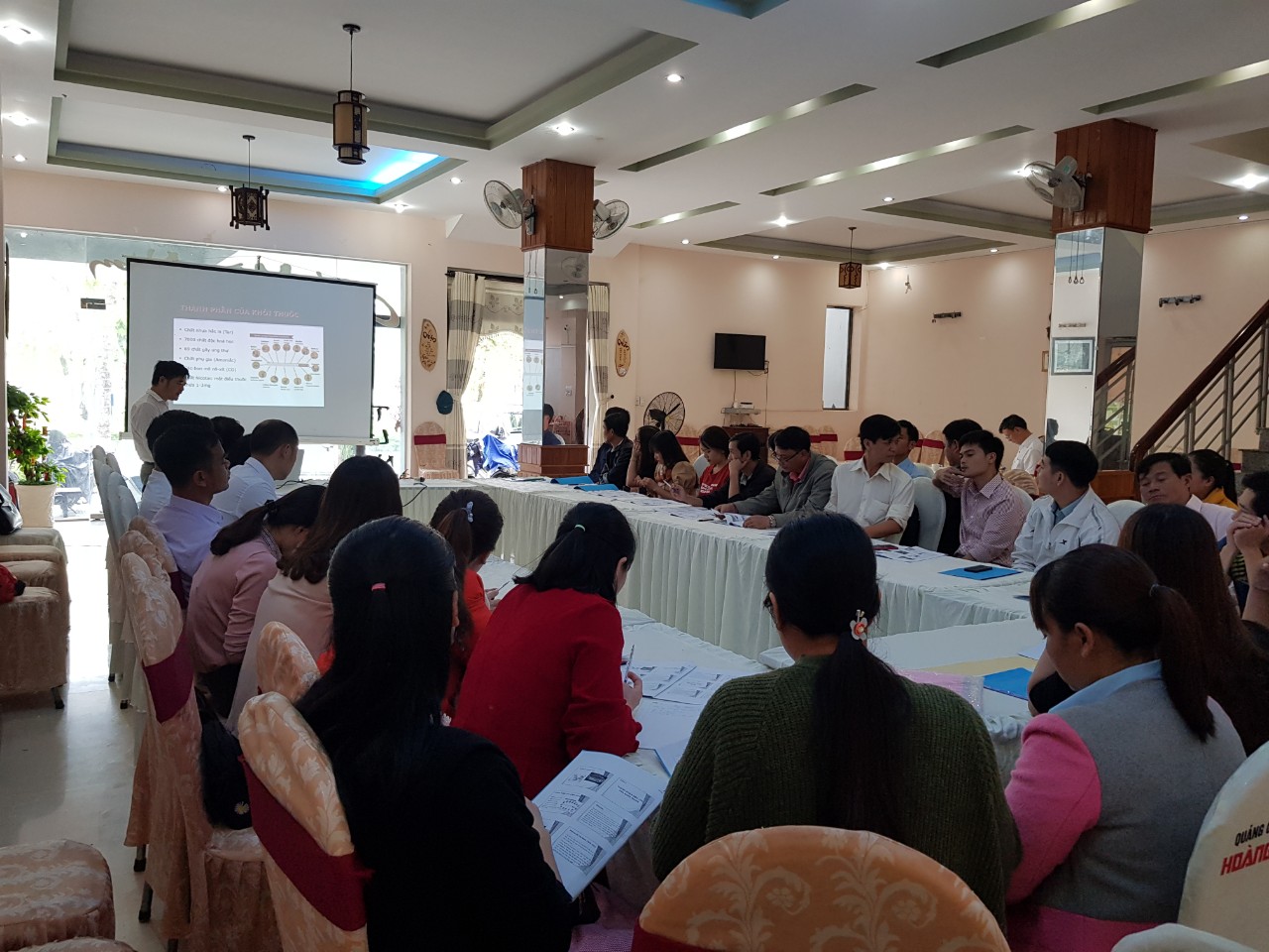 Tham dự tập huấn có 40 giáo viên các trường trên địa bàn huyện A Lưới. Tại lớp tập huấn, các học viên đã được Ths.Bs Trần Bá Thanh – Trưởng khoa SKMT-YTTH trình bày một số nội dung cơ bản về tình hình sử dụng thuốc lá; tác hại của việc sử dụng thuốc lá đến sức khỏe con người, kinh tế và môi trường; lợi ích của môi trường không khói thuốc lá và hướng dẫn thực hiện xây dựng môi trường không khói thuốc tại cộng đồng. Bên cạnh đó, các học viên cũng đã được phổ biến thêm về Luật phòng, chống tác hại thuốc lá và quy định xử phạt vi phạm hành chính trong phòng, chống tác hại thuốc lá. Ngoài ra, các học viên còn được trao đổi các vấn đề liên quan đến việc sử dụng thuốc lá, các biện pháp tuyên truyền phù hợp để tuyên truyền đến các em học sinh trong trường và giúp người hút thuốc lá tại địa phương hạn chế hoặc bỏ sử dụng thuốc lá.