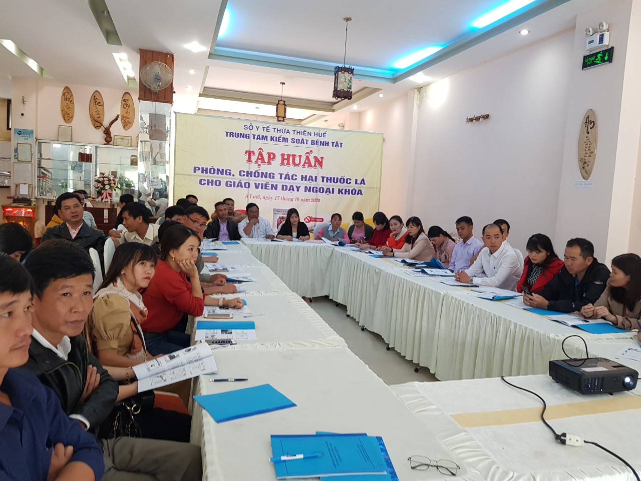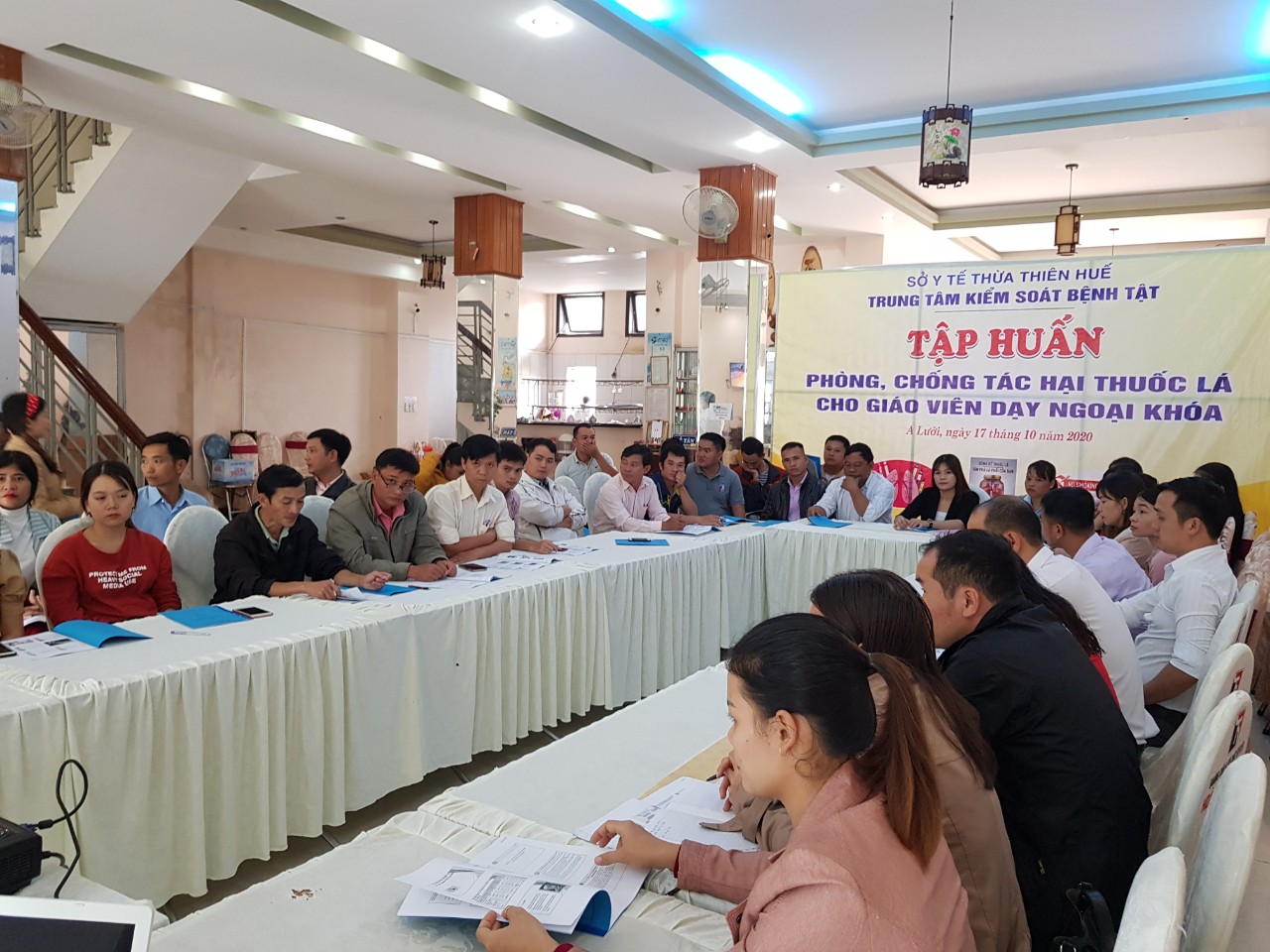 Ngày 15/10/2020 Trung tâm Kiểm soát bệnh tật đã phối hợp với Trung tâm Y tế huyện A Lưới tổ chức lớp tập huấn về phòng, chống tác hại thuốc lá cho giáo viên dạy ngoại khóa của các trường trên địa bàn huyện A Lưới nhằm nâng cao kiến thức về tác hại của thuốc lá và đẩy mạnh công tác tuyên truyền Luật phòng, chống tác hại của thuốc lá.