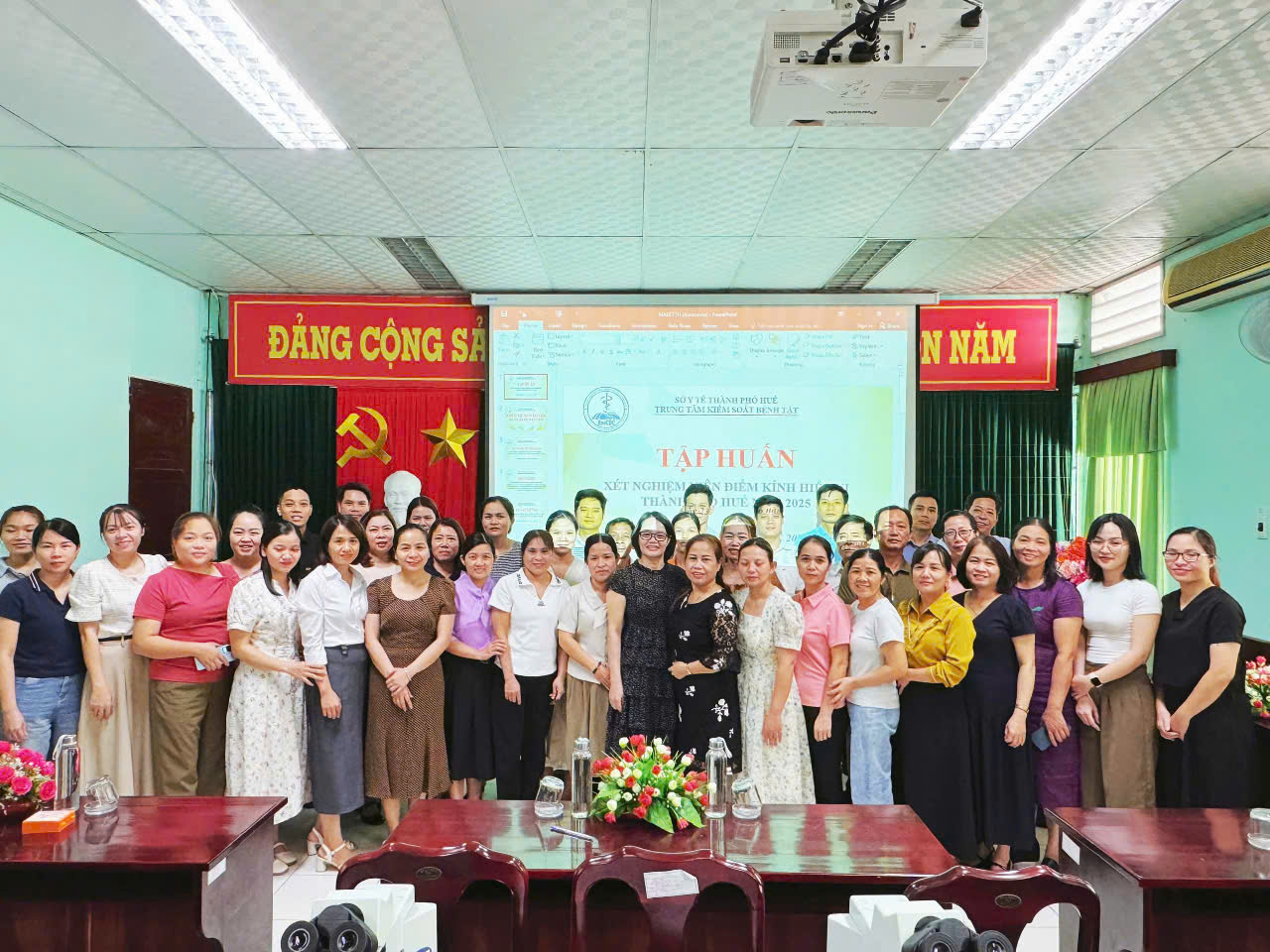 Nhằm bảo vệ thành quả loại trừ sốt rét, ngăn ngừa sốt rét quay trở lại, nâng cao chất lượng kỹ thuật xét nghiệm Ký sinh trùng sốt rét của các điểm kính hiển vi để đảm bảo công tác phát hiện, chẩn đoán, điều trị và theo dõi kết quả đáp ứng điều trị bệnh sốt rét.Từ ngày 23/6 - 24/6/2025, Trung tâm Kiểm soát bệnh tật tổ chức tập huấn chẩn đoán sốt rét bằng kính hiển vi và test chẩn đoán nhanh cho 41 cán bộ phụ trách điểm kính hiển vi làm công tác xét nghiệm chẩn đoán sốt rét các huyện: Phú Lộc, Phong Điền, Quảng Điền, Phú Vang, Thị xã Hương Trà, Thị xã Hương Thủy, Quận Thuận Hóa, Quận Phú Xuân, BVĐK Bình Điền.
