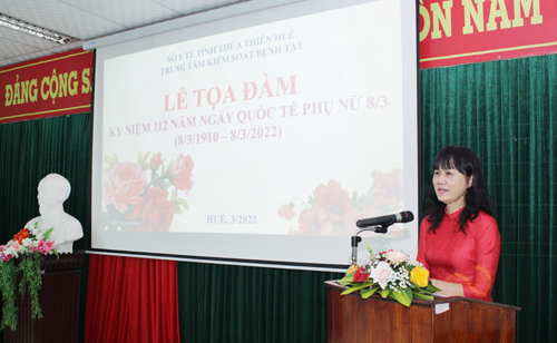 Ngày 8-3-2022, Trung tâm Kiểm soát bệnh tật tỉnh tổ chức Tọa đàm Kỷ niệm 112 năm Ngày Quốc tế Phụ nữ (8/3/1910-8/3/2022). Đến dự có ThsBS. Võ Đăng Huỳnh Anh – Phó Chủ tịch Công đoàn ngành Y tế, Trưởng Ban nữ công; BSCKII. Nguyễn Lê Tâm – Phó Giám đốc phụ trách Trung tâm Kiểm soát bệnh tật; Ban chấp hành Công đoàn cơ sở và toàn thể nữ cán bộ, viên chức, người lao động (CBVCNLĐ) của đơn vị.