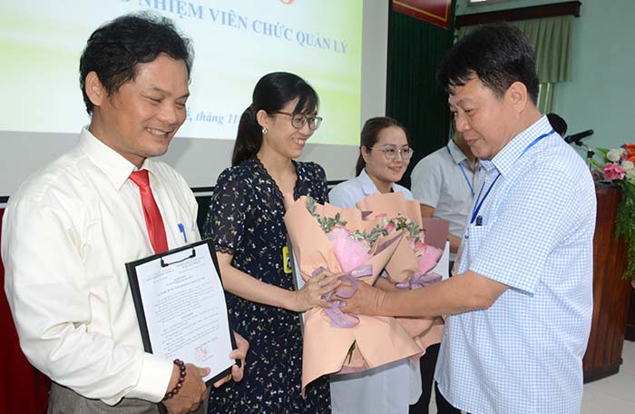 Ths. BSCKII Nguyễn Lê Tâm chúc mừng và giao nhiệm vụ cho các viên chức được bổ nhiệm.