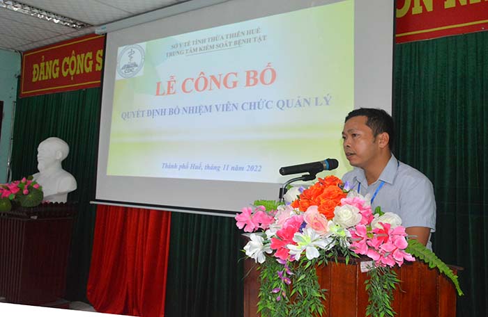 Chiều ngày 25/11/2022, Trung tâm Kiểm soát bệnh tật tỉnh tổ chức Lễ Công bố và trao Quyết định bổ nhiệm cho viên chức quản lý, tham dự lễ có các đồng chí Ủy viên BCH Đảng bộ Bộ phận, Ban Giám đốc, Ban Chấp hành Công đoàn, Đoàn TNCSHCM, các Trưởng/Phó trưởng các khoa/phòng và viên chức Trung tâm Kiểm soát bệnh tật.