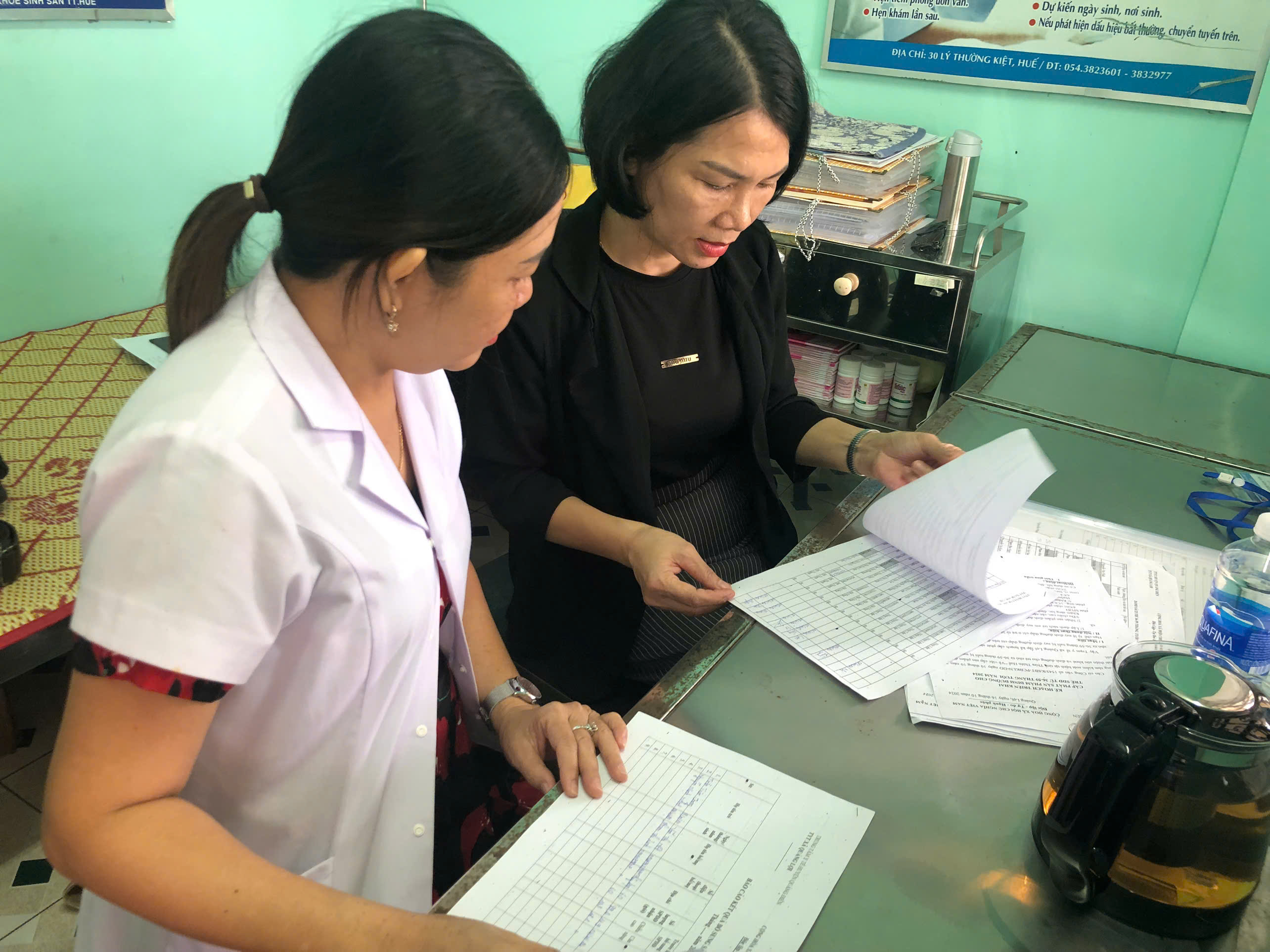 Đoàn giám sát kiểm tra danh sách cấp phát sản phẩm dinh dưỡng tại TYT xã Quảng Lợi