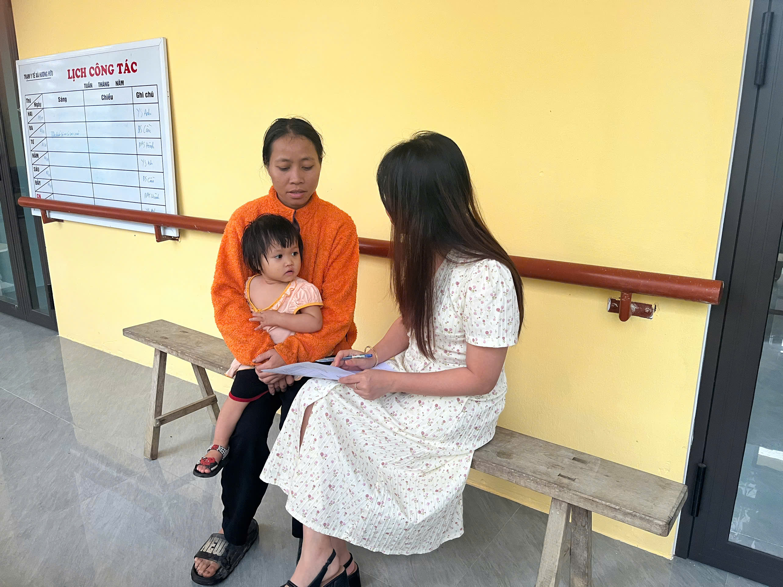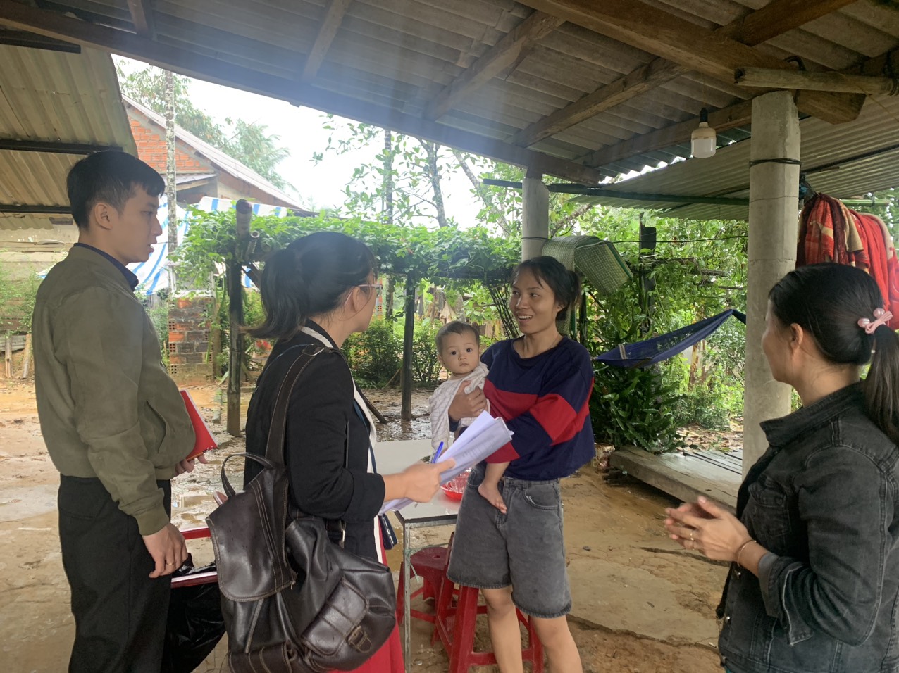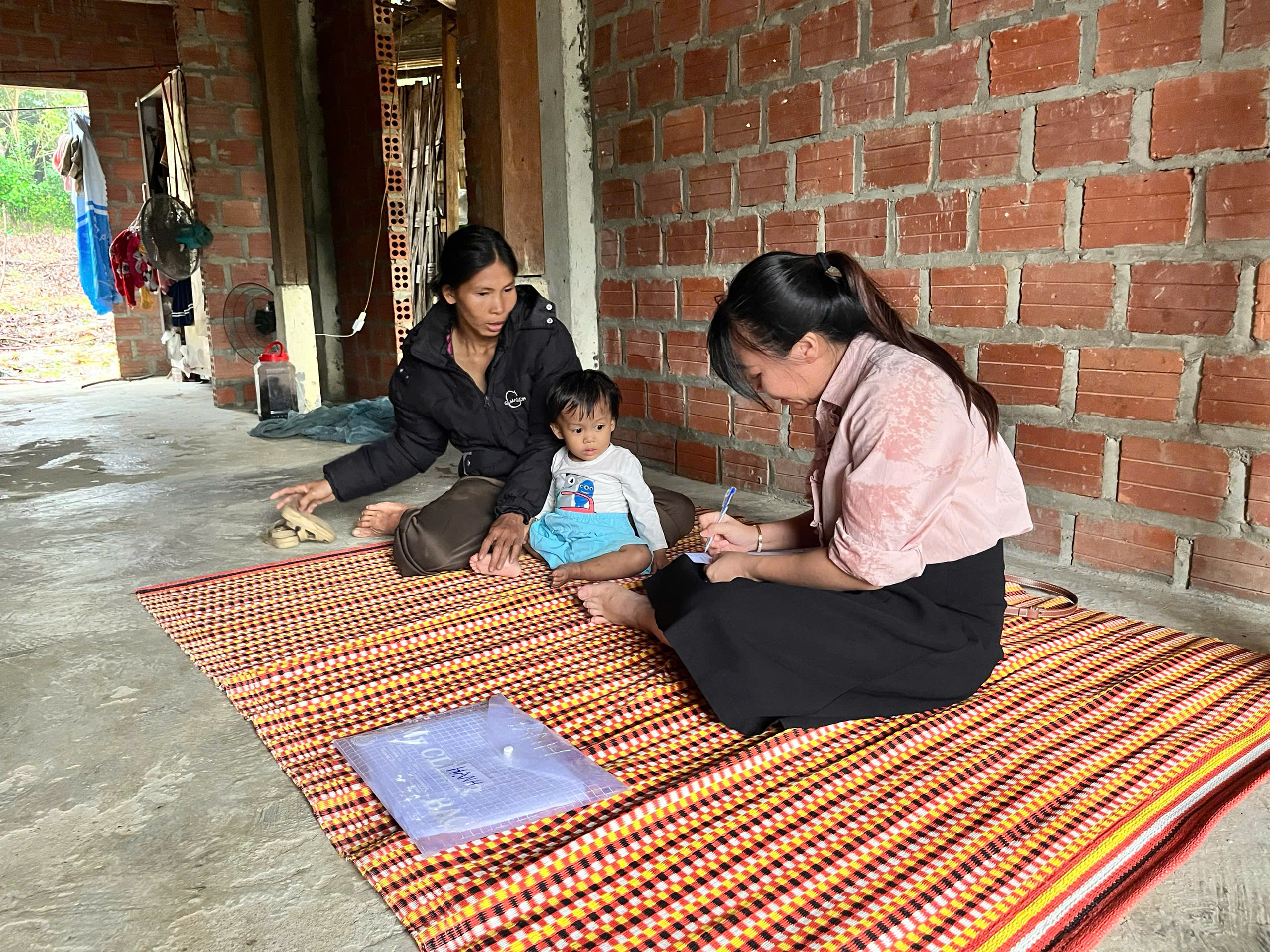 Cán bộ khoa PCBKLN-DD phỏng vấn bà mẹ về tình hình sử dụng sản phẩm dinh dưỡng được cấp