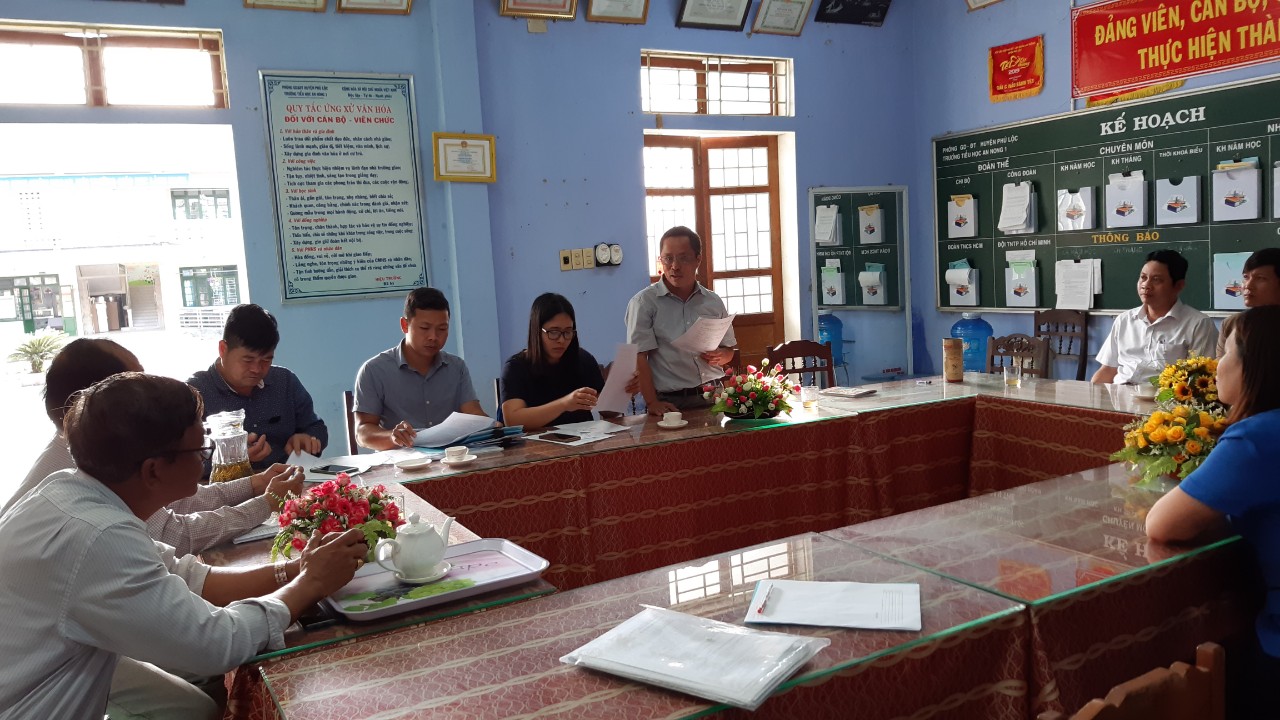 Ngày ngày 28 tháng 02 năm 2020, Khoa Sức khoẻ môi trường - Y tế trường học – Trung tâm Kiểm soát bệnh tật tỉnh phối hợp cùng với Phòng Giáo dục và Đào tạo, TTYT huyện Phú Lộc kiểm tra vệ sinh trường học, công tác phòng, chống dịch bệnh COVID-19 tại các trường Mầm non Hưng Lộc, trường TH An Nong 1 và THCS Lộc Bổn.