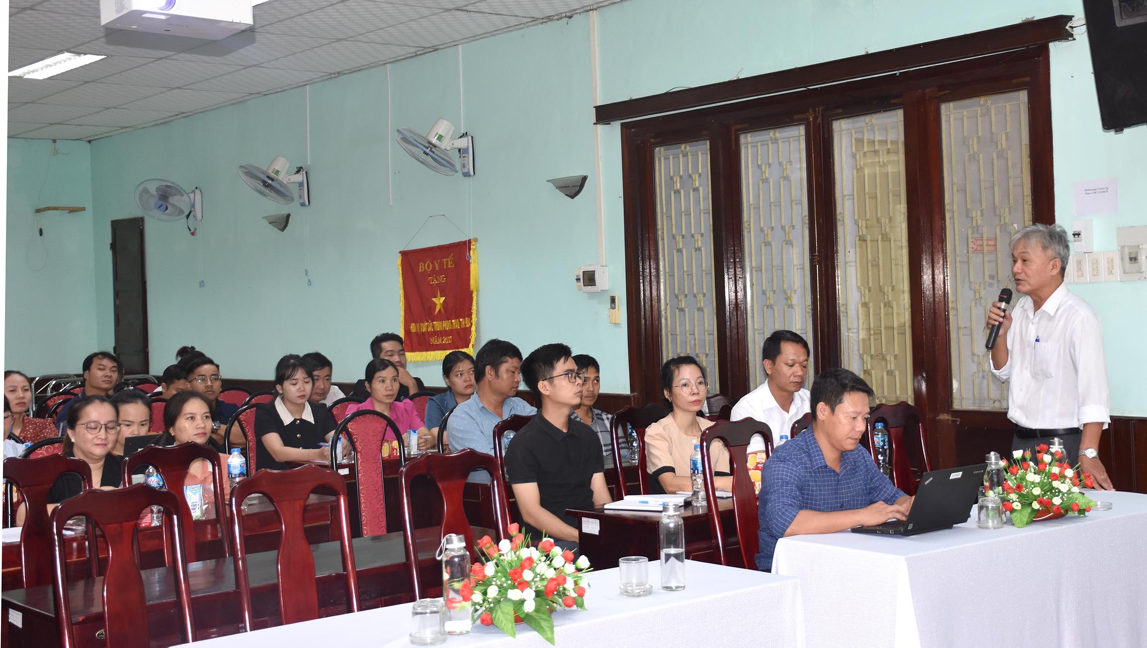 ThS BSCKII Nguyễn Lê Tâm - PGĐ Phụ trách CDC tỉnh phát biểu khai mạc với mong muốn các thành viên dự tập huấn tập trung lắng nghe, nắm vững các nội dung được truyền đạt và với những chia sẻ, đúc kết kinh nghiệm từ các địa phương bạn trong công tác Phòng chống SXHD.