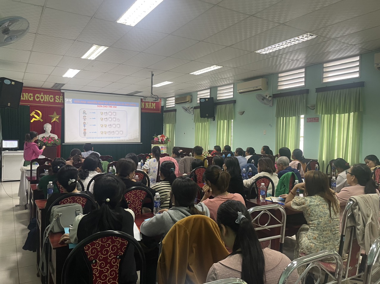 Lớp tập huấn đã được Bs CKI Lê Thị Sông Hương hướng dẫn cách thu thập các chỉ số đánh giá tình trạng dinh dưỡng cho trẻ 0-16 tuổi thuộc chương trình MTQGGNBV và thực hành đánh giá “ ăn đúng đủ”, ngoài ra cán bộ khoa PCBKLN-DD cũng đã giới thiệu về nhu cầu dinh dưỡng hợp lý cho trẻ từ 0-16 tuổi. Những kiến thức quan trọng này là cơ sở để các cán bộ chuyên trách thực hiện và ứng dụng trong thời gian đến./.