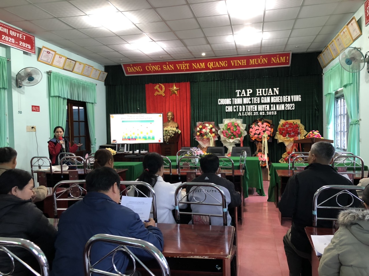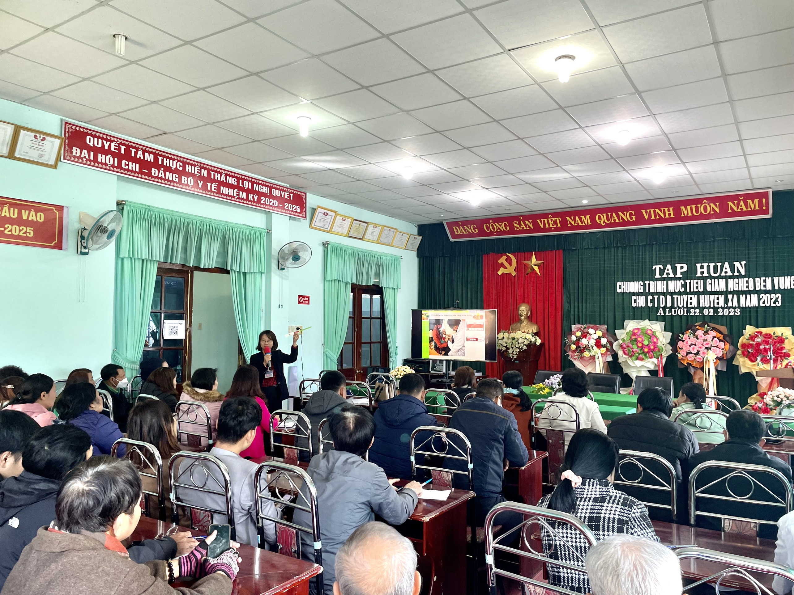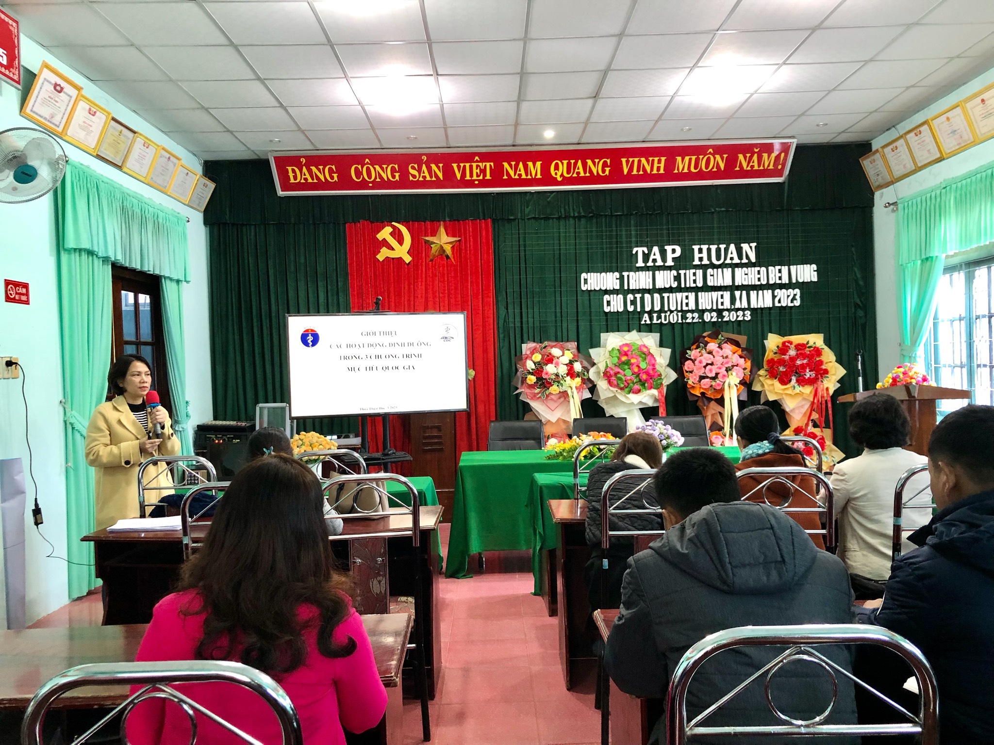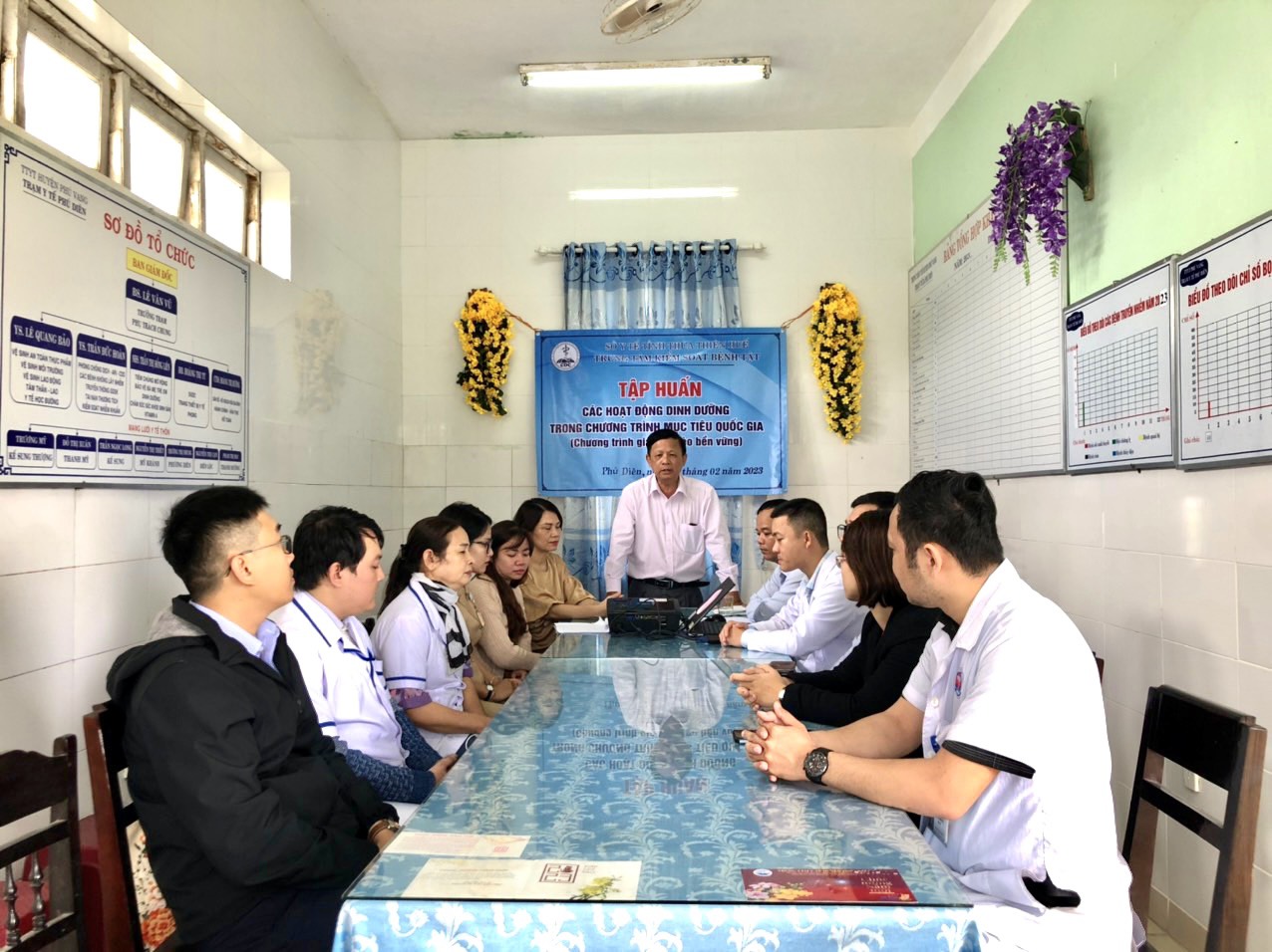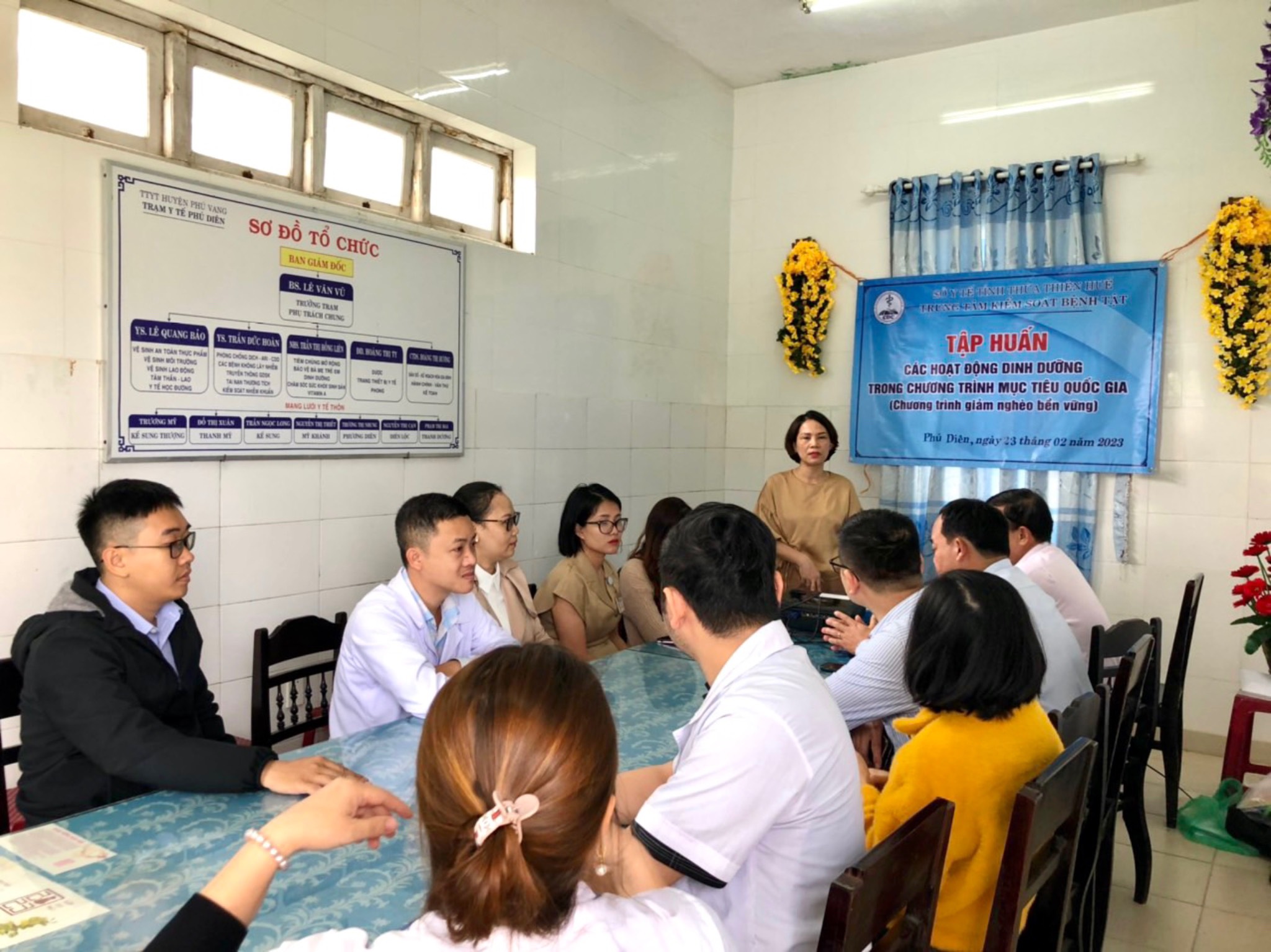 Ngày 22 và 23 tháng 02 năm 2023, TT Kiểm soát bệnh tật tỉnh Thừa Thiên Huế đã tổ chức tập huấn cho chuyên trách tuyến huyện, xã thuộc huyện A Lưới, và huyện Phú Vang. Tại buổi tập huấn, các cán bộ chuyên trách đã được giới thiệu những nội dung về các hoạt động can thiệp dinh dưỡng trong chương trình mục tiêu quốc gia Giảm nghèo bền vững đồng thời cập nhật những nội dung chuyên môn liên quan đến kỹ năng truyền thông phòng chống suy dinh dưỡng và phòng chống thiếu vi chất. Các cán bộ chuyên trách được đánh giá chất lượng nội dung tập huấn thông qua bộ câu hỏi lượng giá đầu vào, đầu ra đồng thời tham gia trao đổi thảo luận cũng như thực hành đóng vai những gì tiếp thu được trong suốt buổi tập huấn. Kết thúc hai lớp tập huấn với 100% số lượng học viên có kết quả đạt.