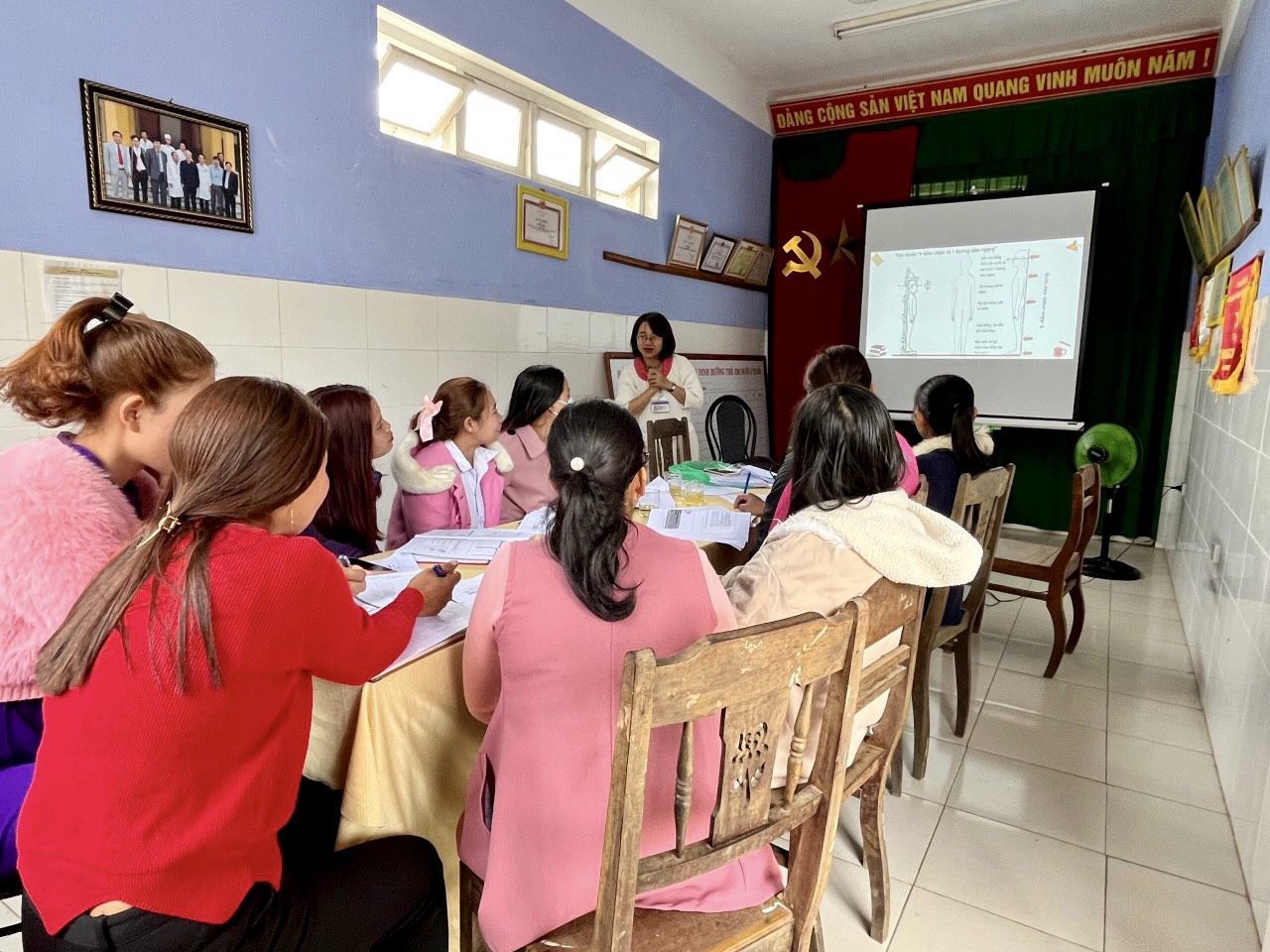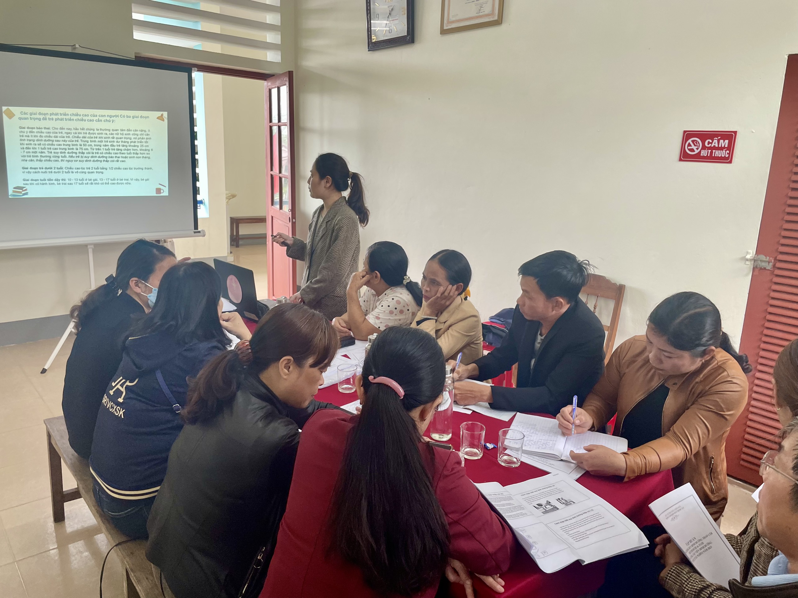 Từ ngày 22/02 đến ngày 02/3/2023 các lớp tập huấn đã được diễn ra, trong không khí sôi nổi, và tích cực, phương pháp trao đổi thảo luận hai chiều giữa giảng viên lớp học và các học viên mang lại nhiều hiệu quả rõ rệt. Các học viên được các giảng viên tuyến tỉnh thuộc khoa PCBKLN-DD phổ biến một số nội dung liên quan trong chương trình mục tiêu quốc gia giảm nghèo bền vững đồng thời cập nhật một số kiến thức về phòng chống suy dinh dưỡng thấp còi cho trẻ dưới 16 tuổi và cách nhận biết các sản phẩm được bổ sung vi chất tại cộng đồng. Các học viên cũng được tham gia đánh giá kiến thức đầu vào và đầu ra trước và sau khi tập huấn kết thúc.